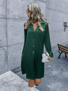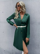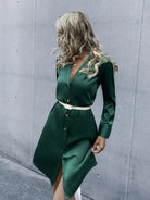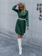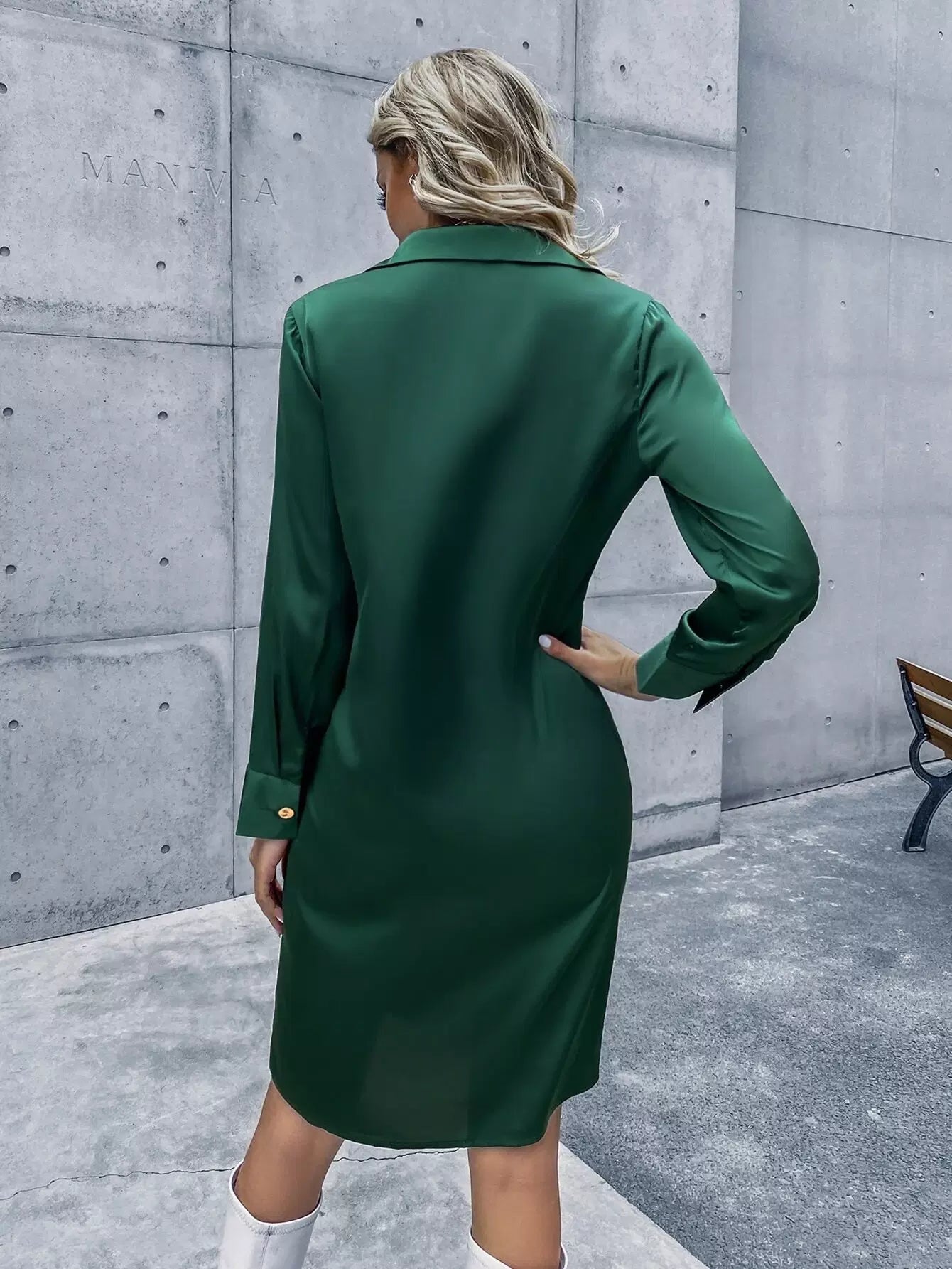 Solid Lapel Collar Satin Shirt Dress Without Belt