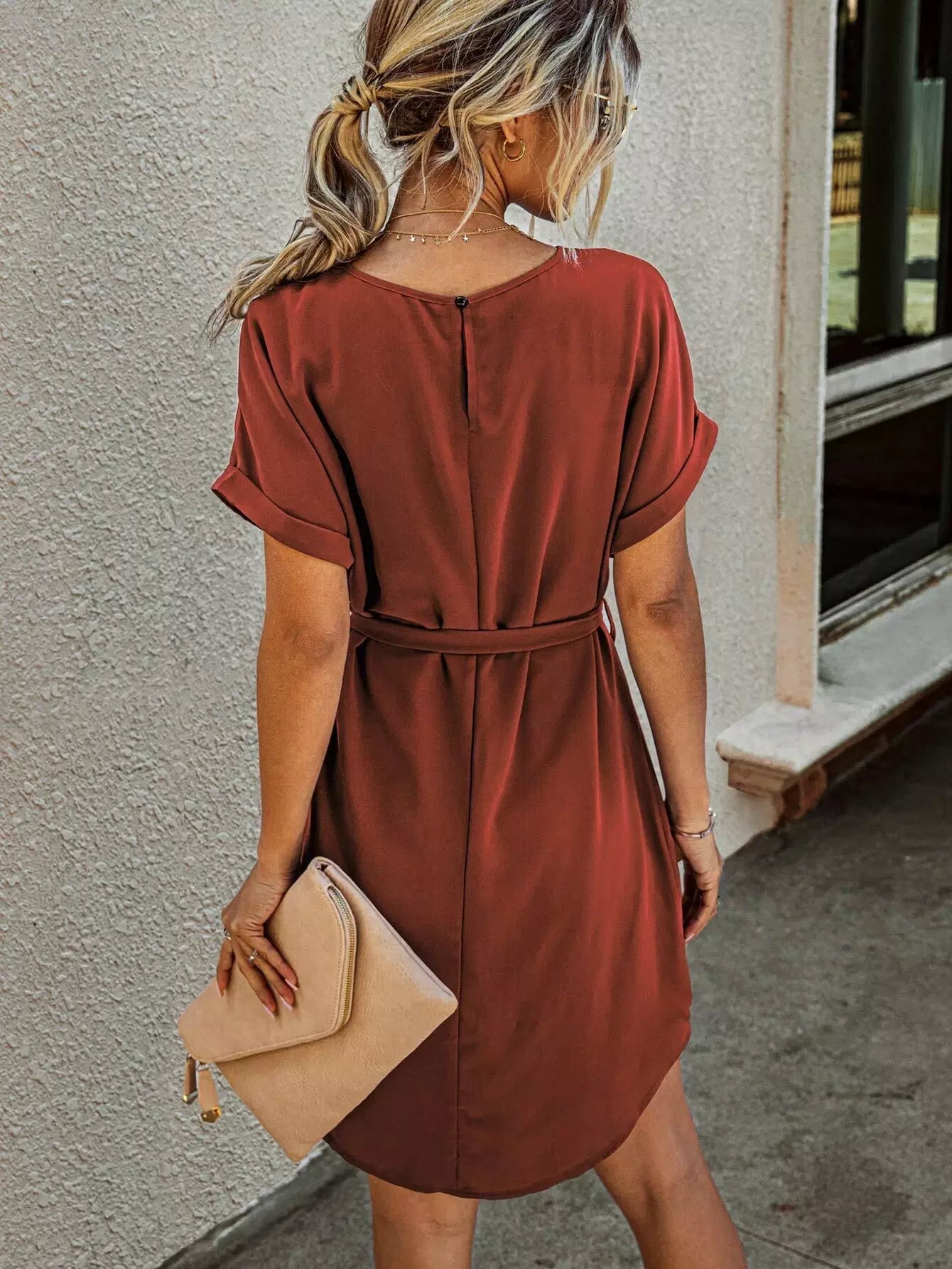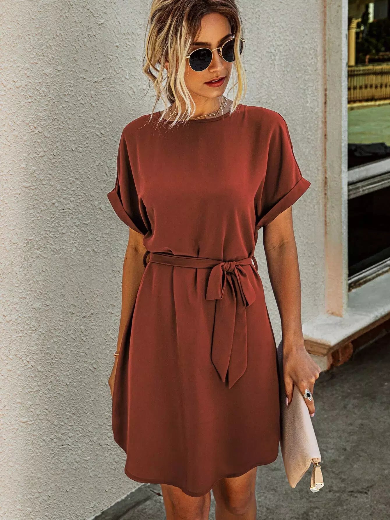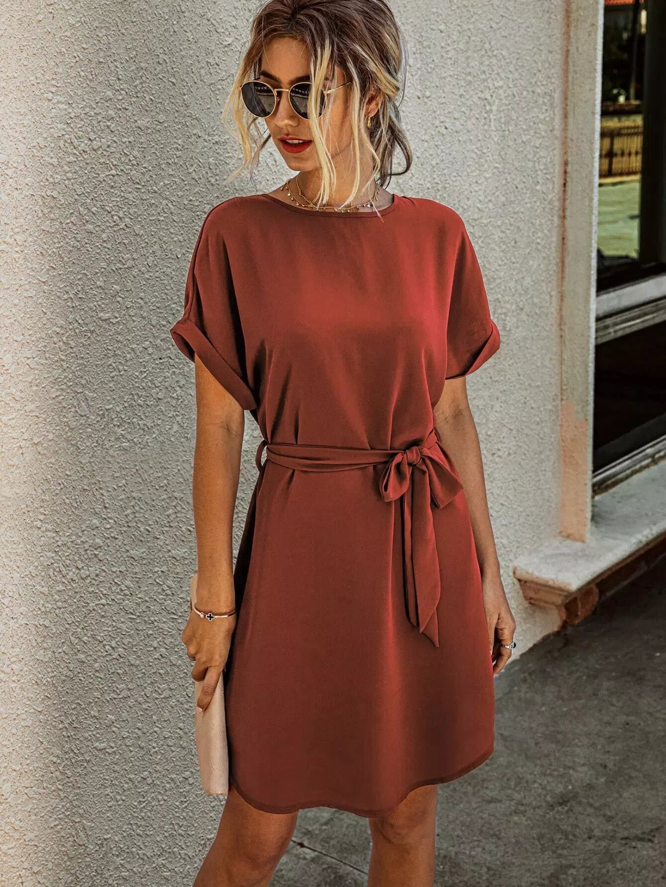 Solid Self Tie Tunic Dress