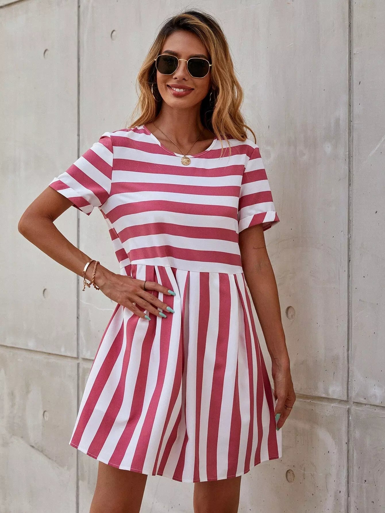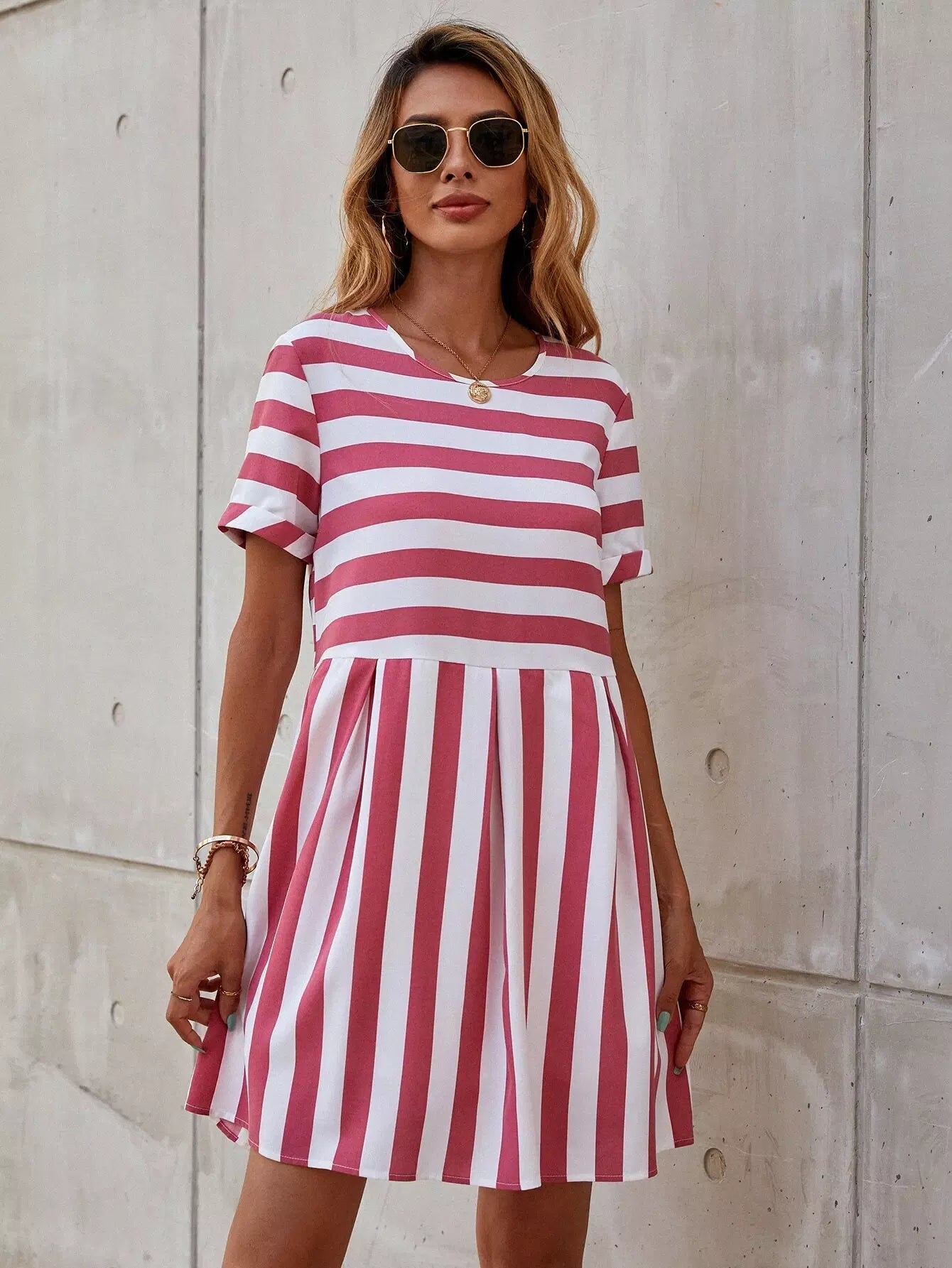 Striped Print Smock Dress