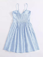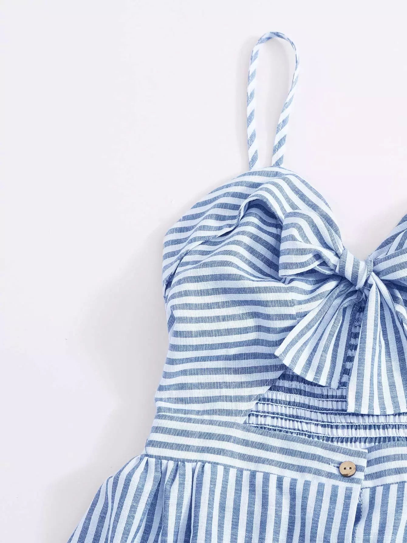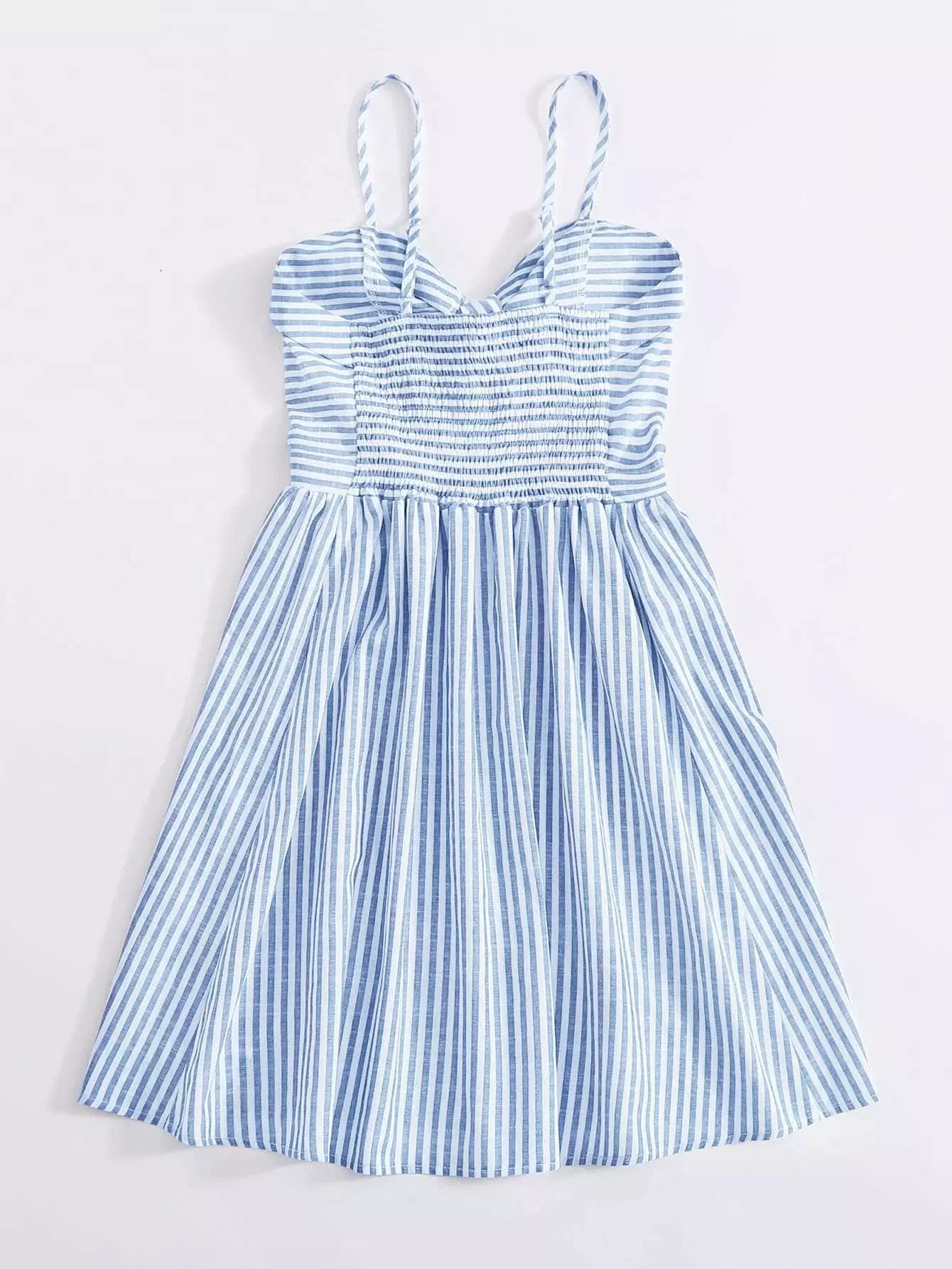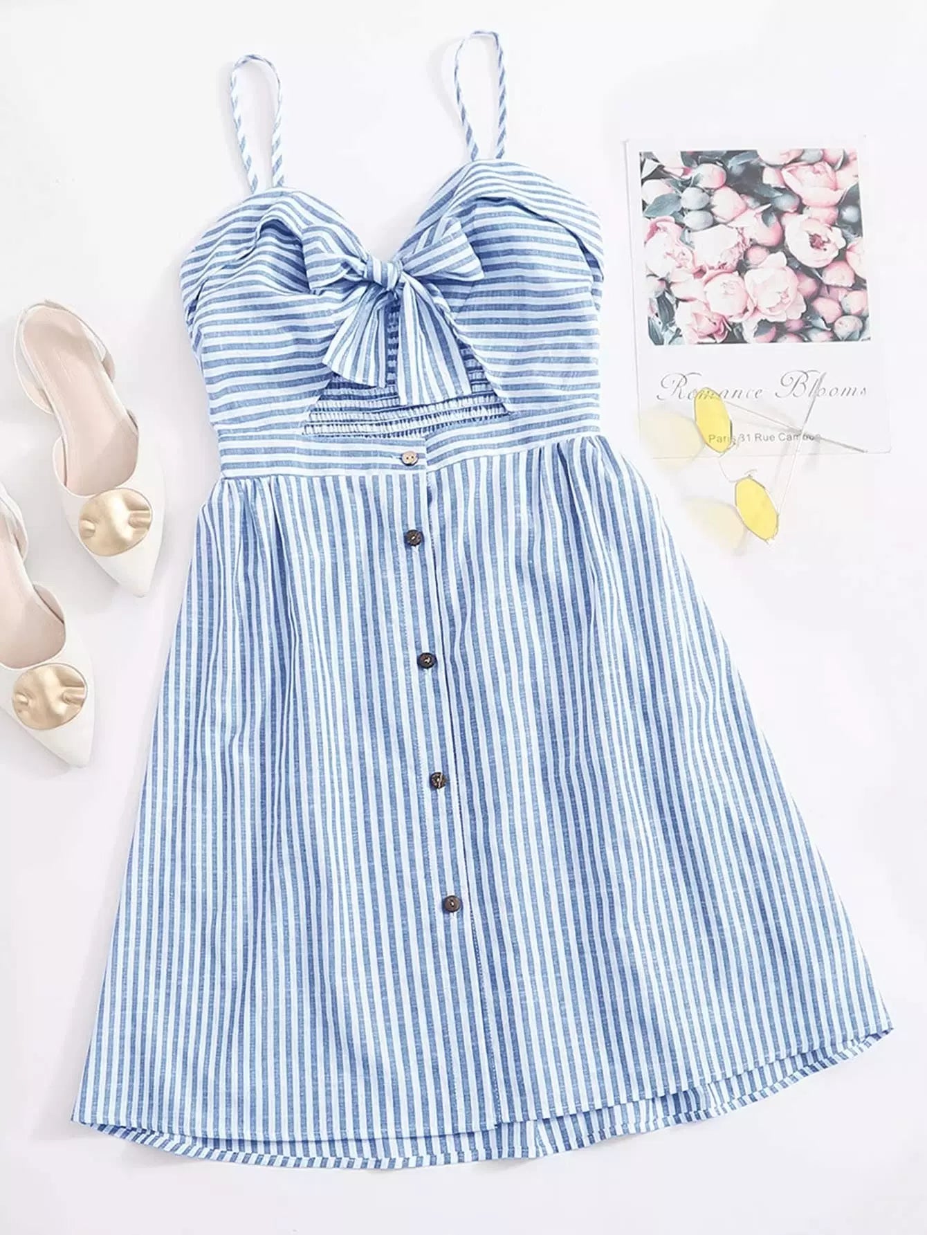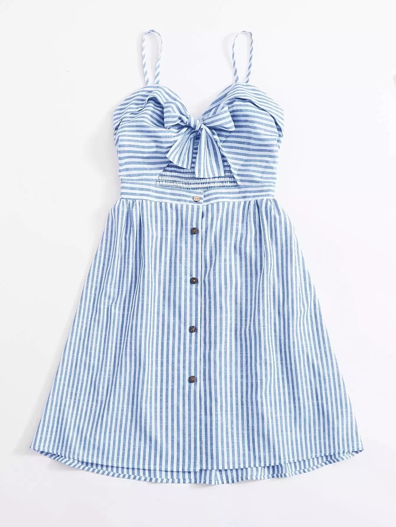 Striped Shirred Back Knotted Peekaboo Cami Dress