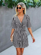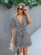 Striped Tie Front A-line Dress