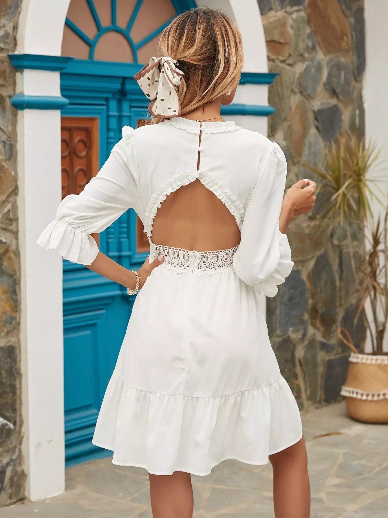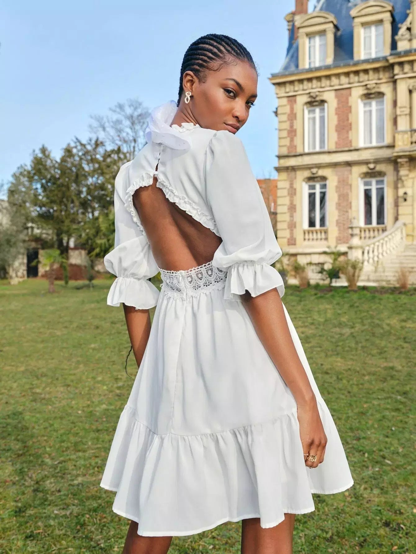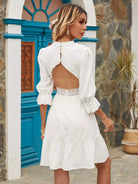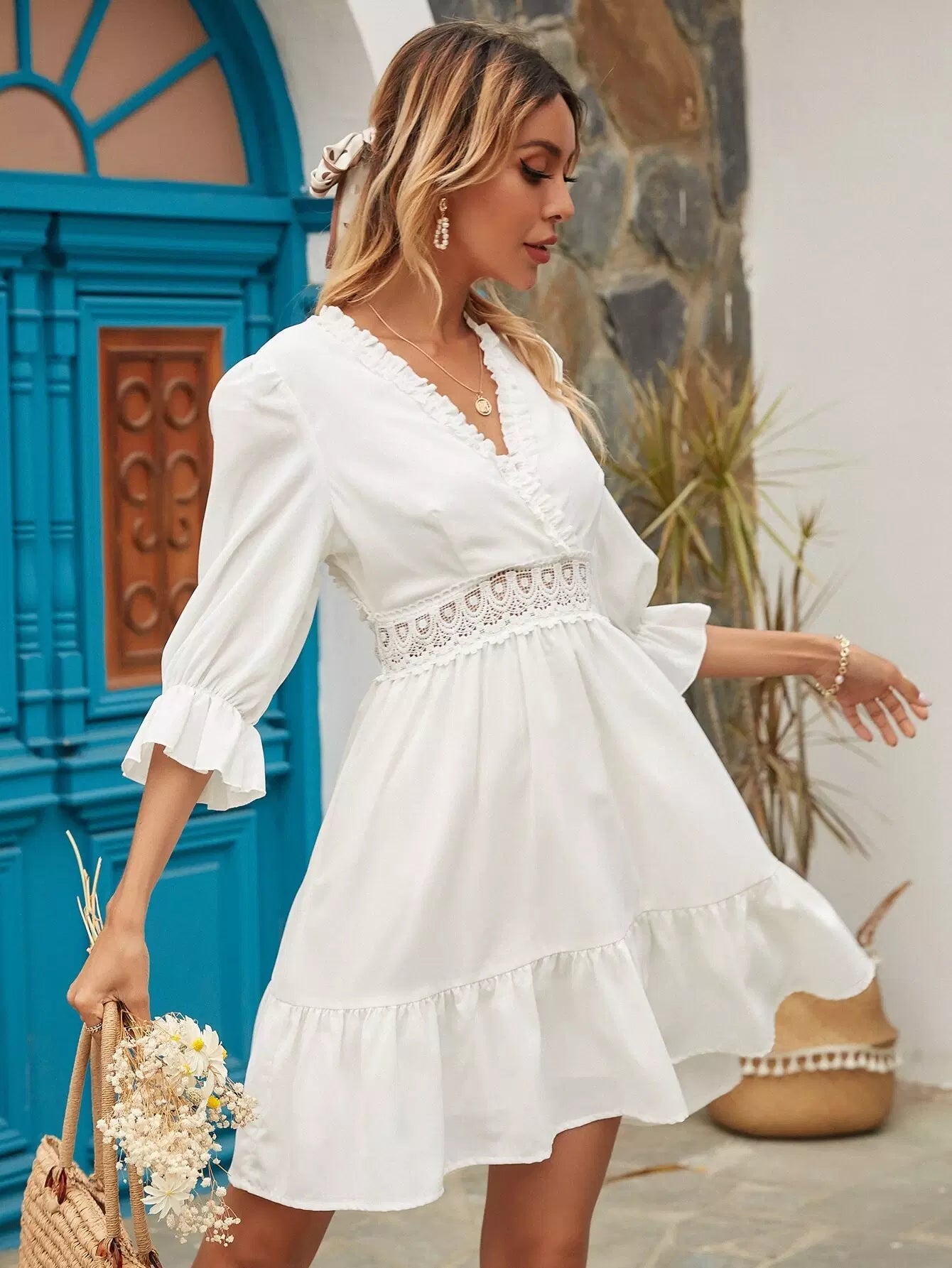 Surplice Front Contrast Lace Ruffle Hem Dress