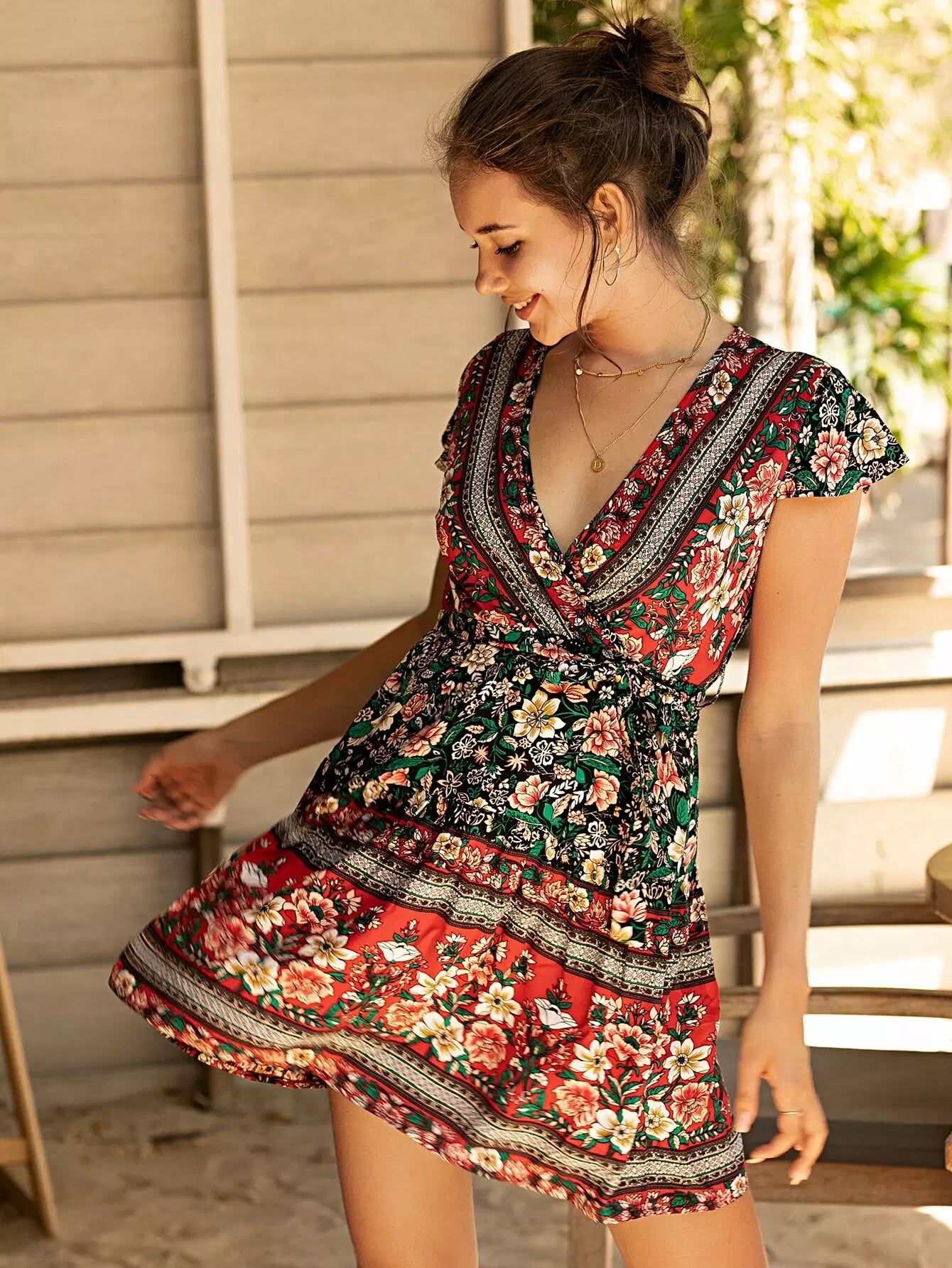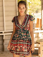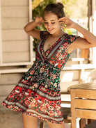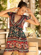 Surplice Neck Floral Print A-line Dress
