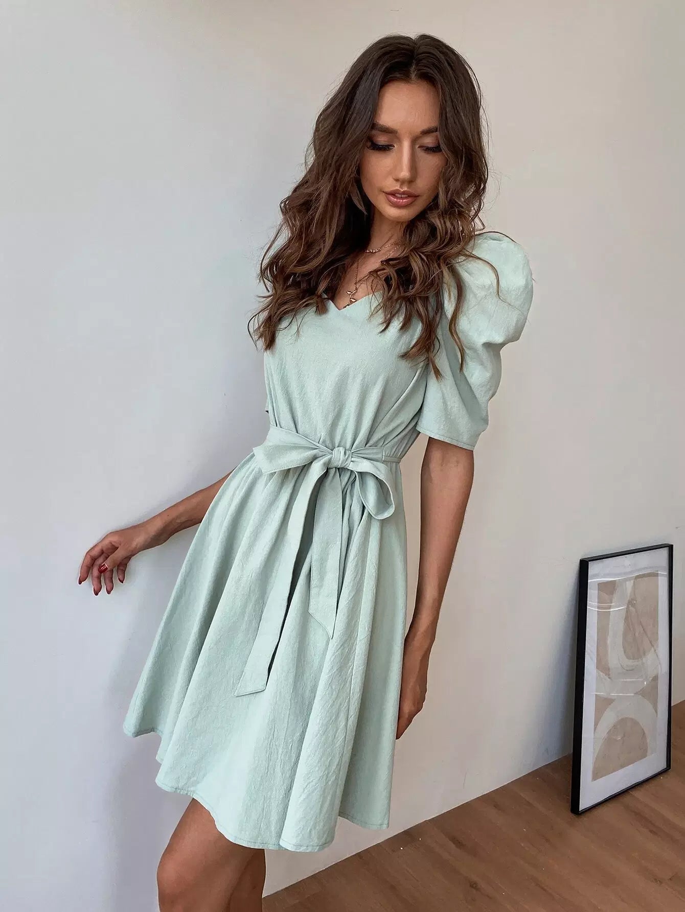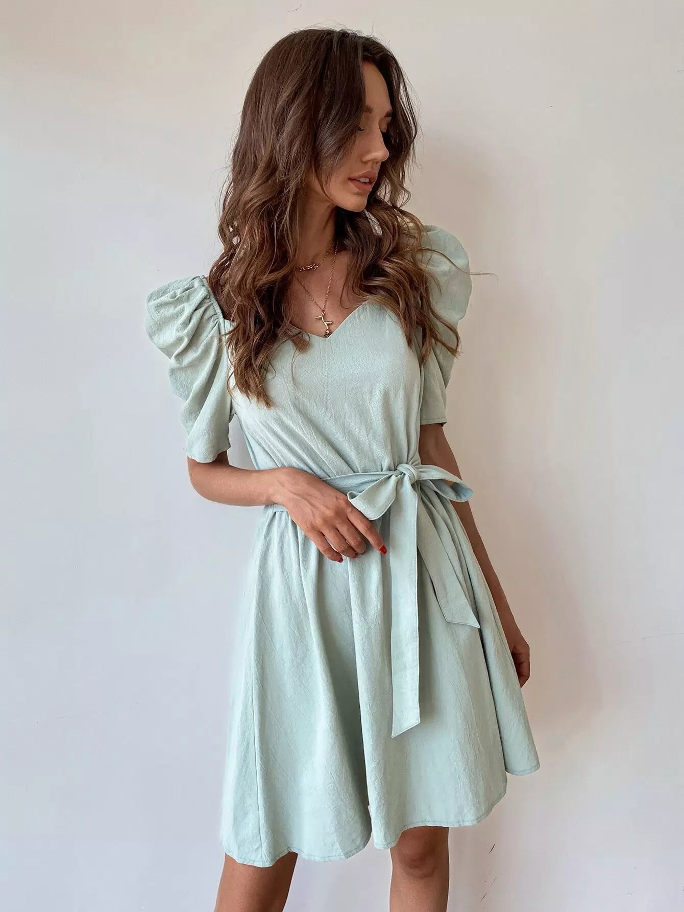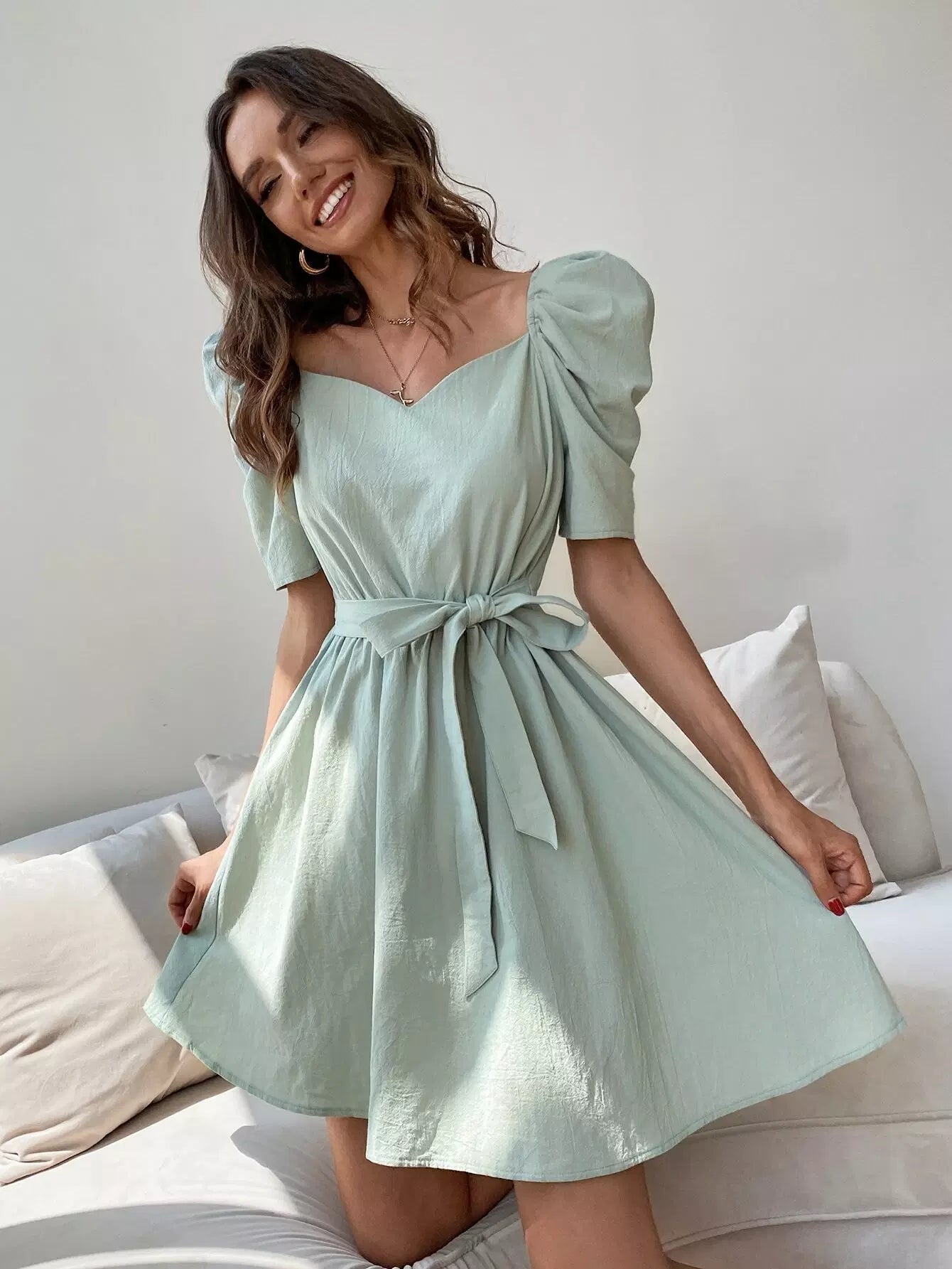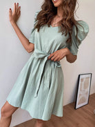 Sweetheart Neck Puff Sleeve Dress Without Belt