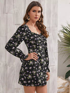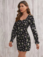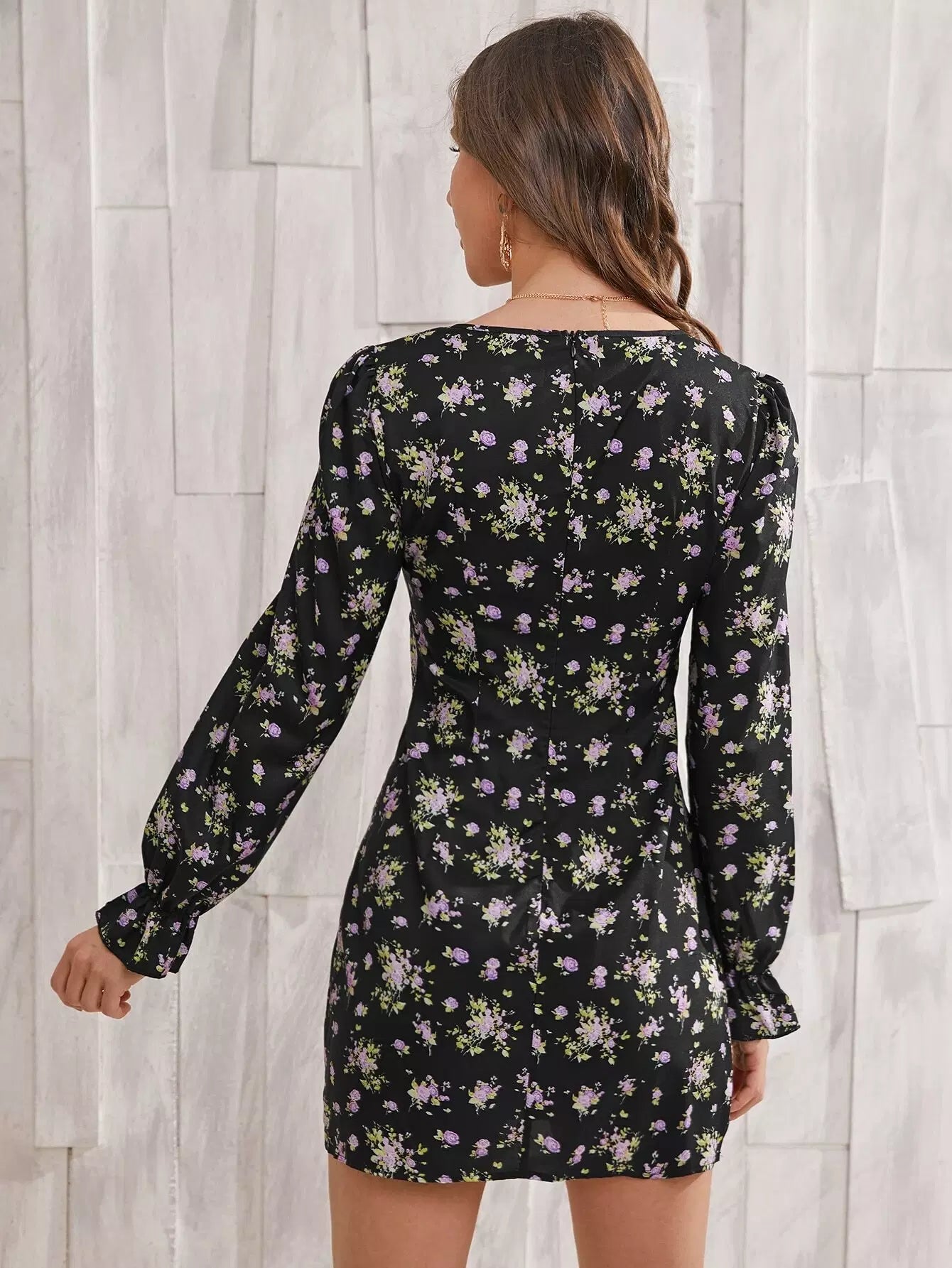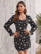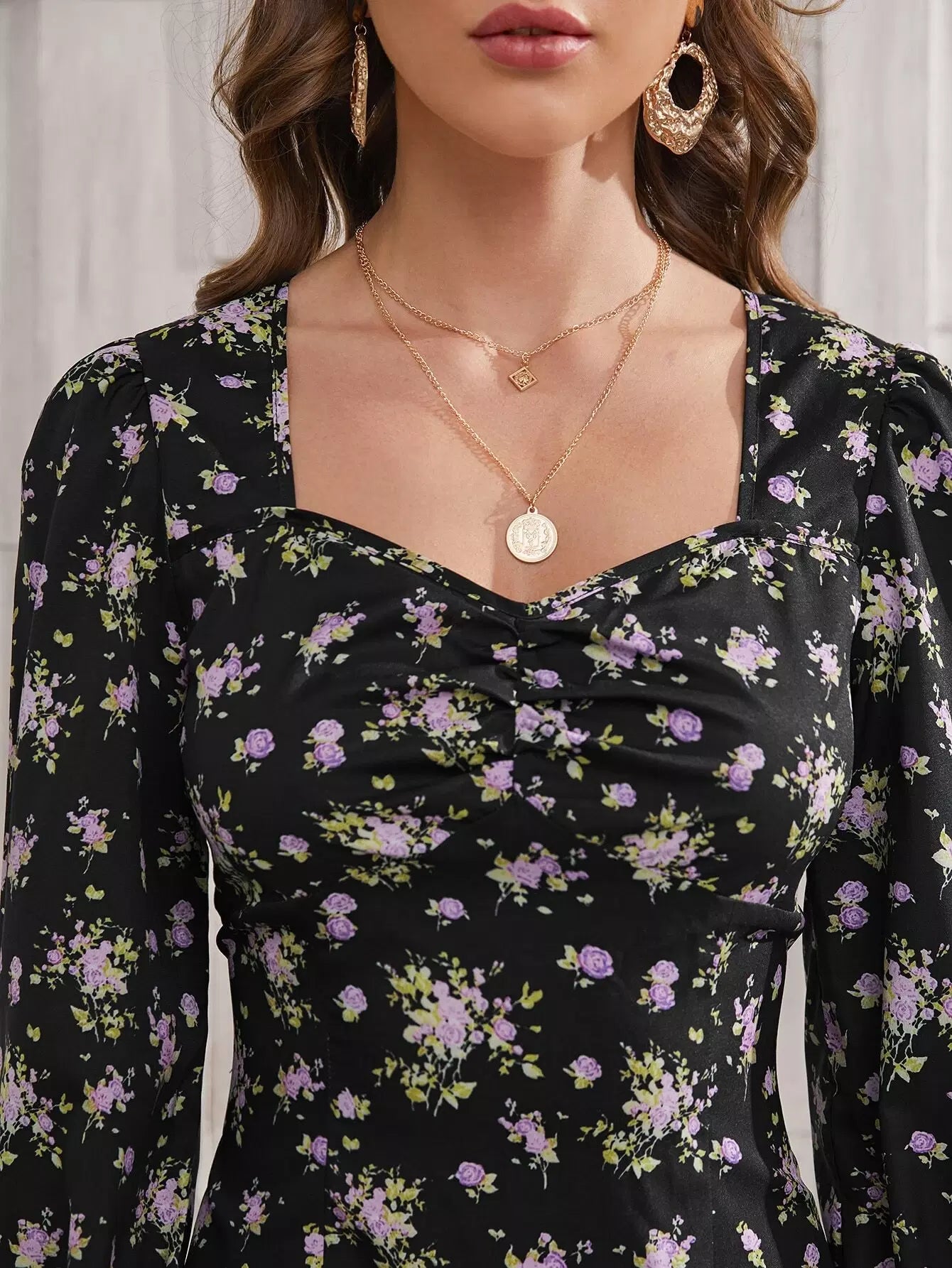 Sweetheart Neck Ruched Ditsy Floral Print Dress