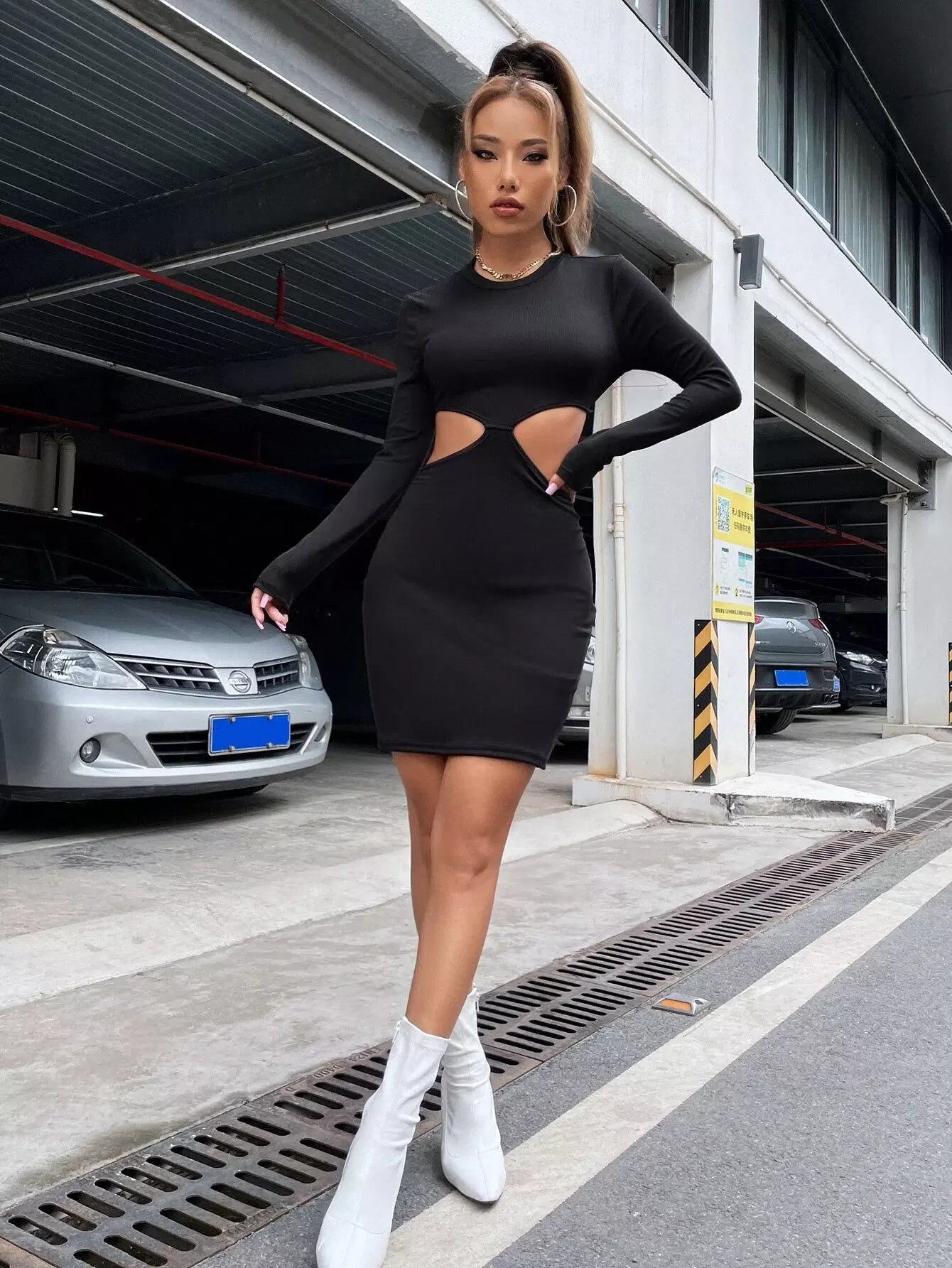 Tie Back Cut Out Ribbed Knit Bodycon Dress