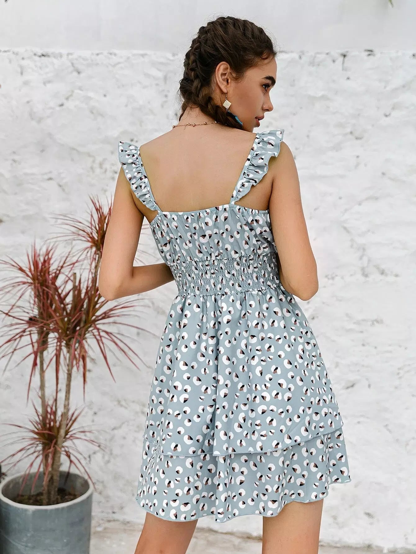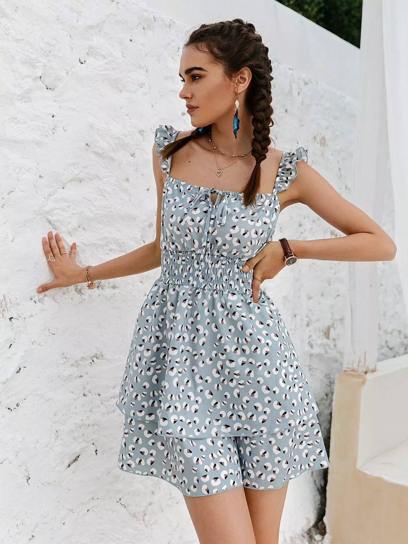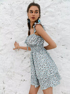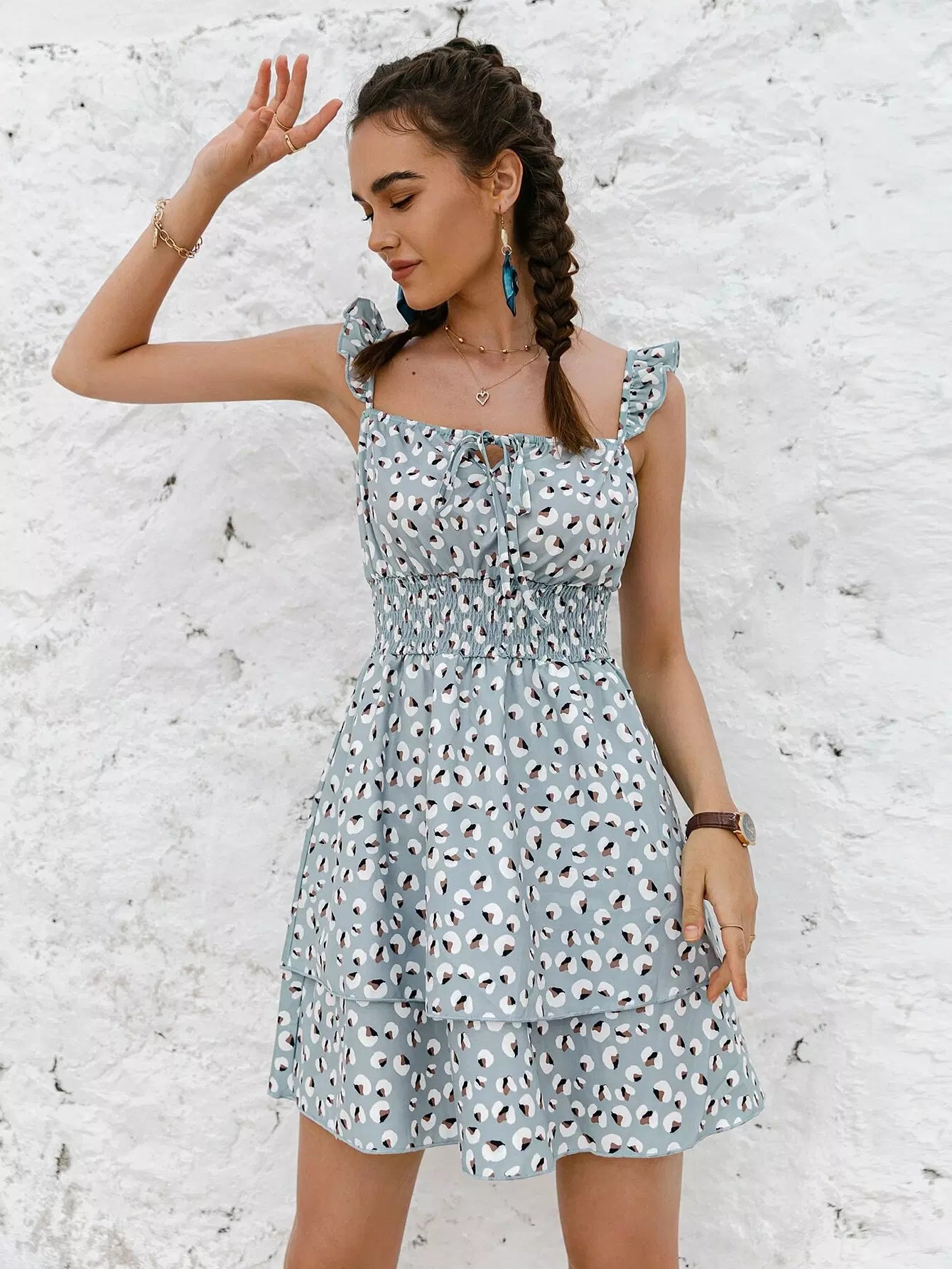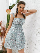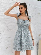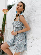 Tie Front Shirred Waist Ditsy Floral Layered Dress