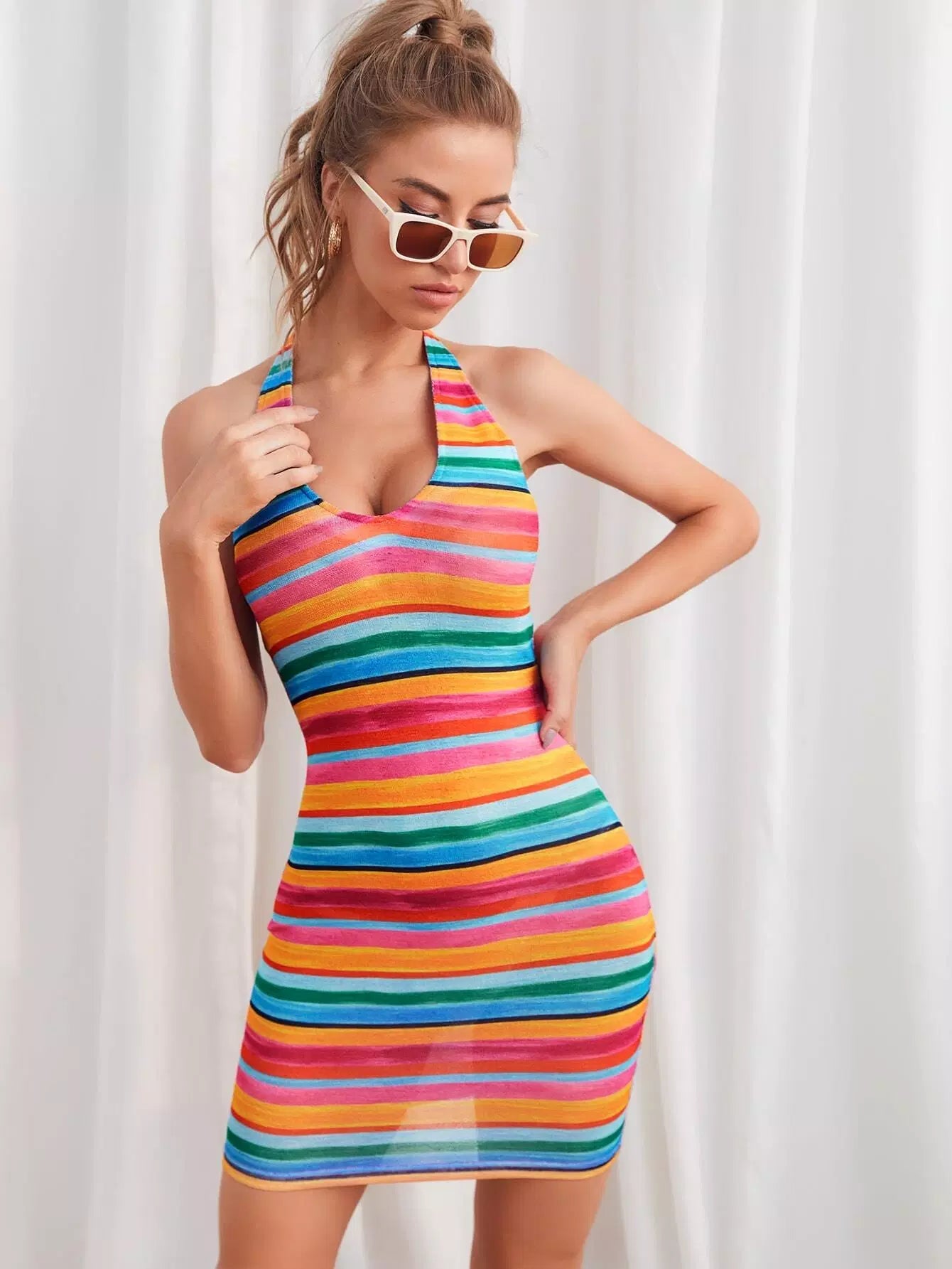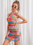 Tied Backless Rainbow Striped Dress