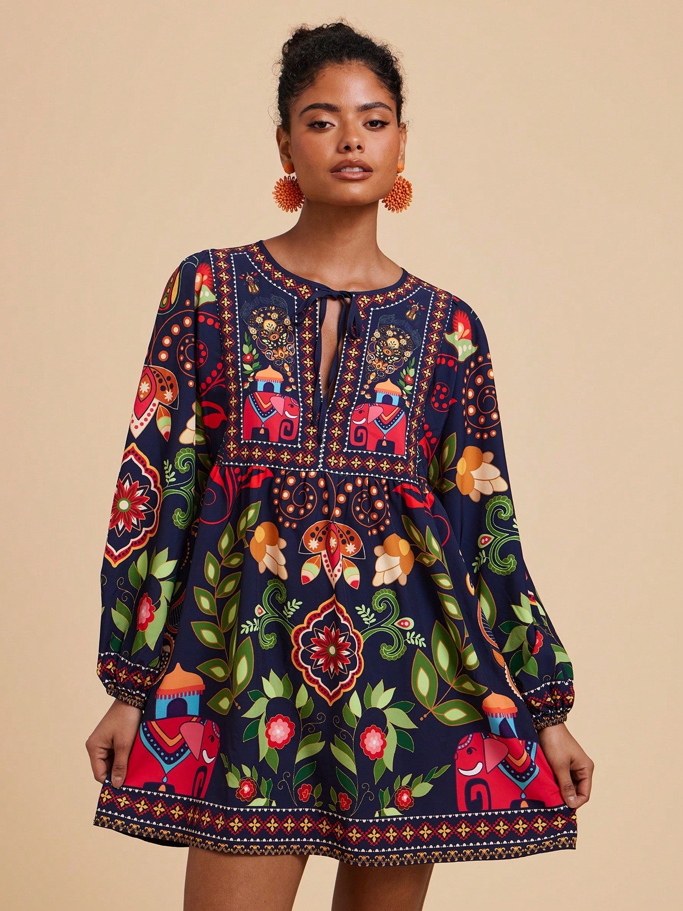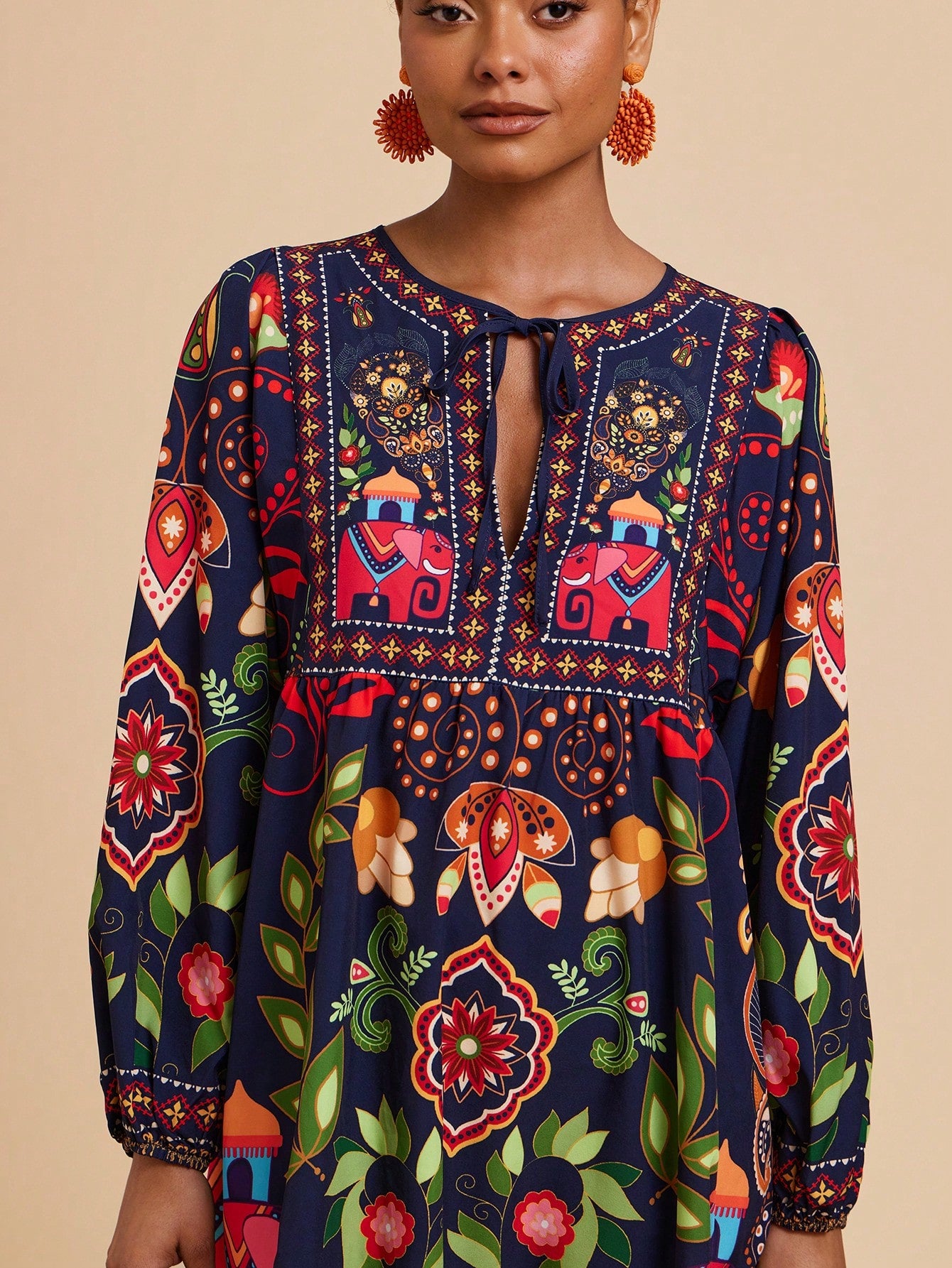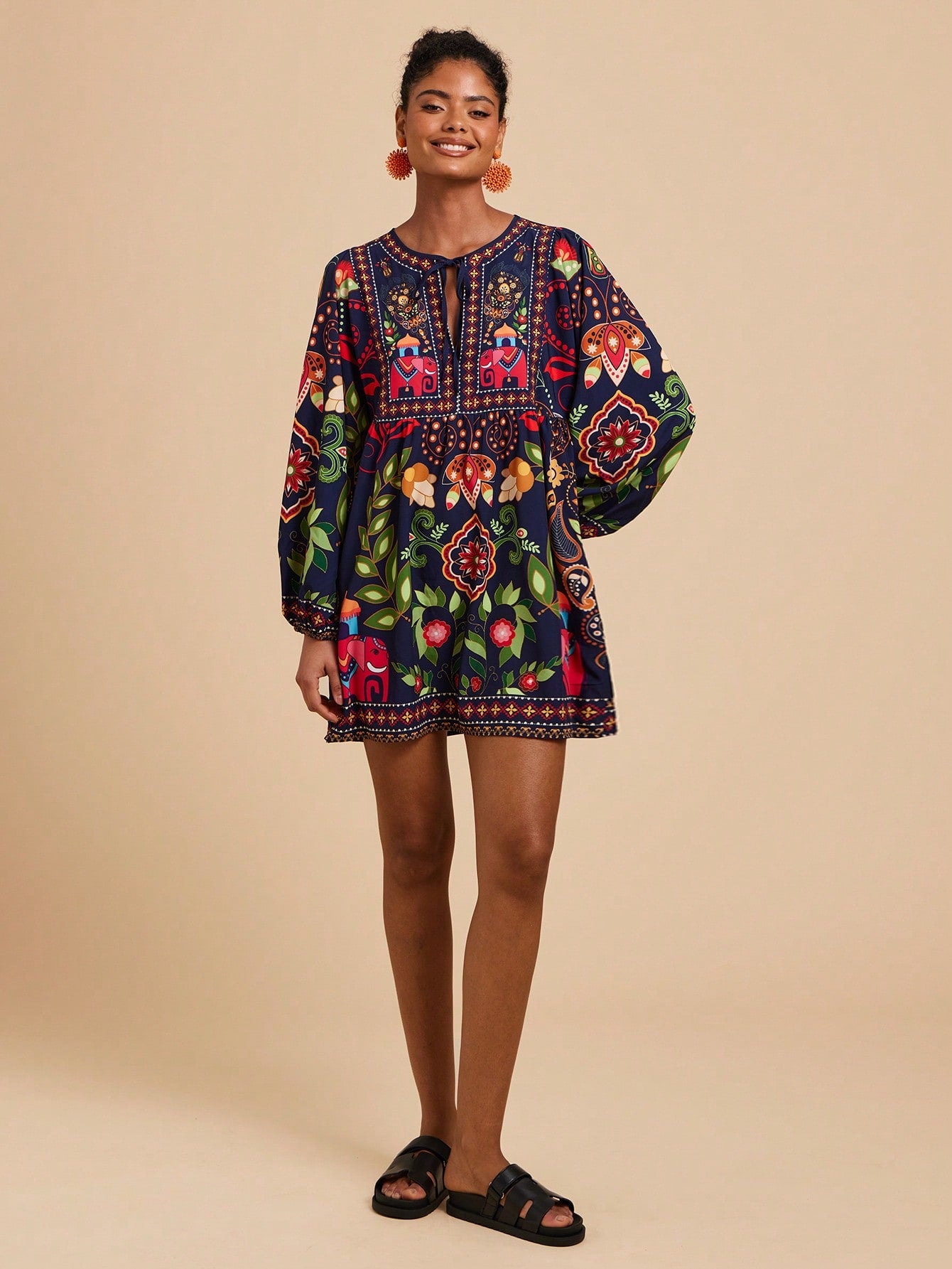 Travachic Woven Printed Loose Three-Quarter Sleeve Dress For Women,Summer Outfits For Women,Beachwear,Spring