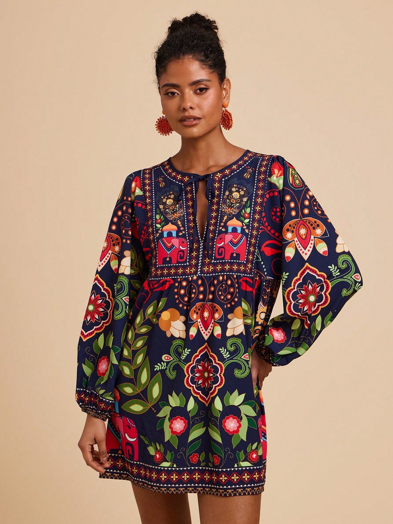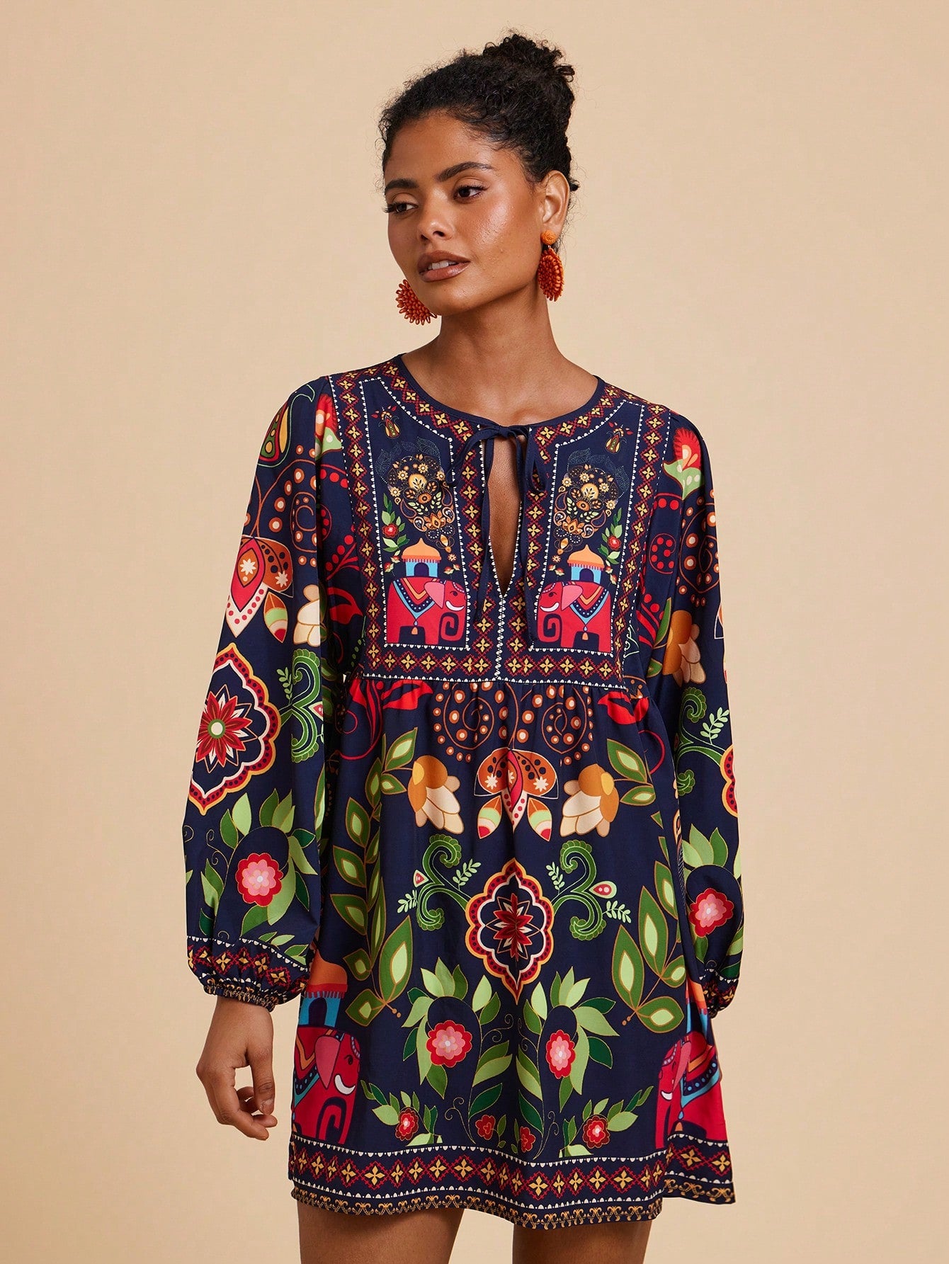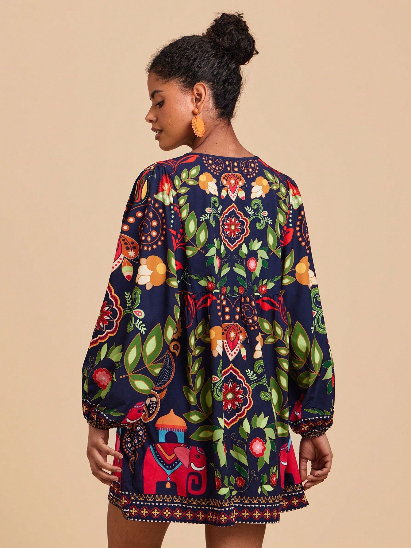 Travachic Woven Printed Loose Three-Quarter Sleeve Dress For Women,Summer Outfits For Women,Beachwear,Spring