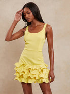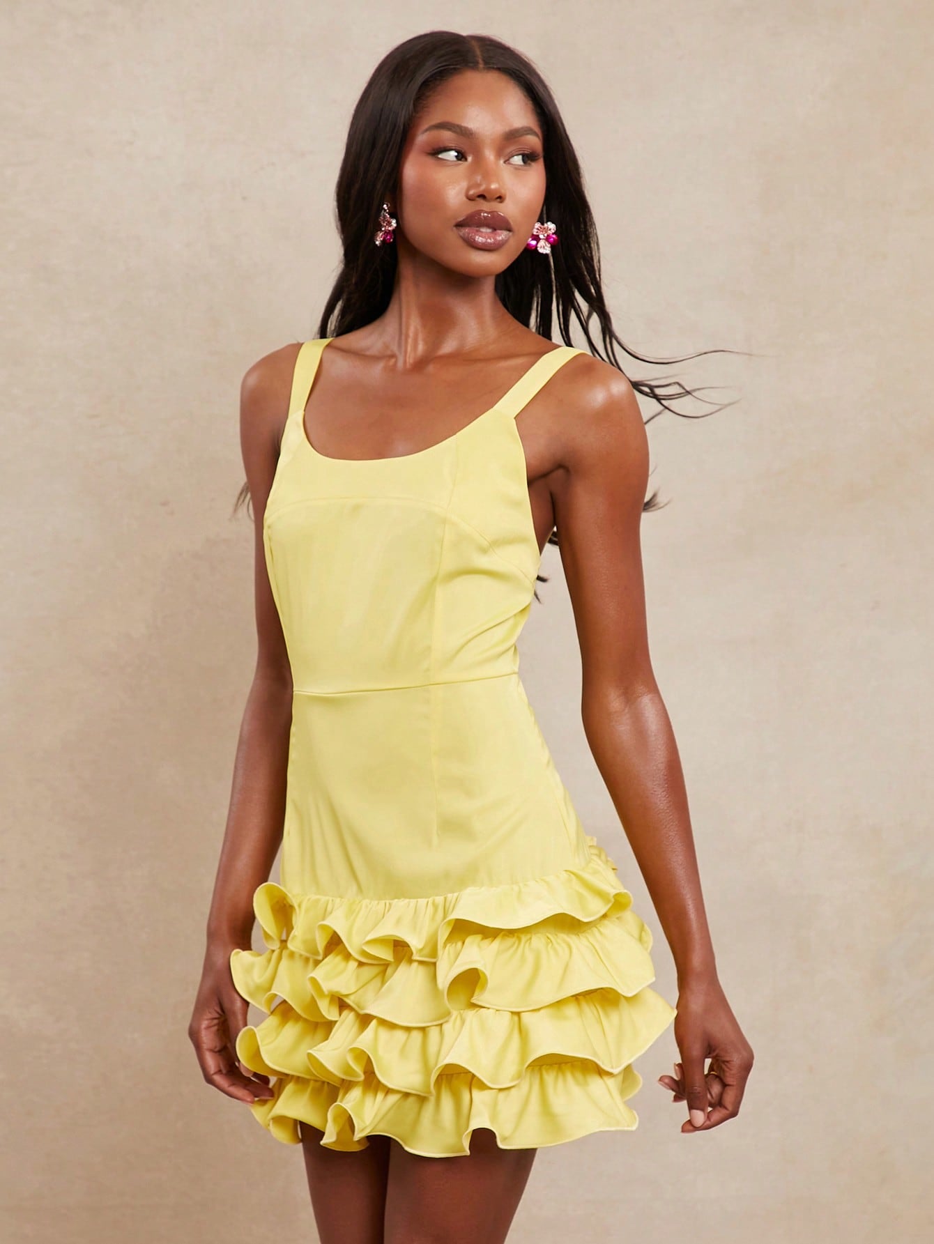 Unity Dress Tank Top Sleeveless Vest Mini Ruffle Hem Tiered Sundress Satin Bridal Bridesmaid Special
