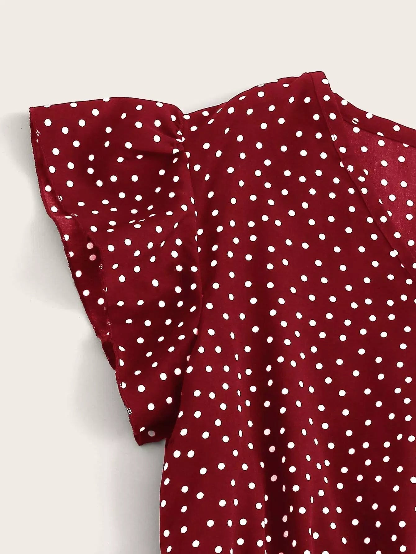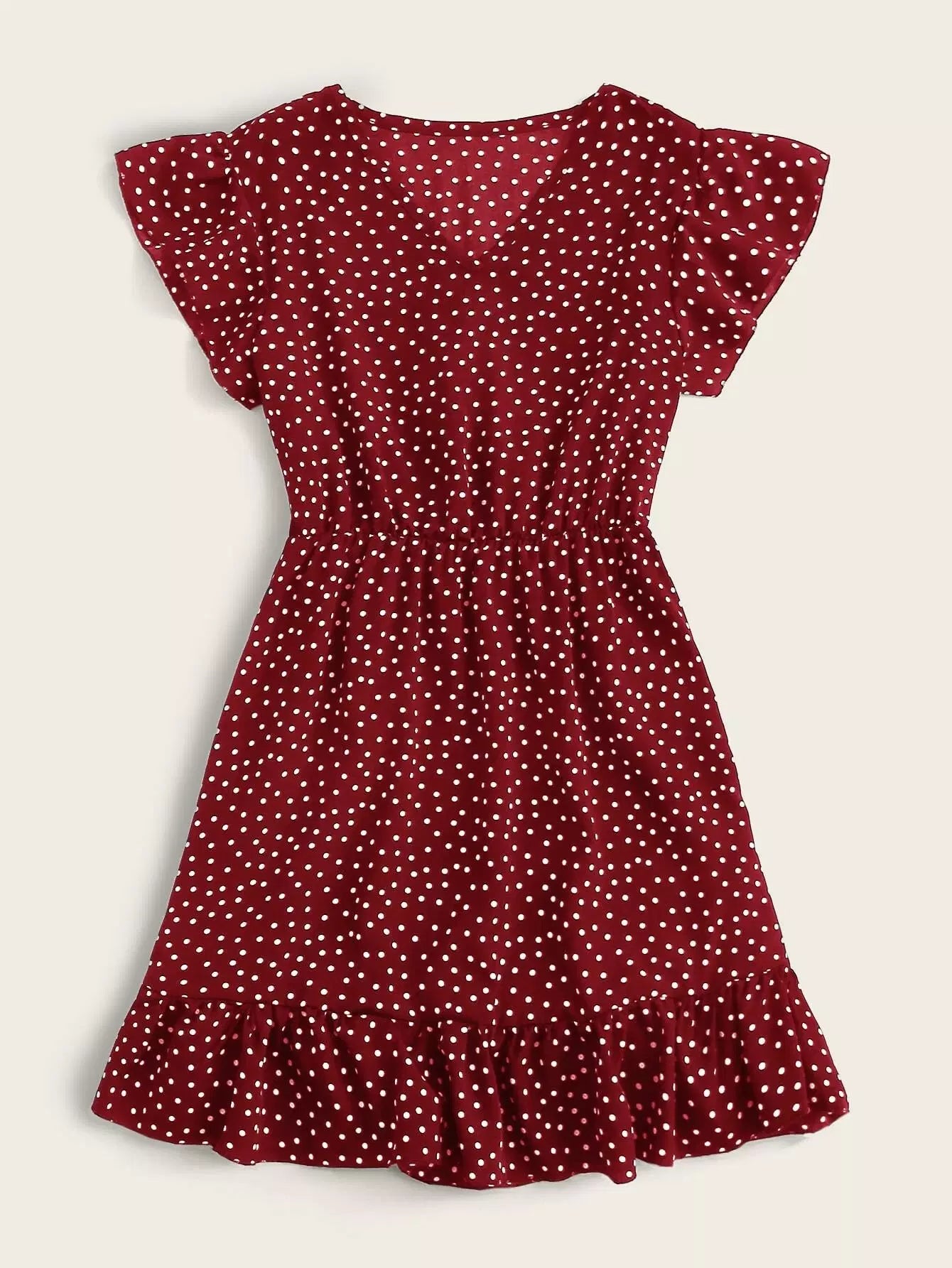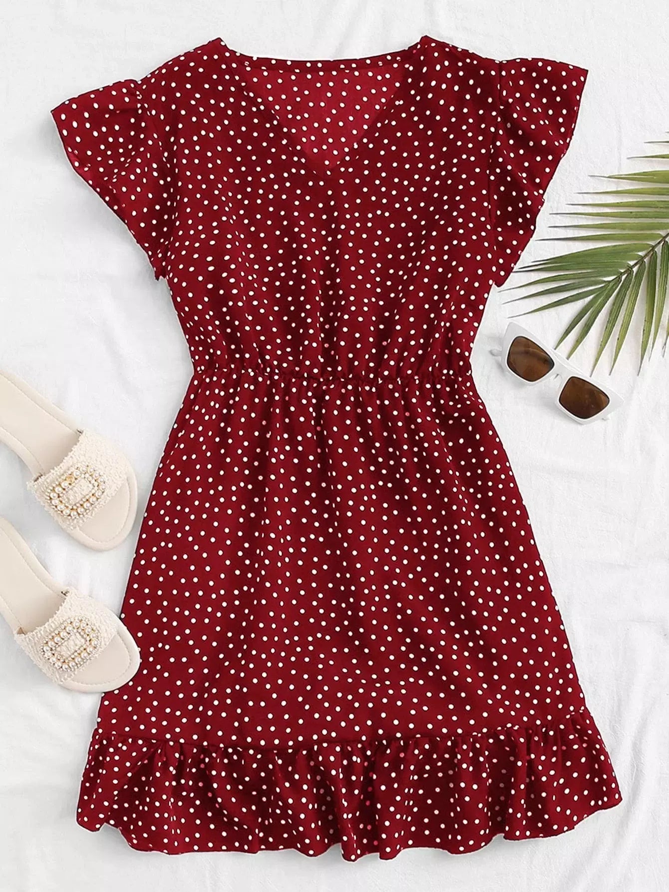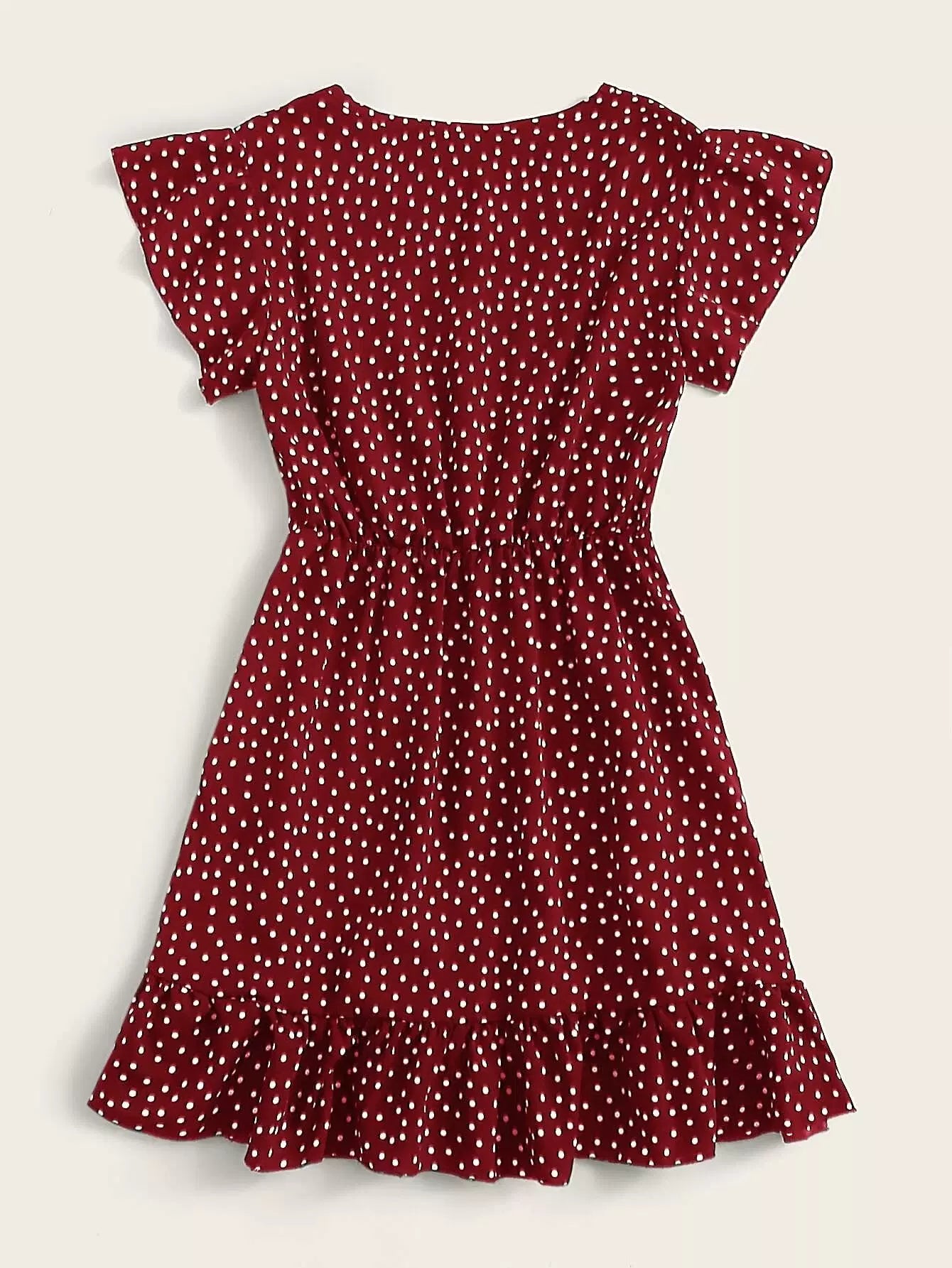 V-neck Ruffle Hem Polka Dot A-line Dress