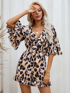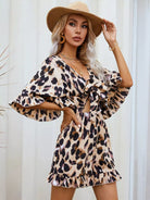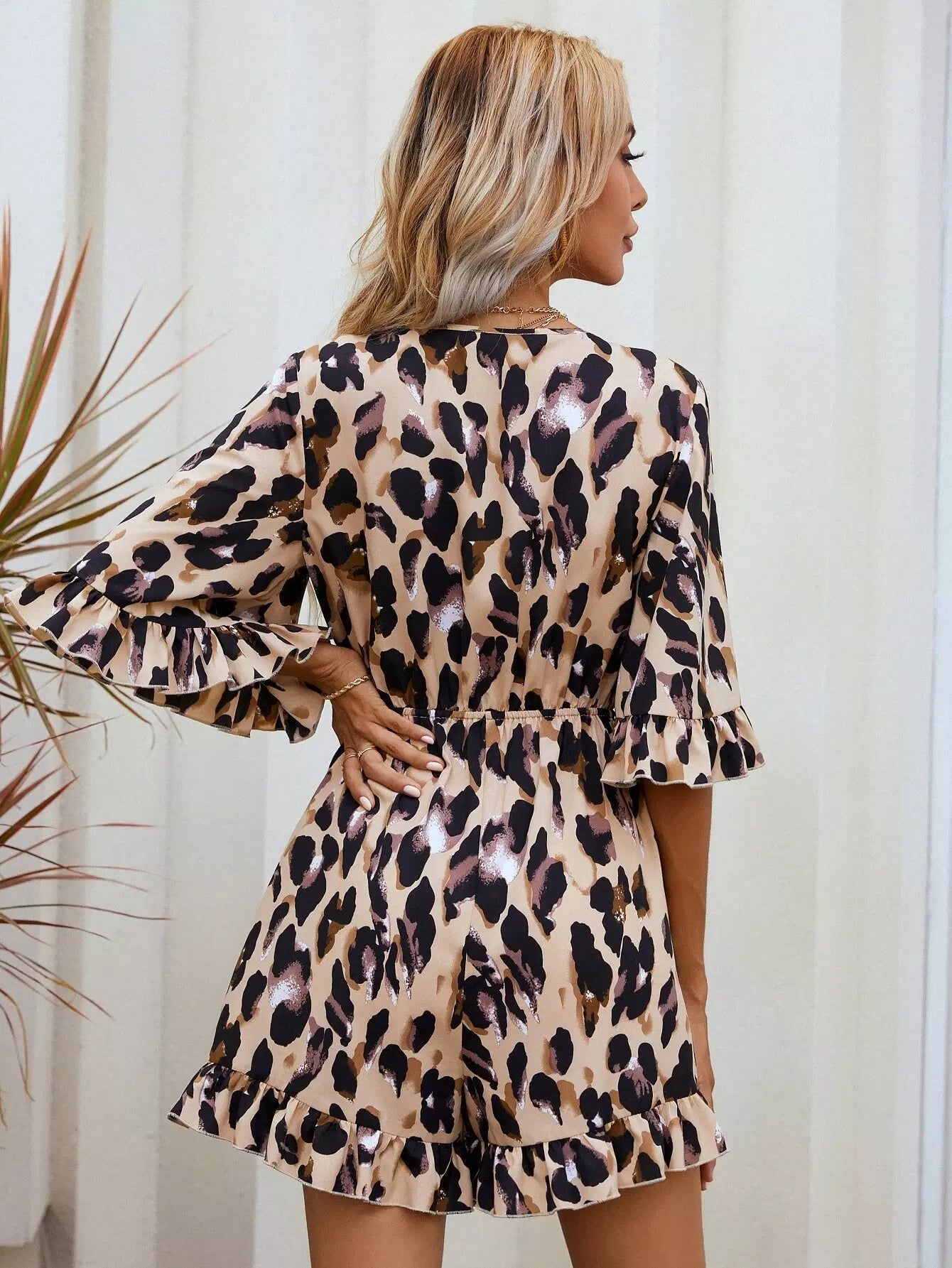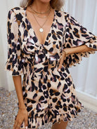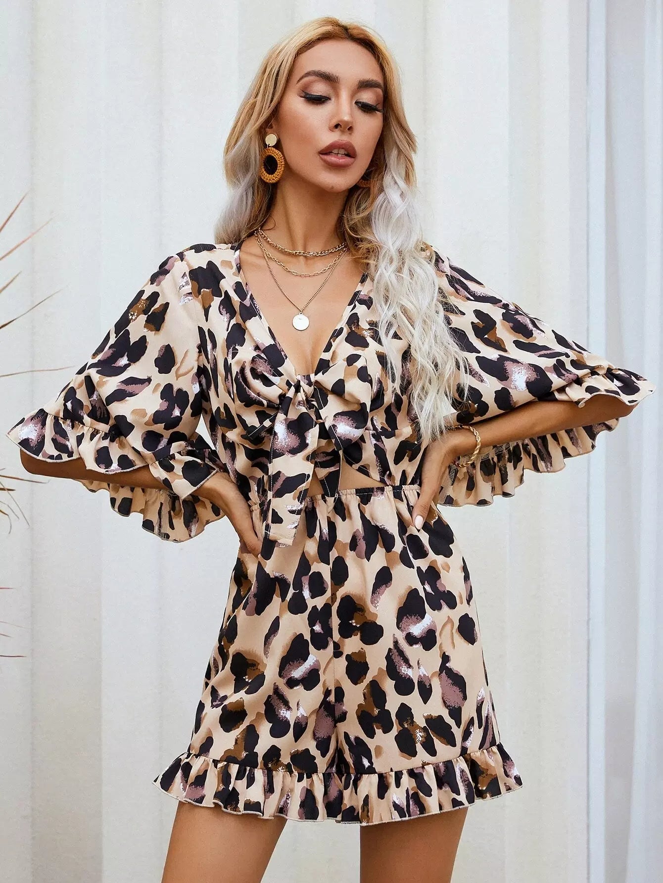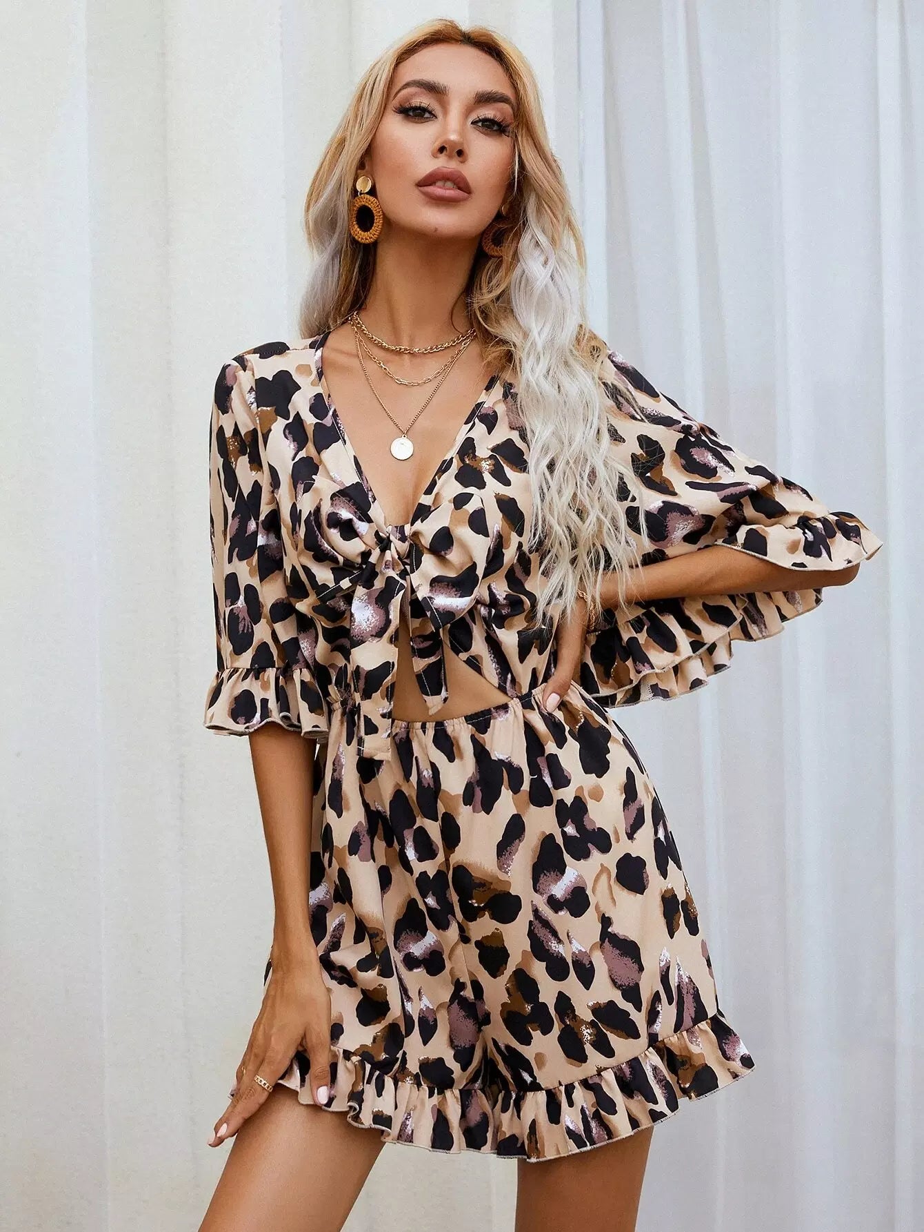 All Over Print Tie Front Peekaboo Ruffle Hem Romper