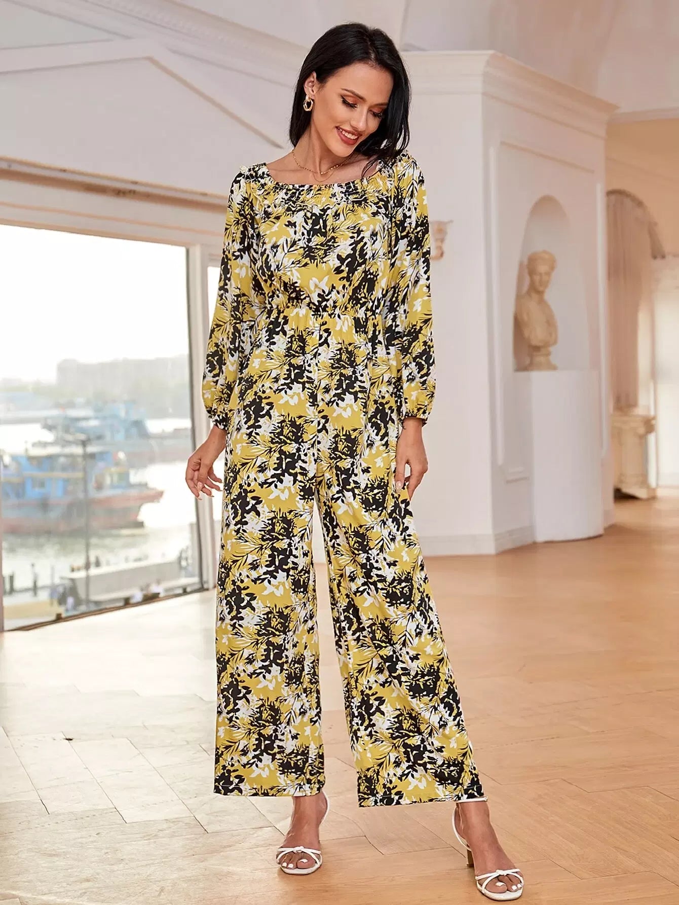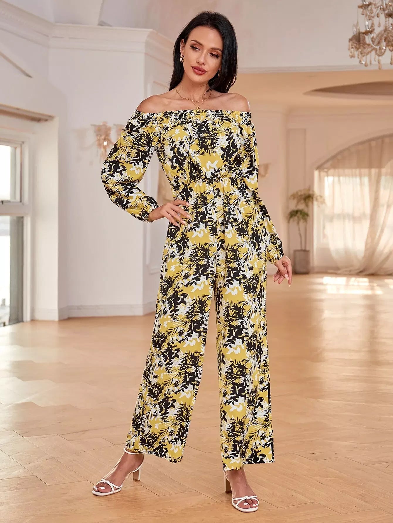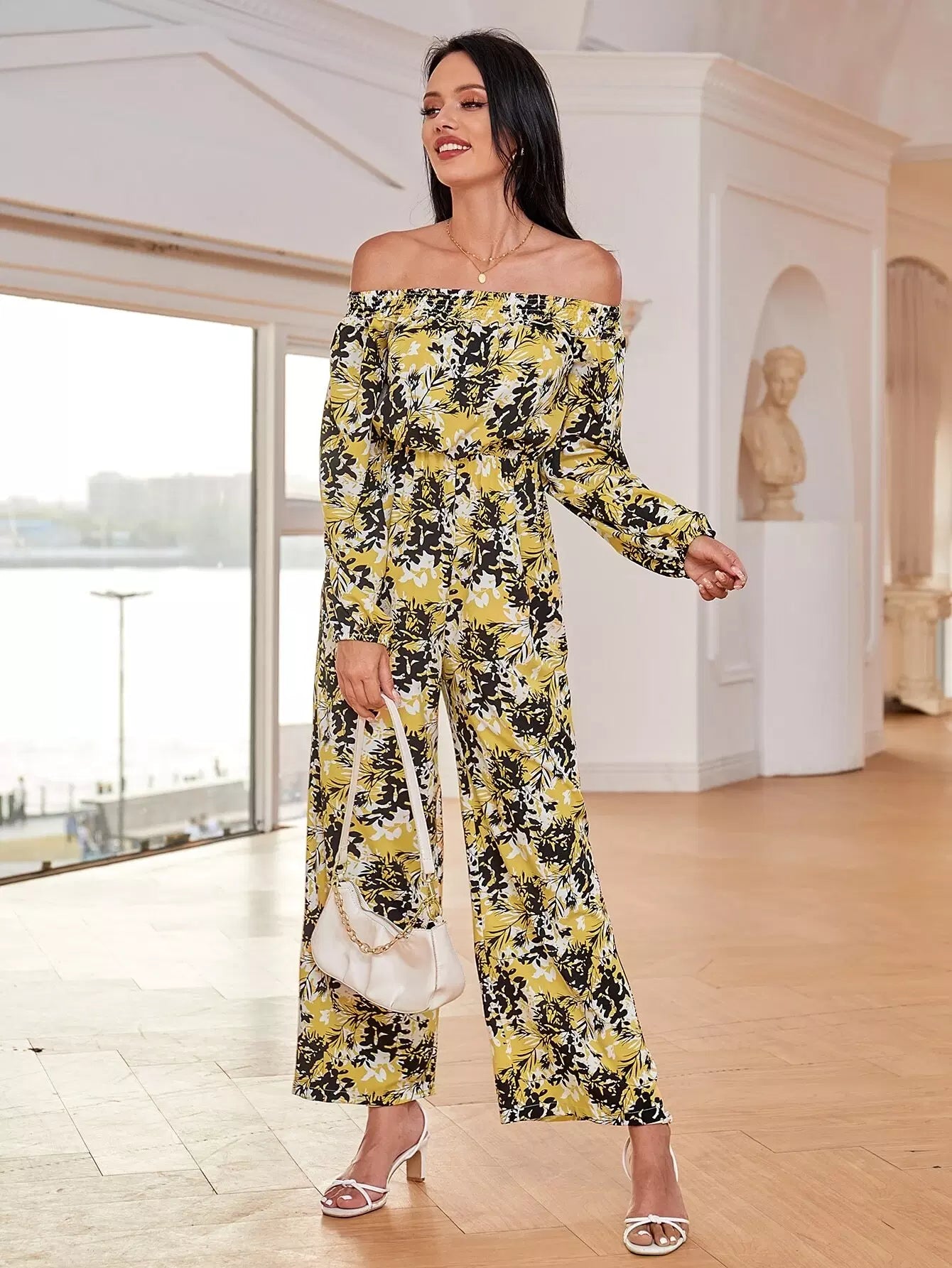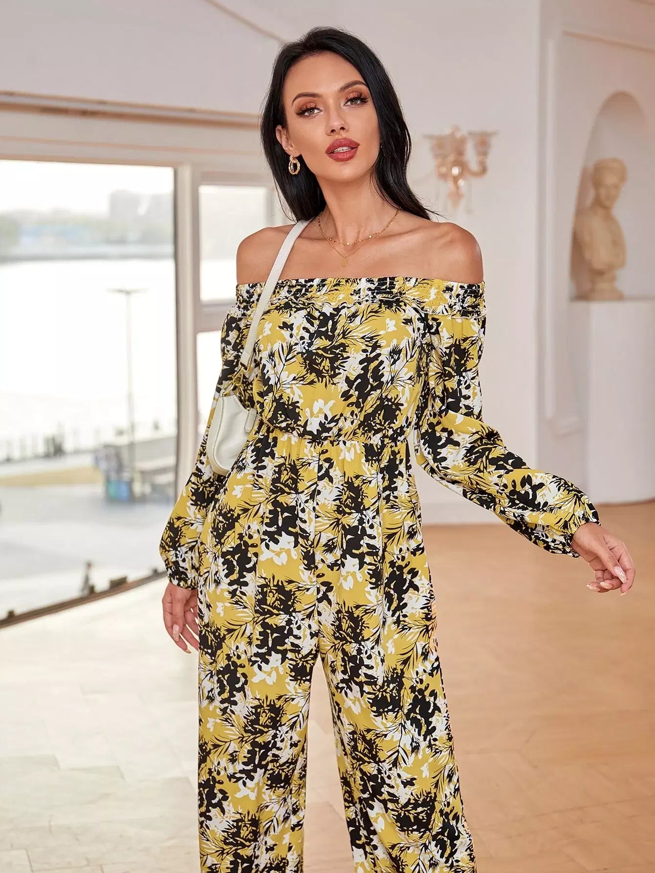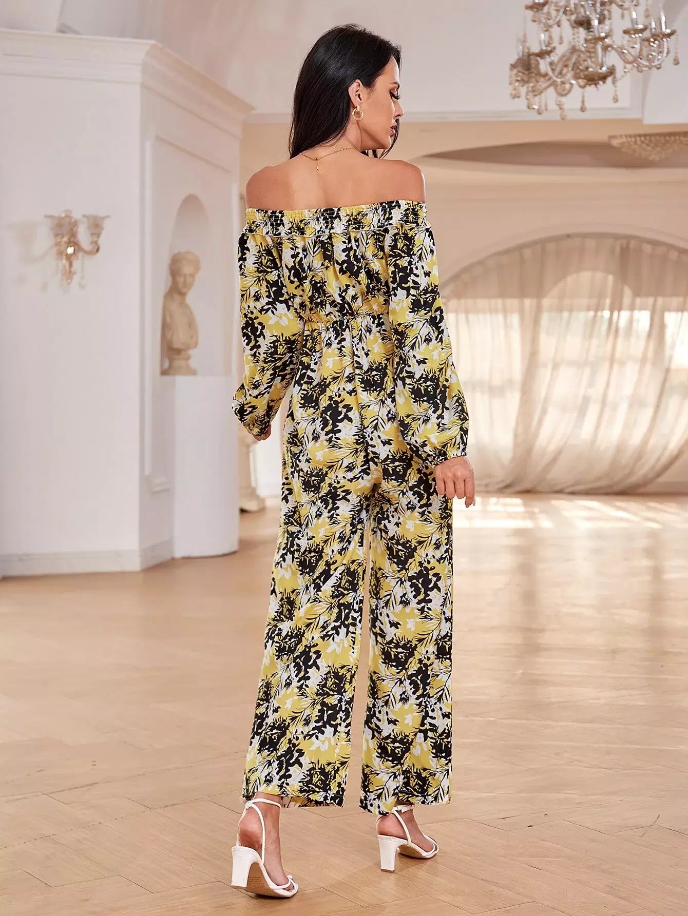 Women - Allover Plants Wide Leg Bardot Jumpsuit