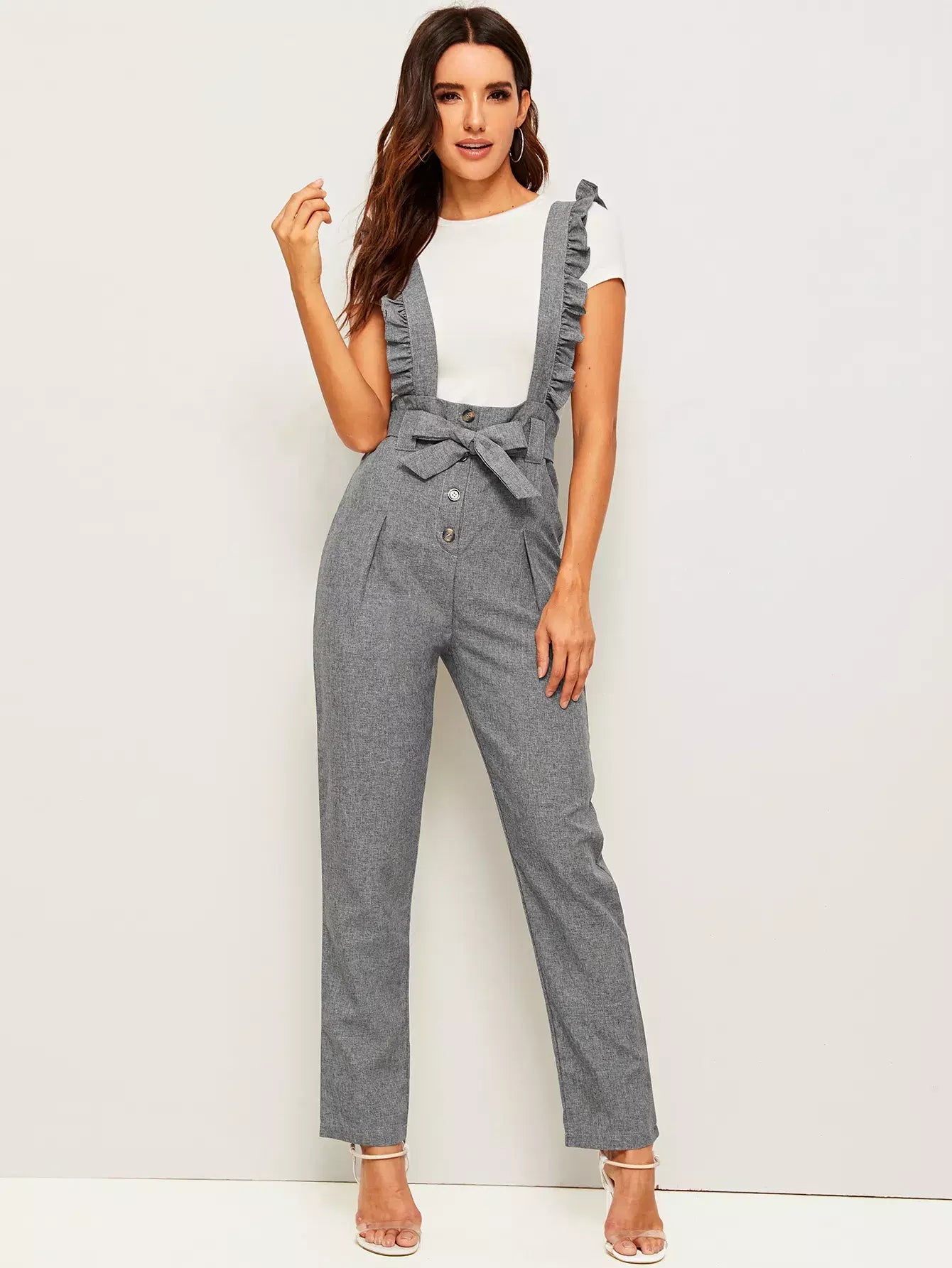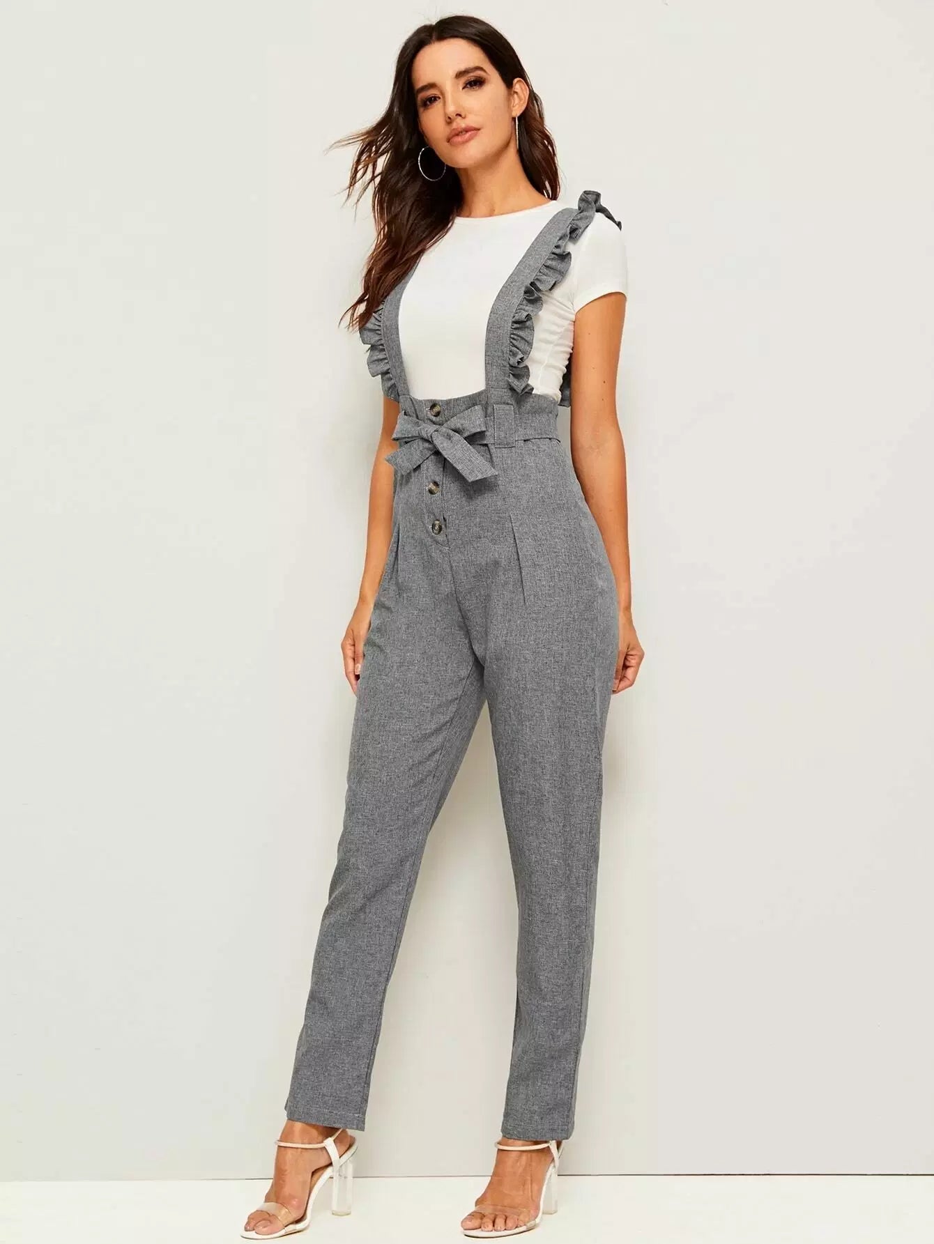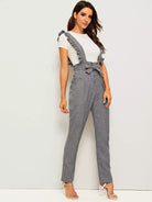 Button Fly Pants With Ruffle Straps Without Belt