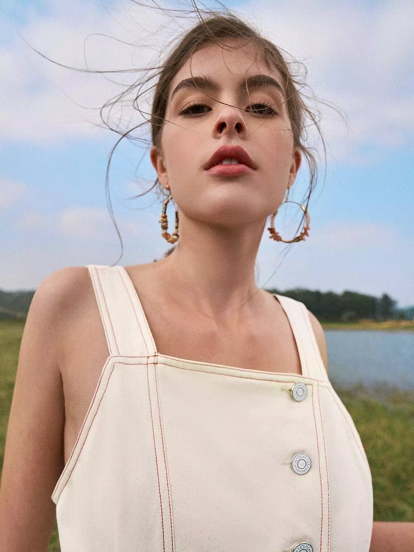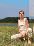 Contrast Stitch Button Placket Overall Jumpsuit Without Belt