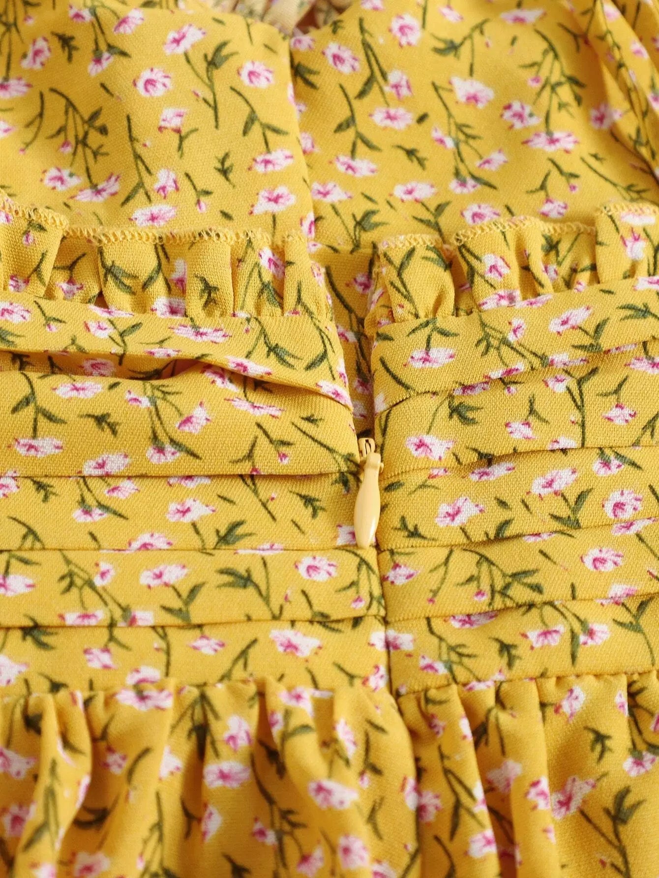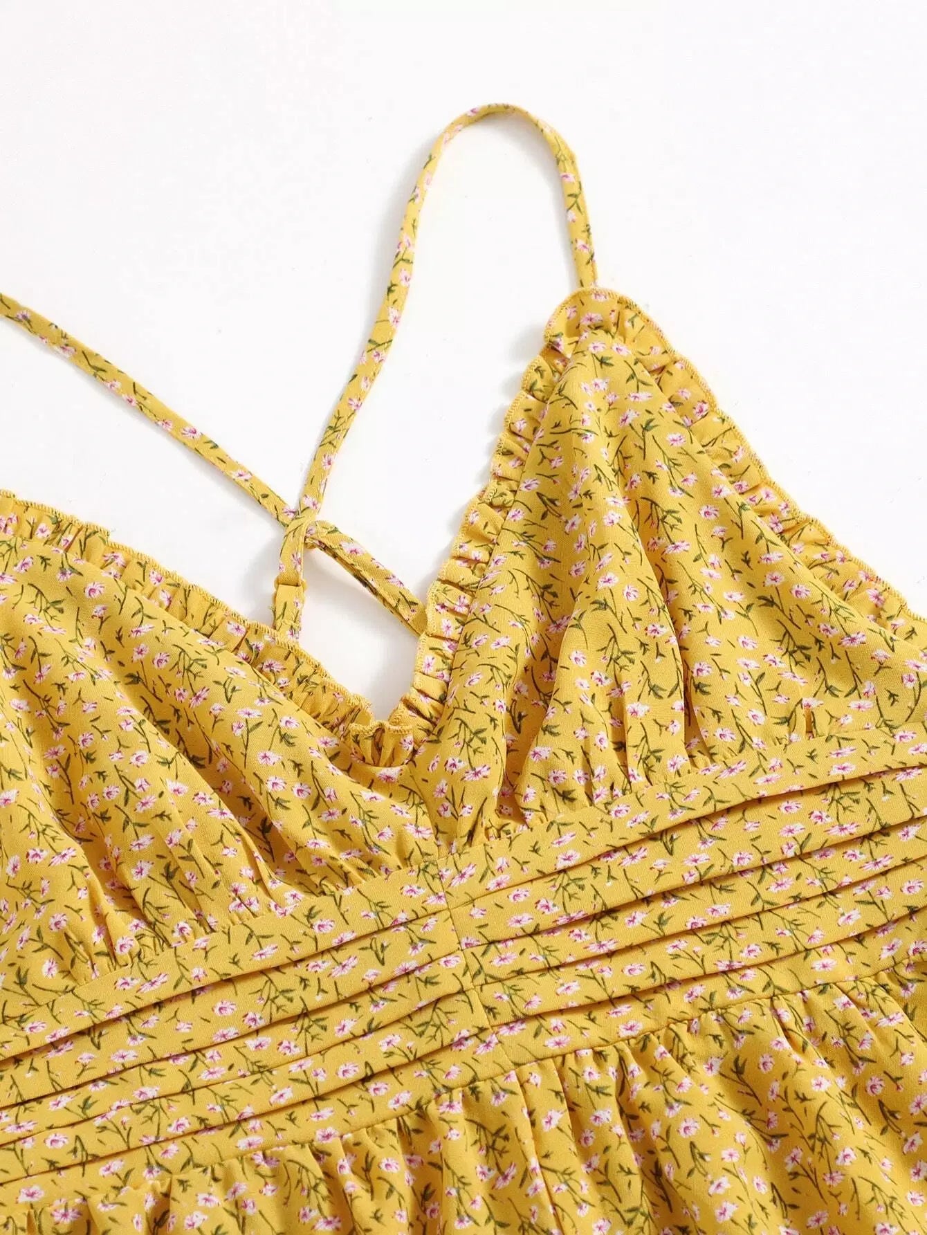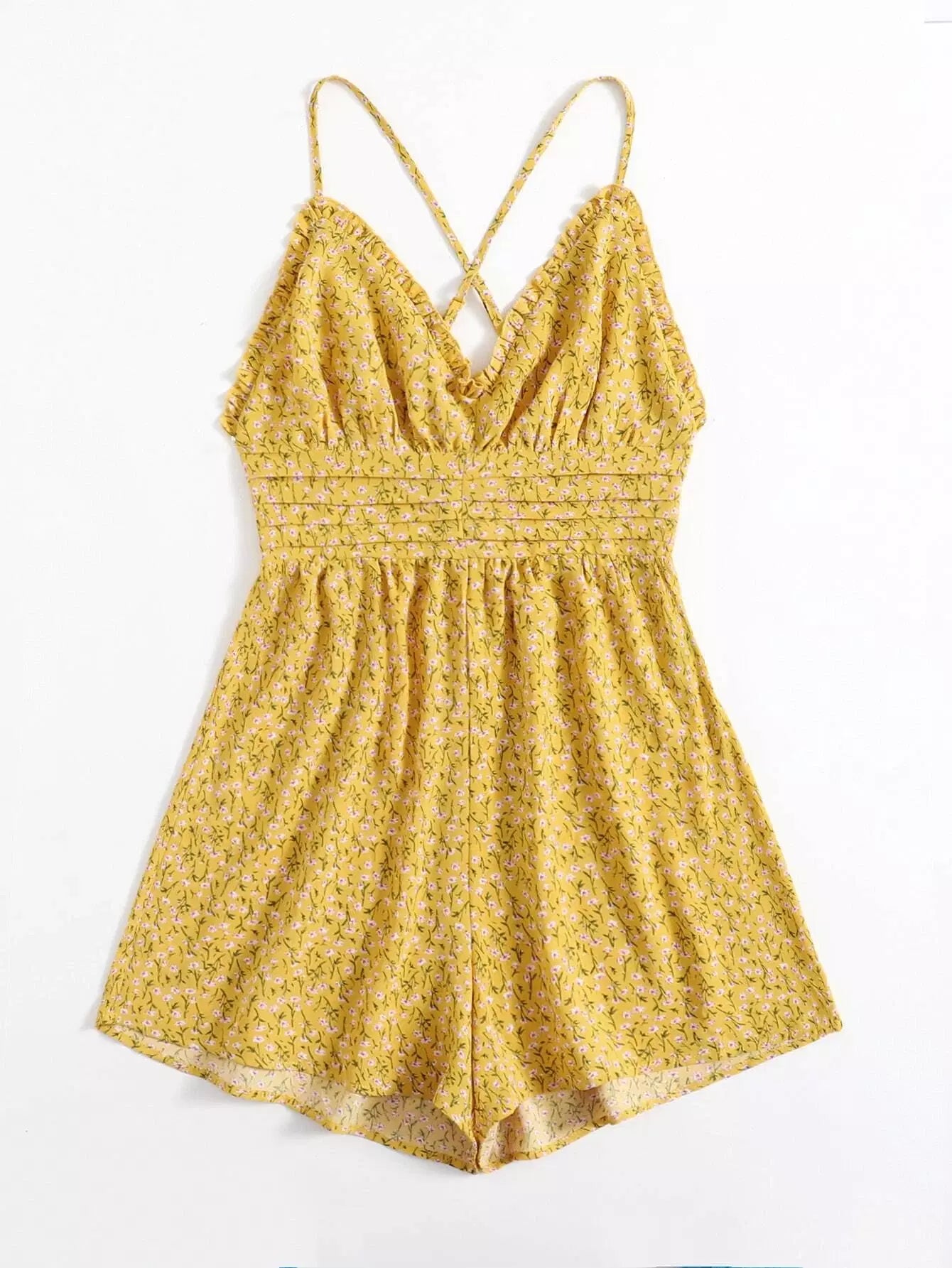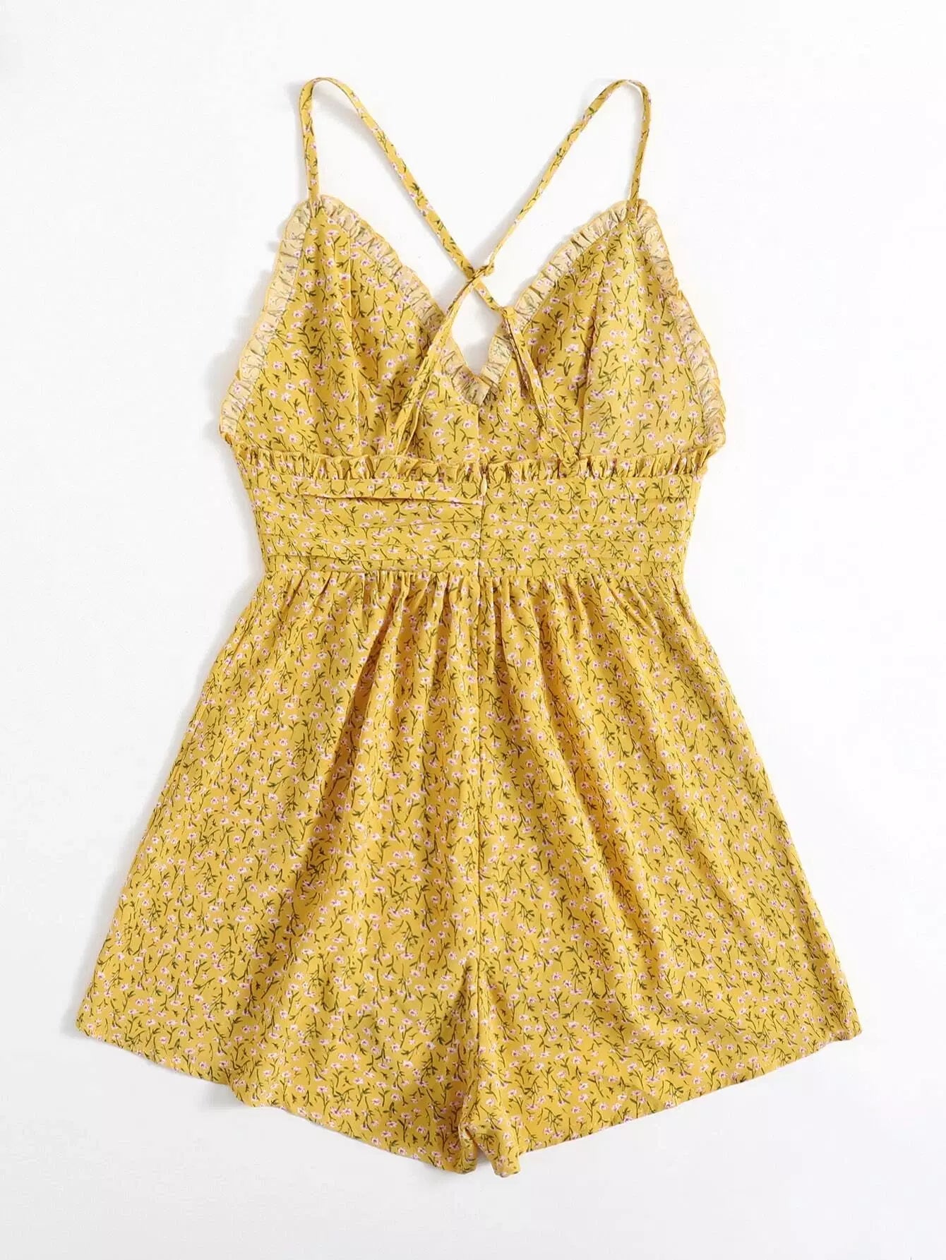 Crisscross Backless Frill Detail Ditsy Floral Slip Romper