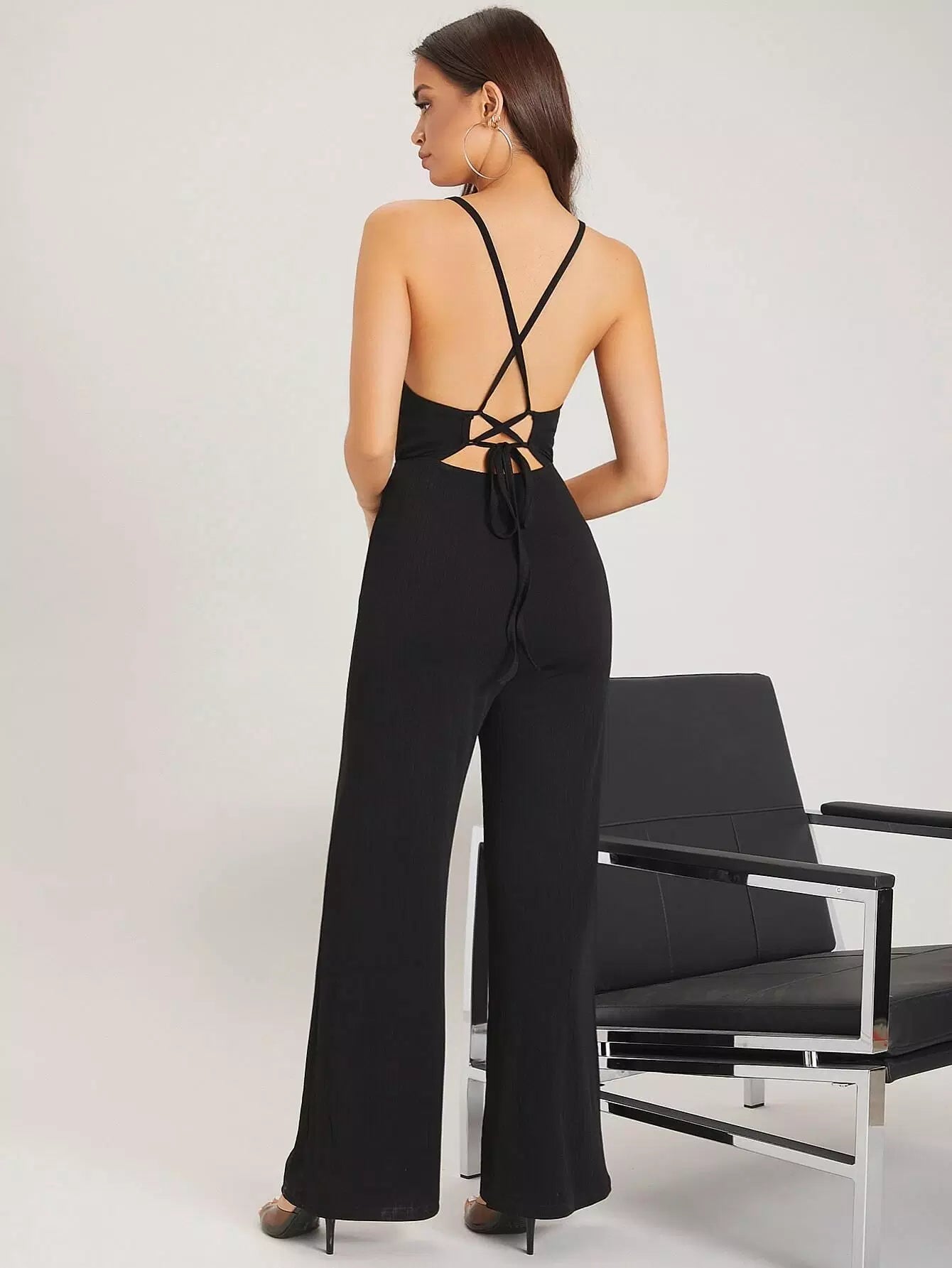 Crisscross Lace Up Backless Cami Jumpsuit
