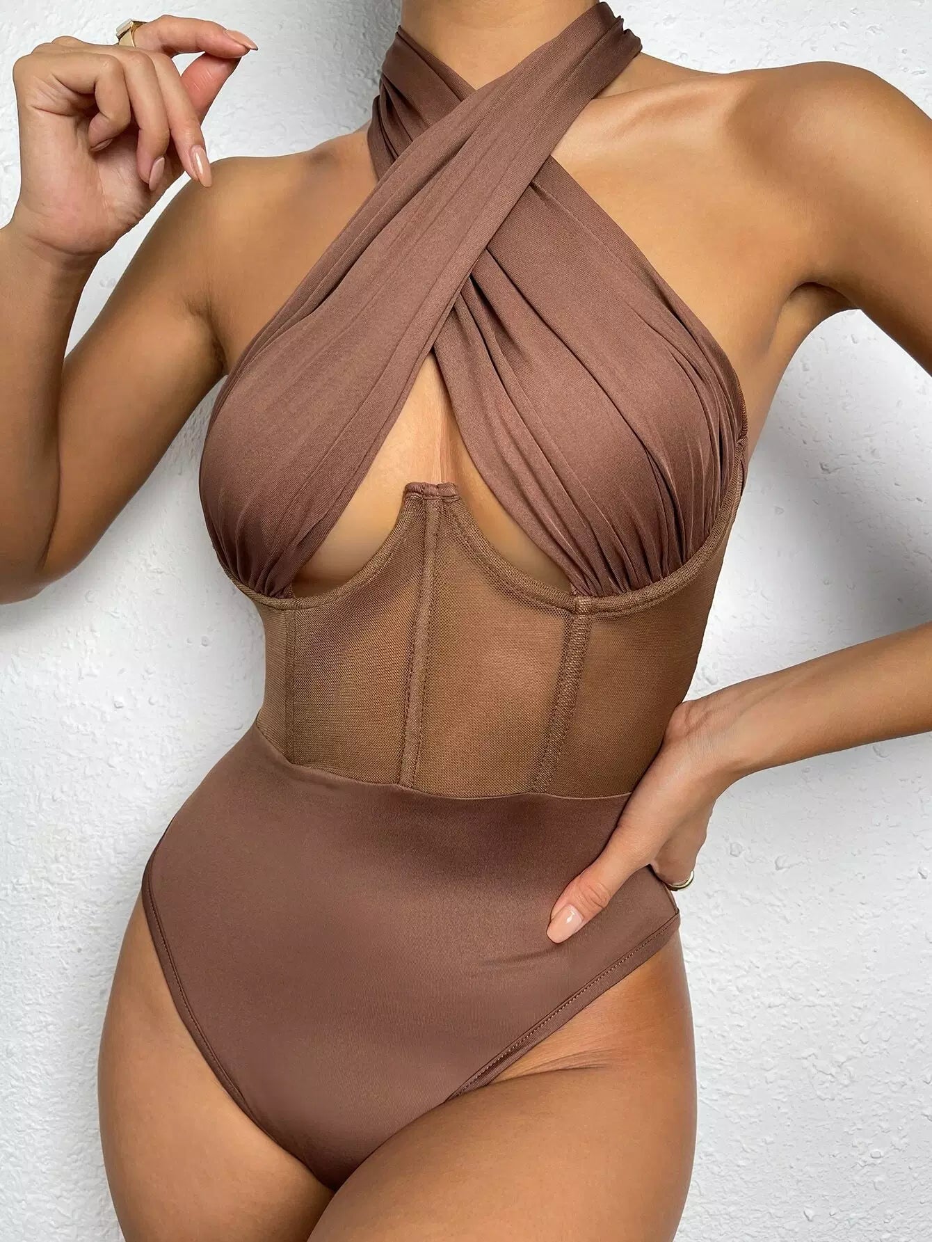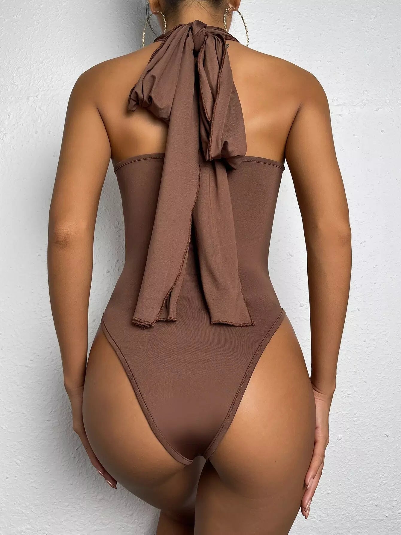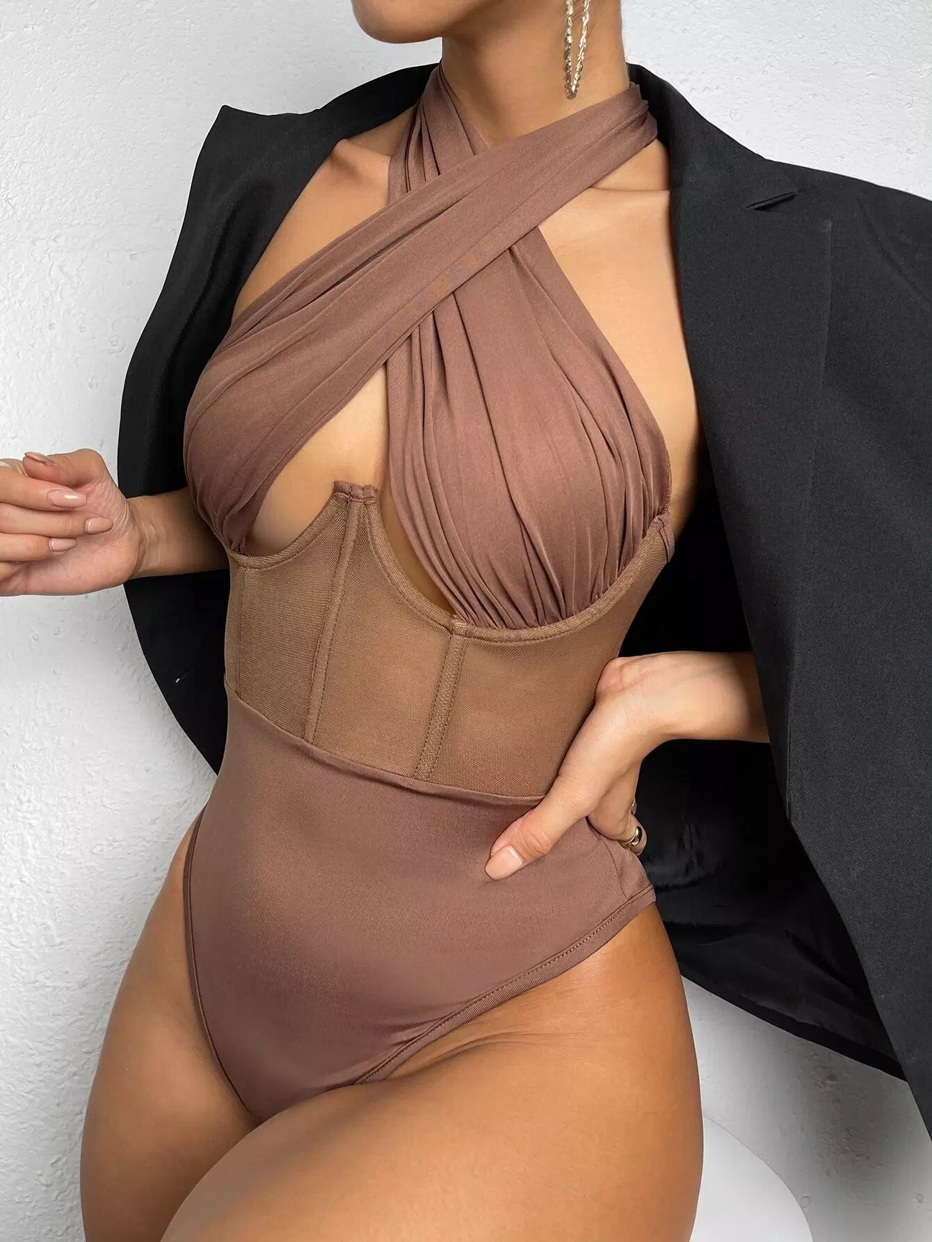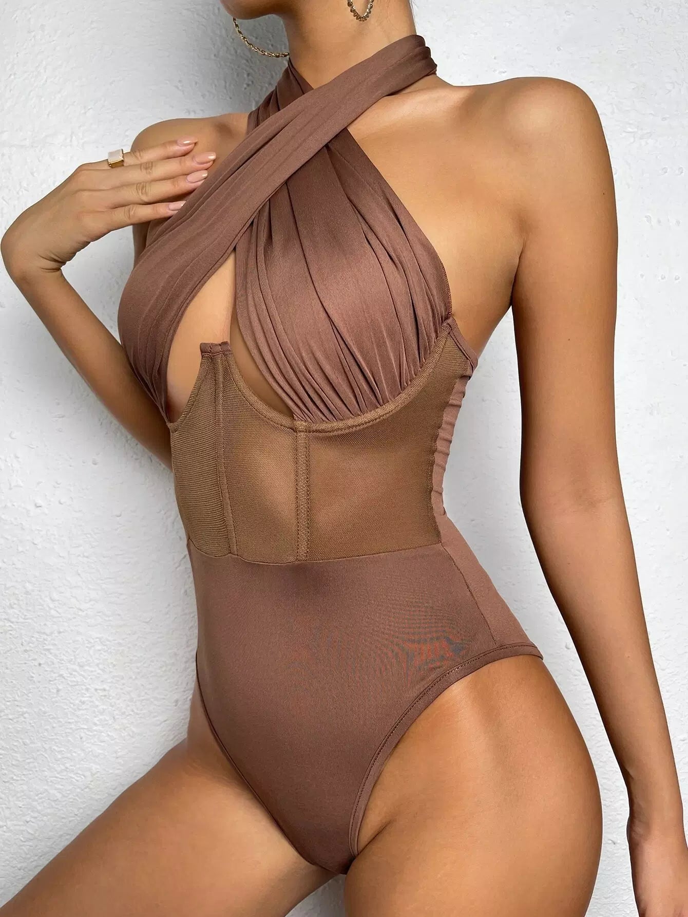 Women - Cutout Tied Backless Mesh Insert Bodysuit
