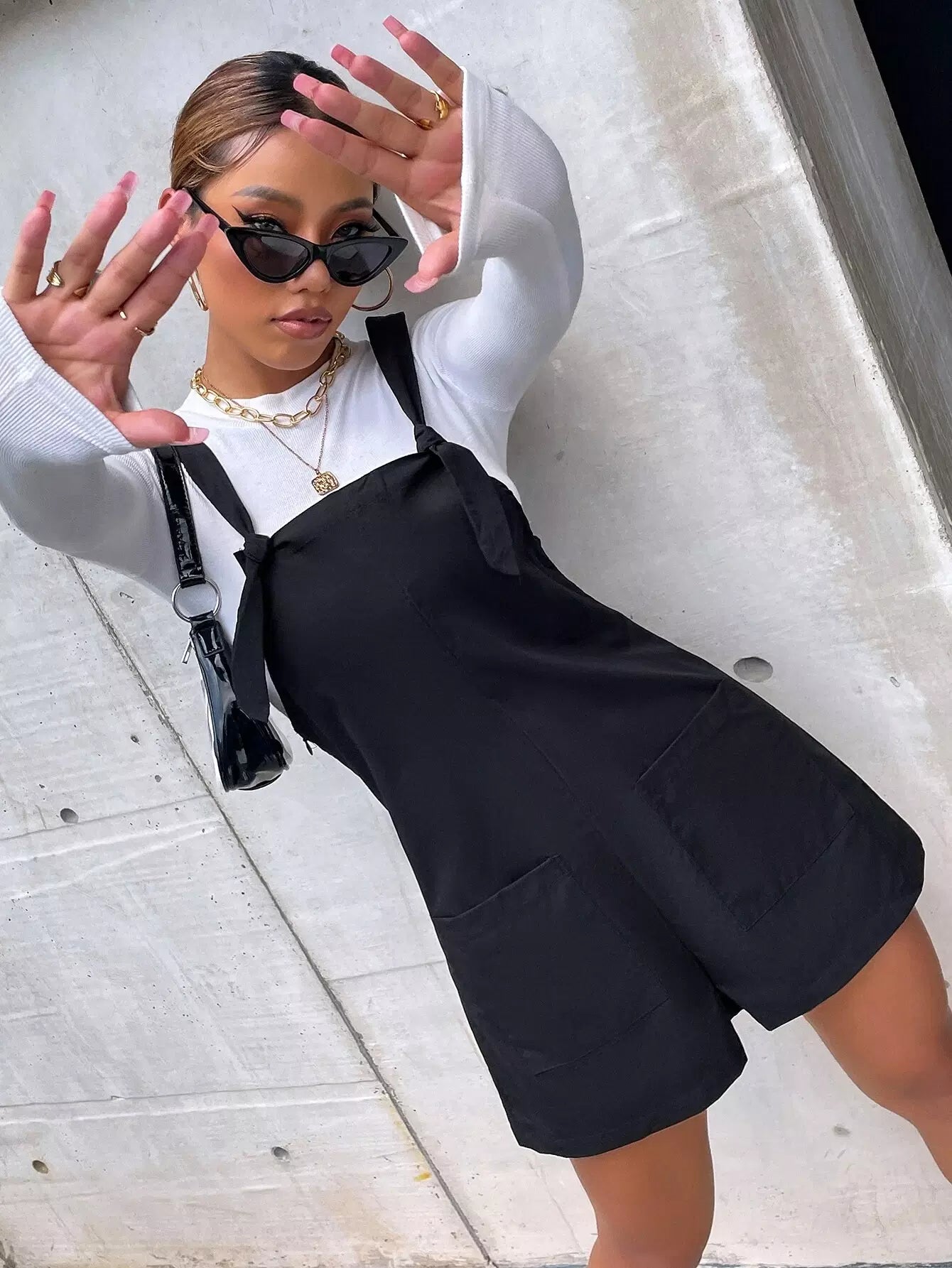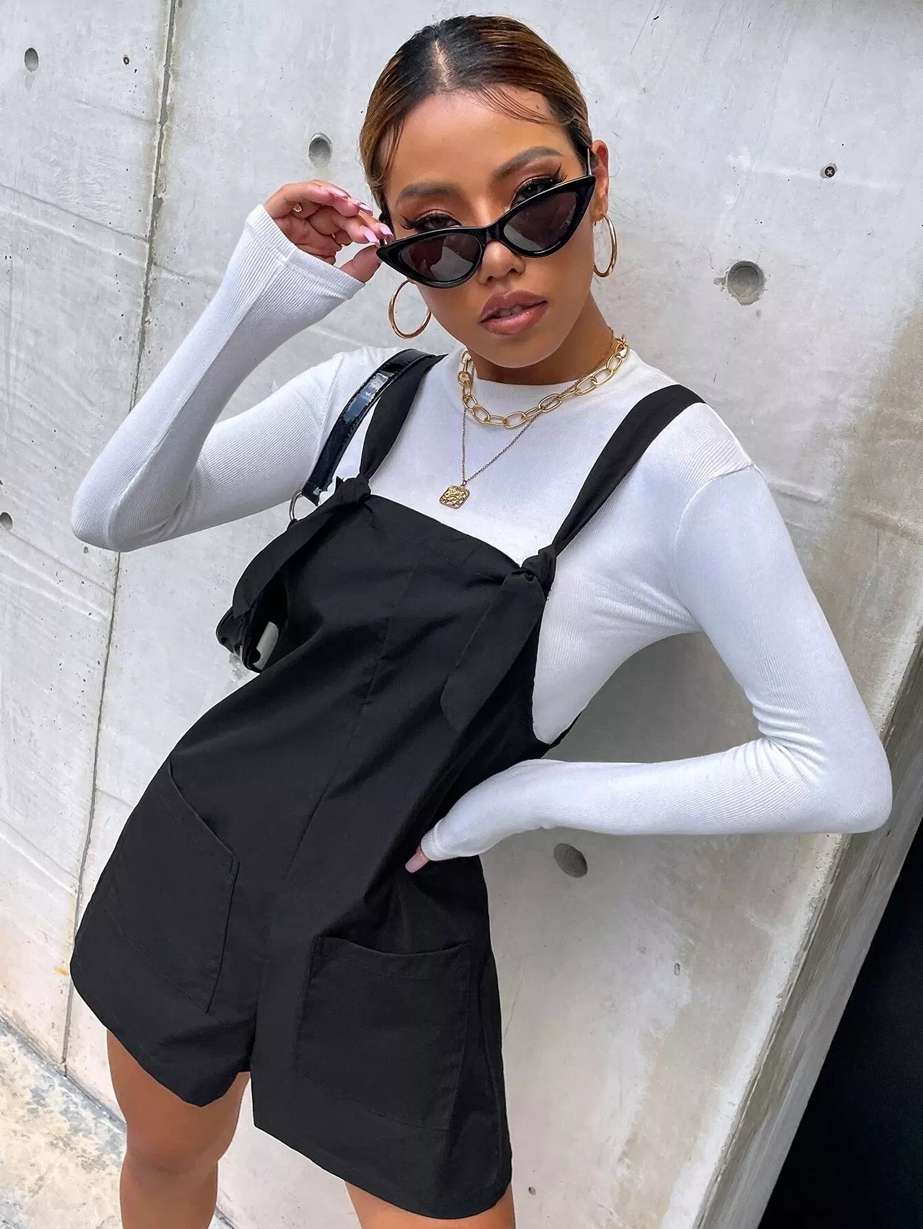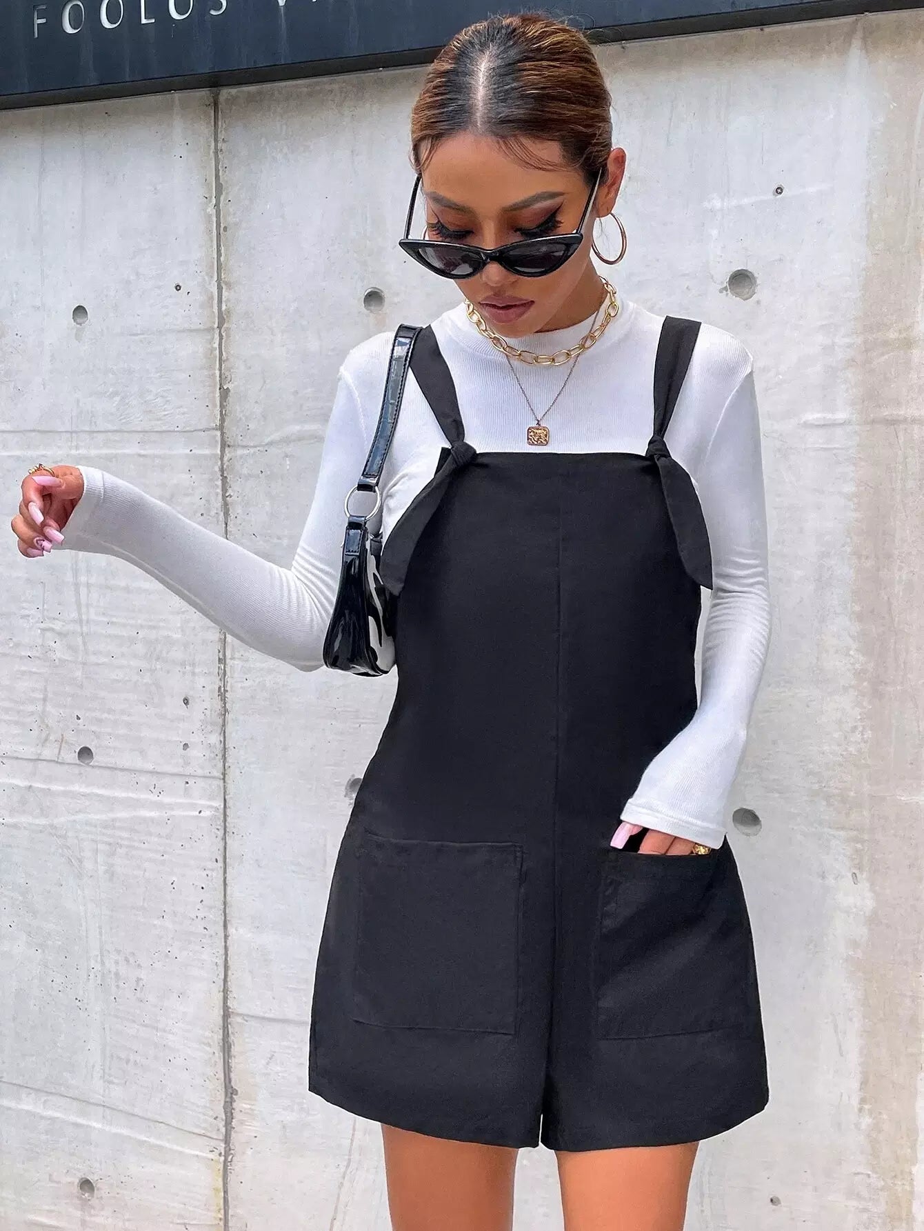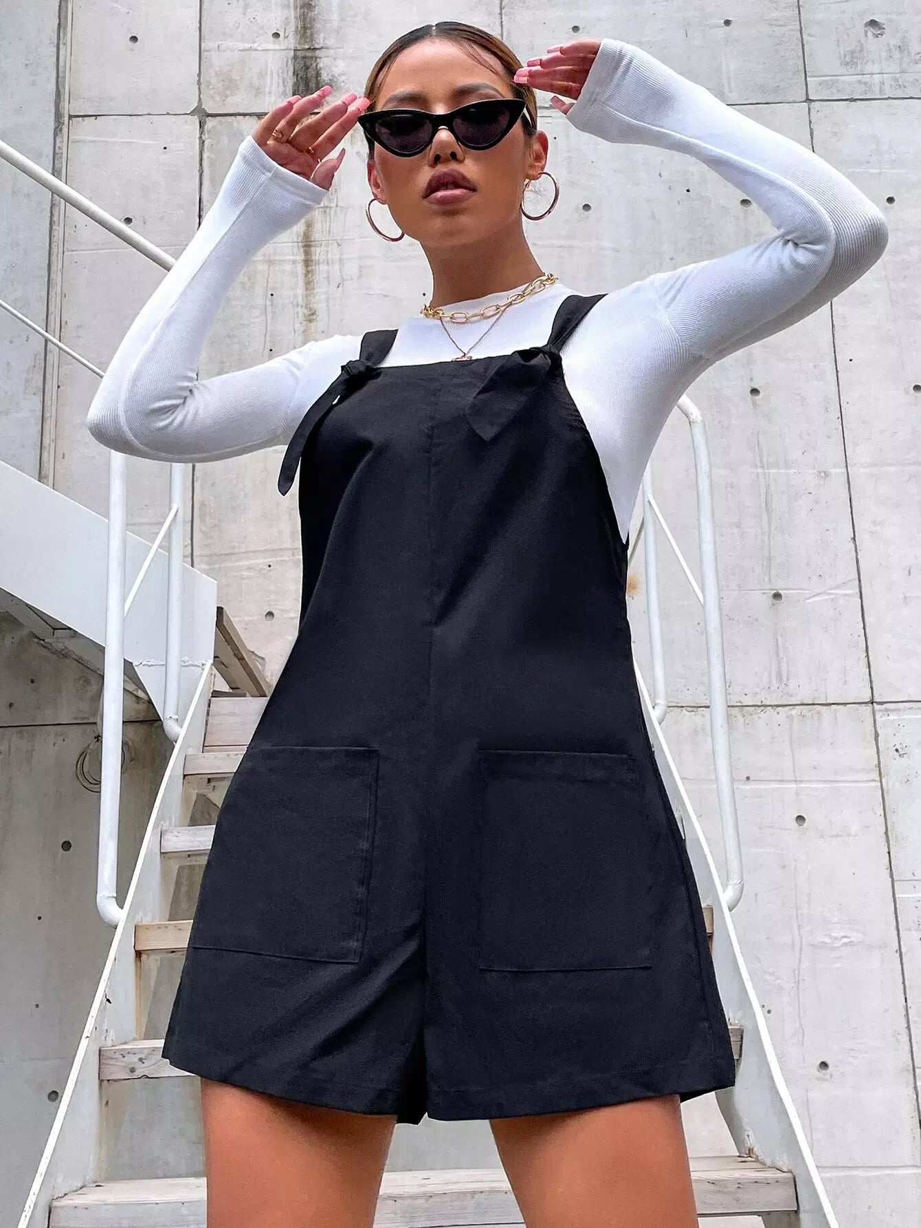 Dual Pockets Solid Overall Romper