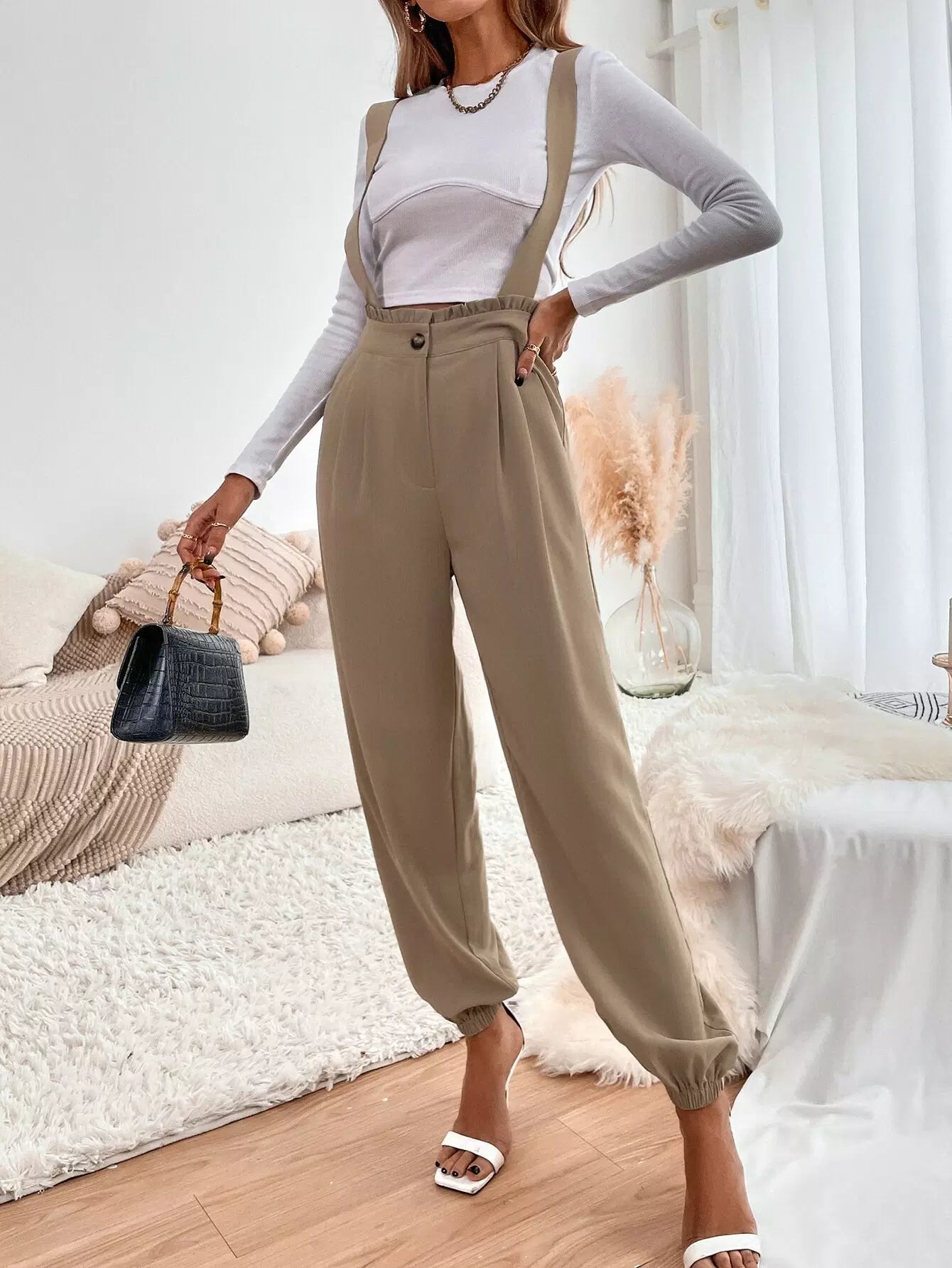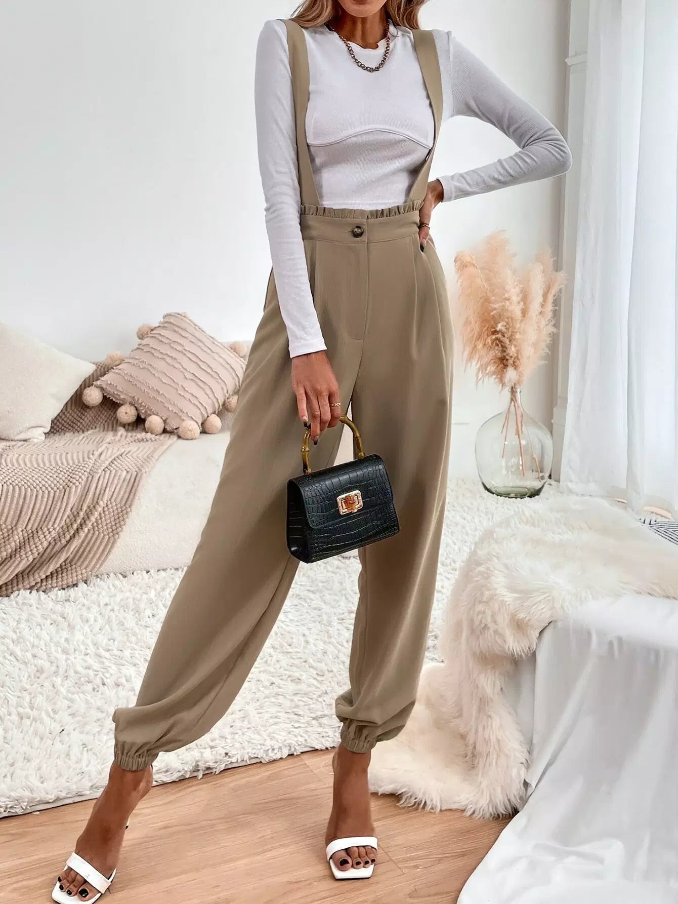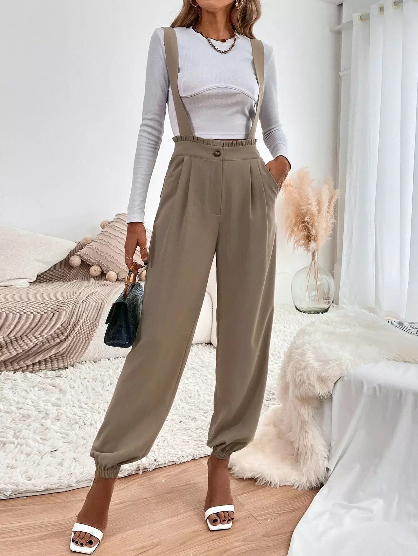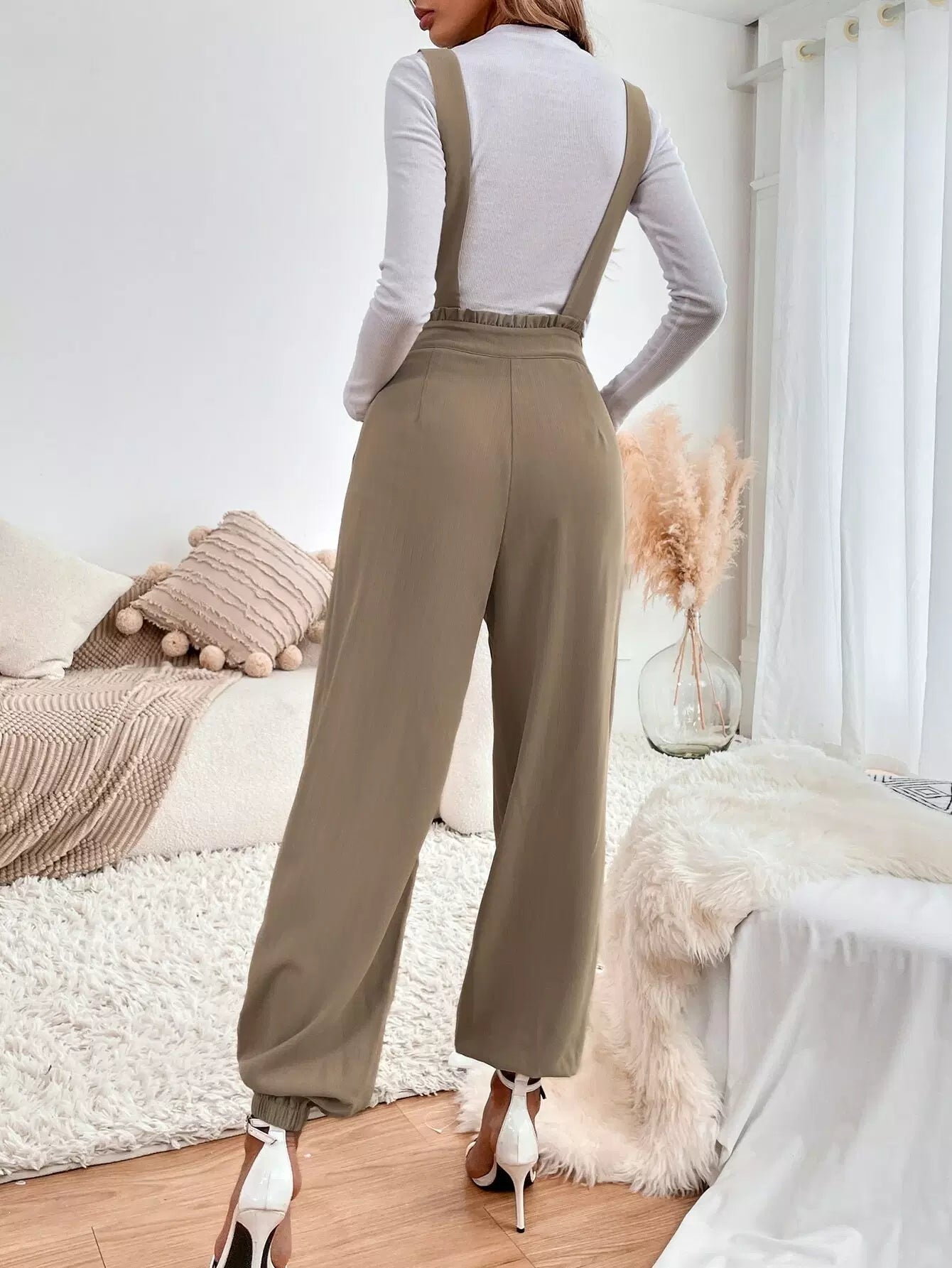 Frill Waist Slant Pocket Pinafore Jumpsuit