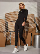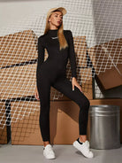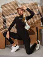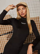 Letter Embroidery Mock Neck Unitard Jumpsuit