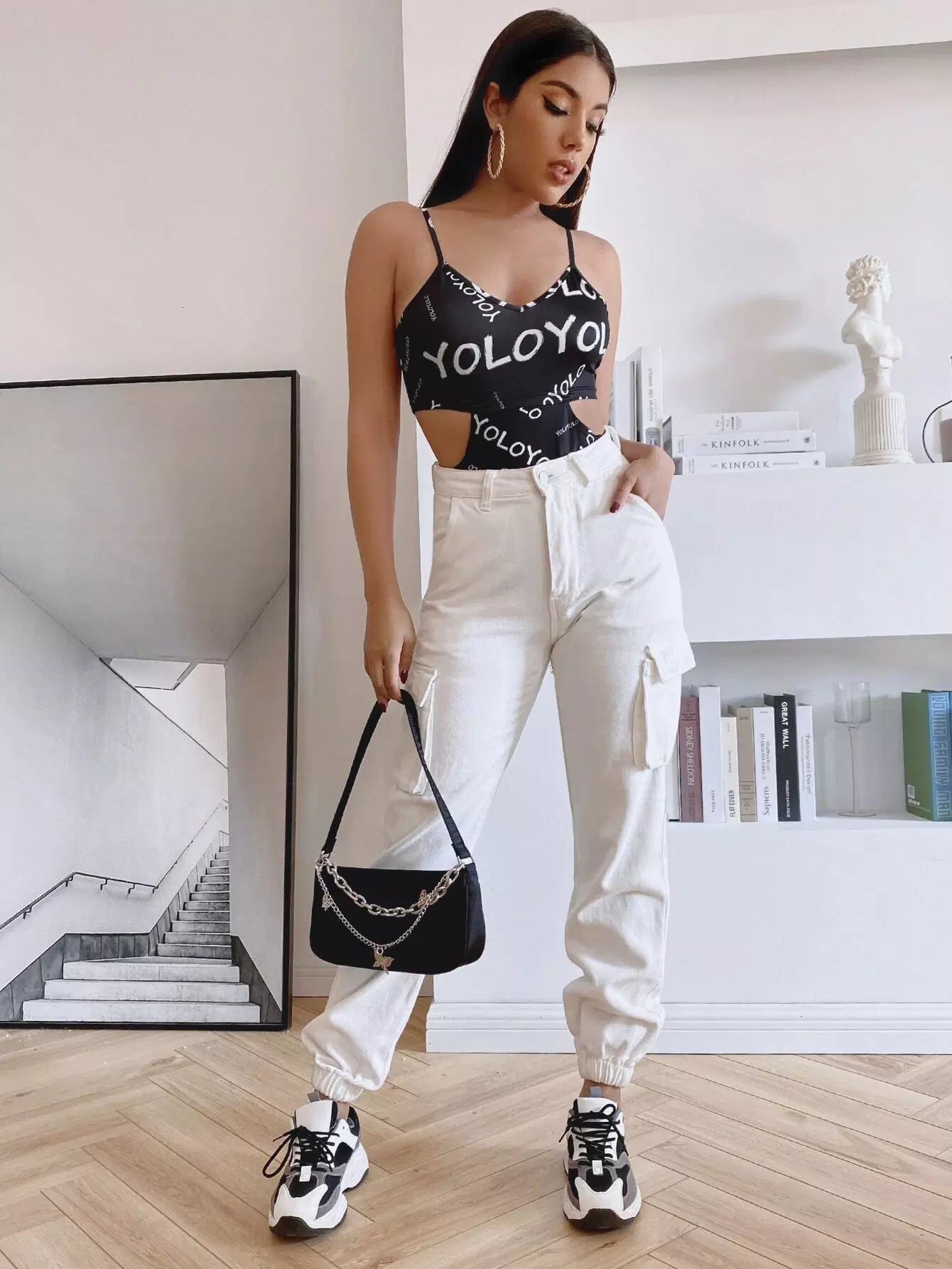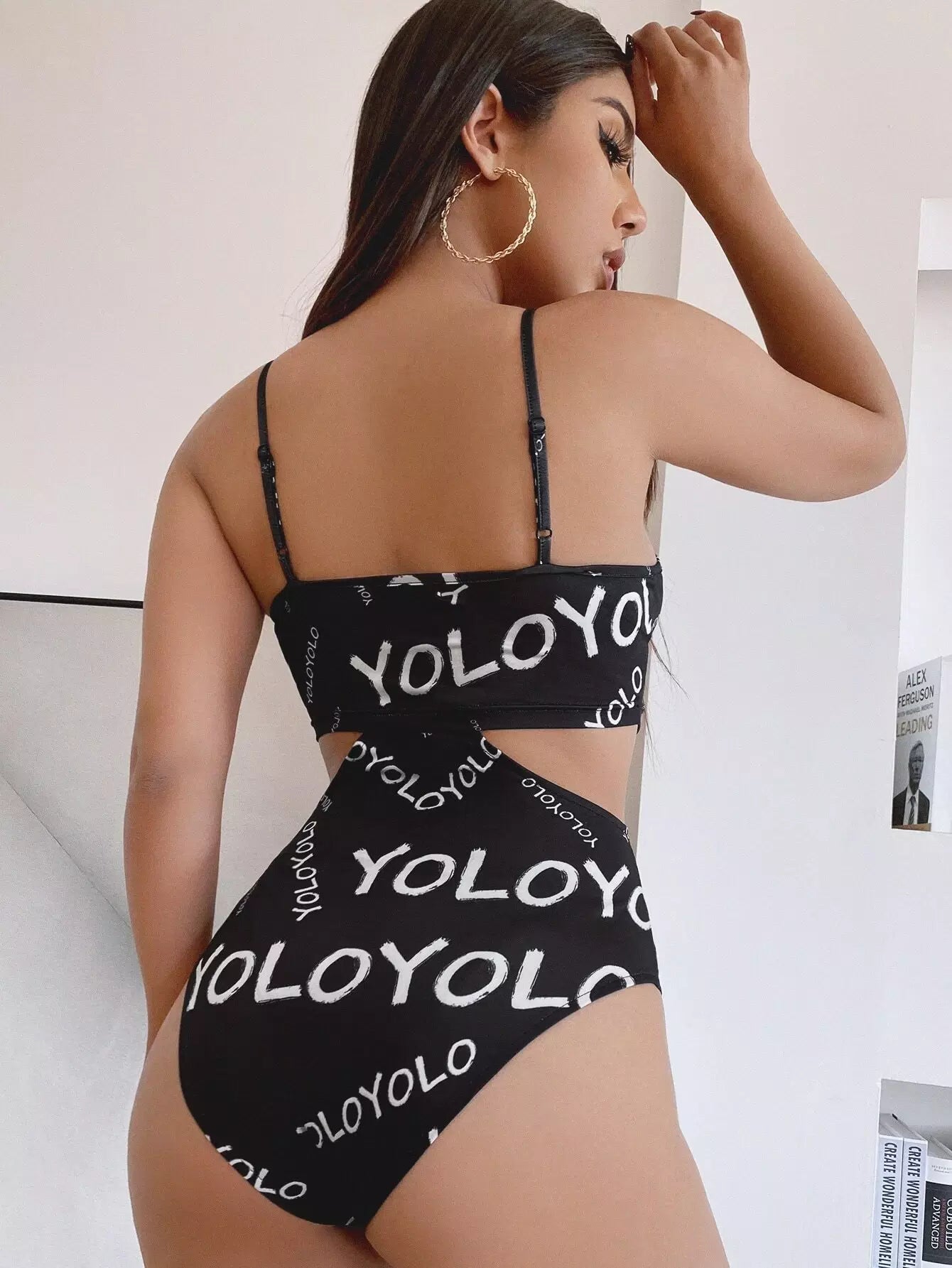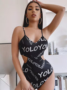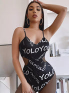 Letter Graphic Cut Out Cami Bodysuit