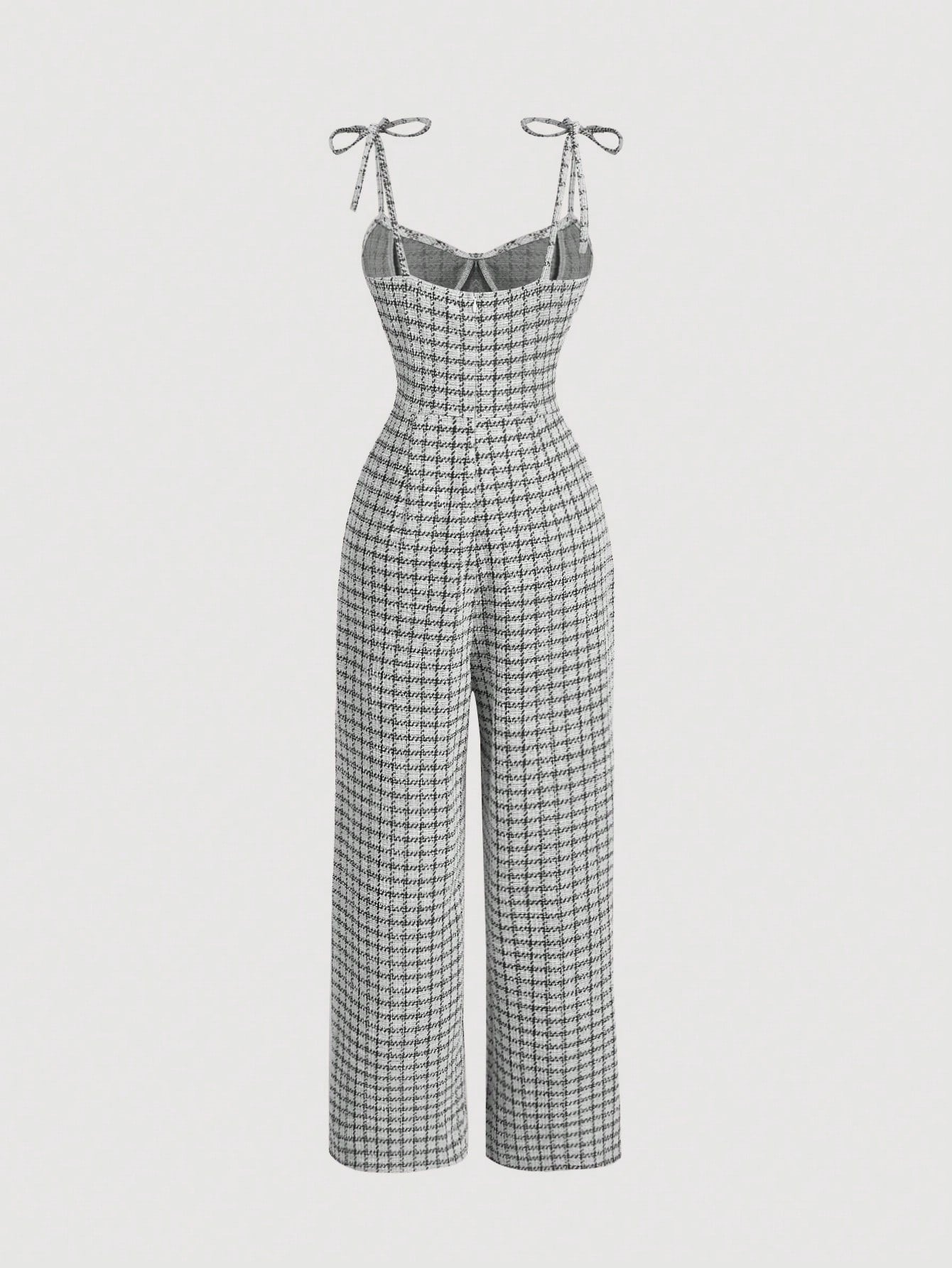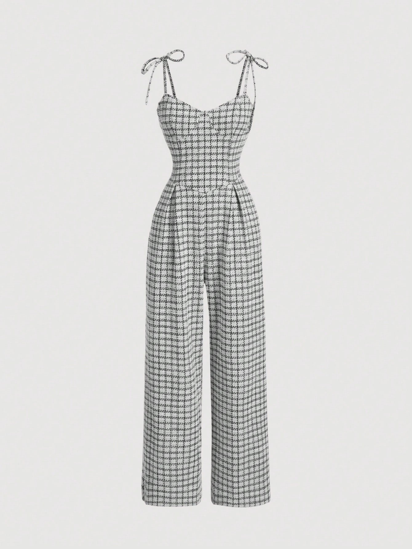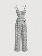 MOD Women Elegant Lace-Up Bow Plaid Print Long Jumpsuit , Jumpsuit Elegant,Sleeveless Plaid Jumpsuit