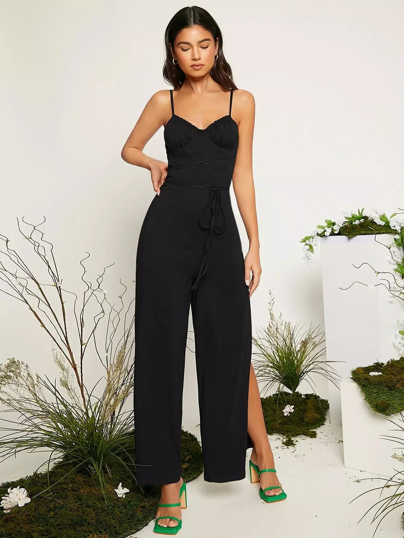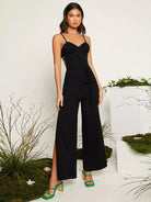 Open Back Split Hem Wide Leg Slip Jumpsuit