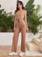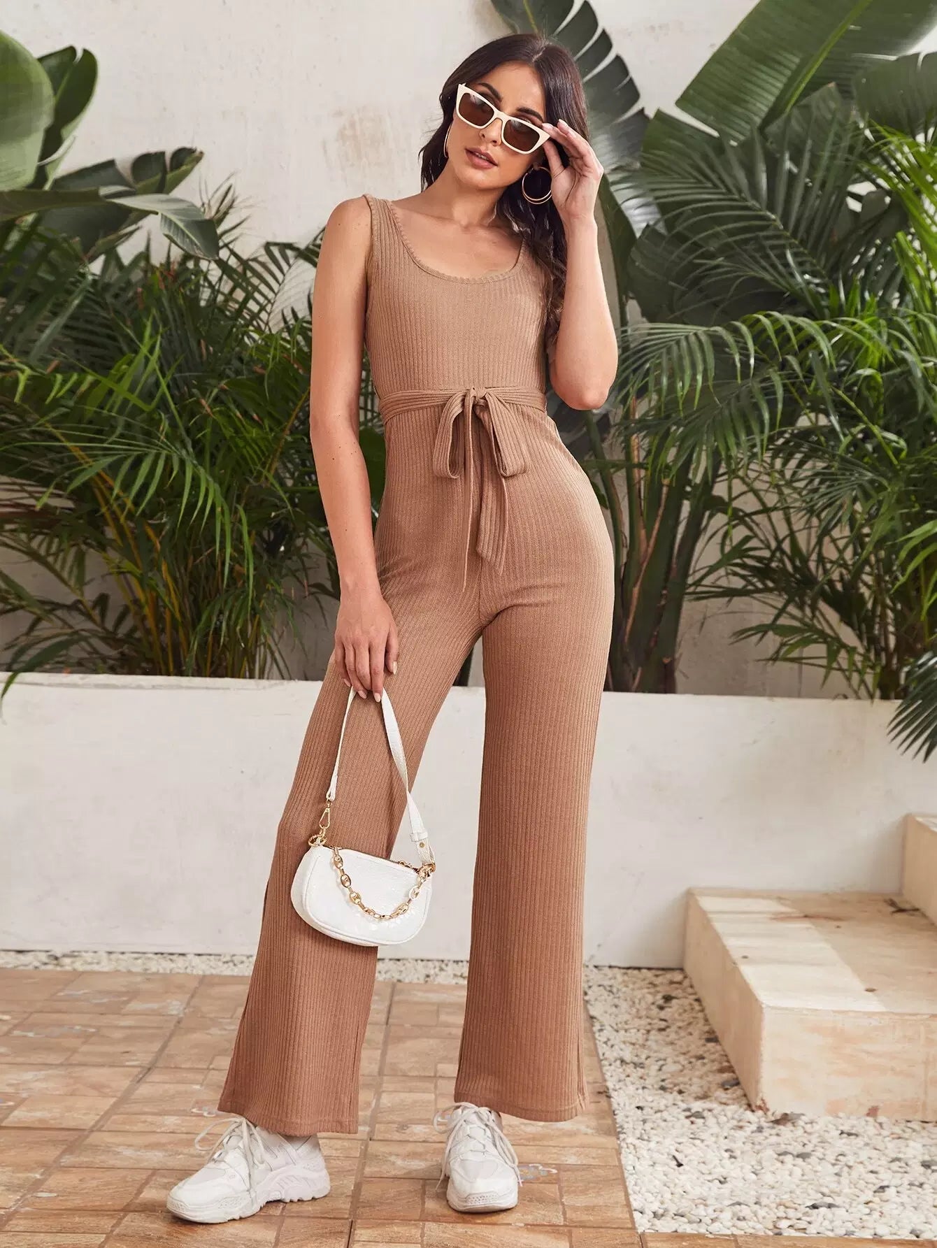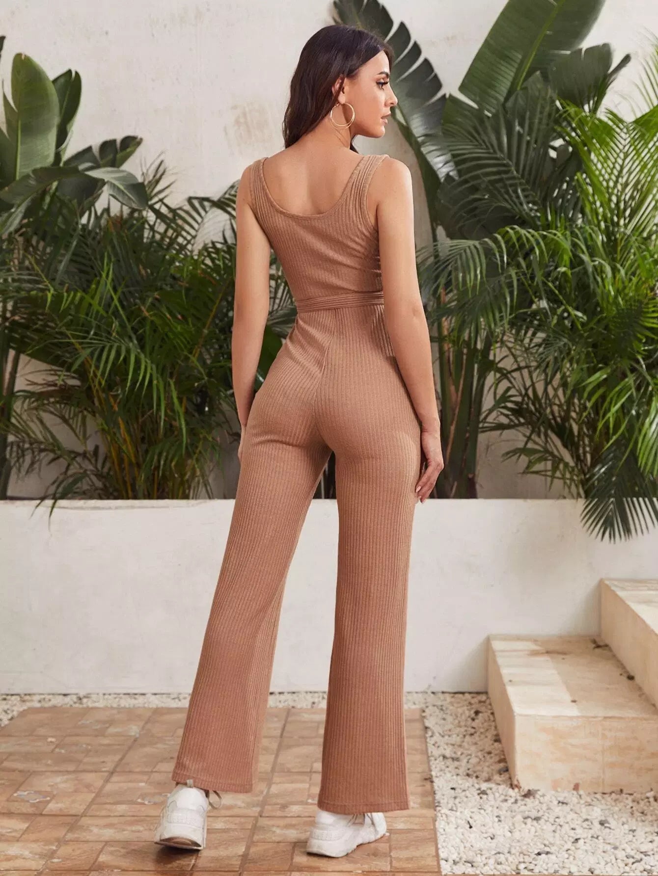 Rib-knit Wide Leg Jumpsuit Without Belt
