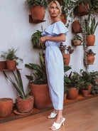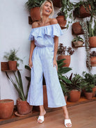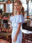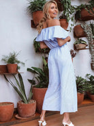 Ruffle Bardot Neck Striped Palazzo Jumpsuit