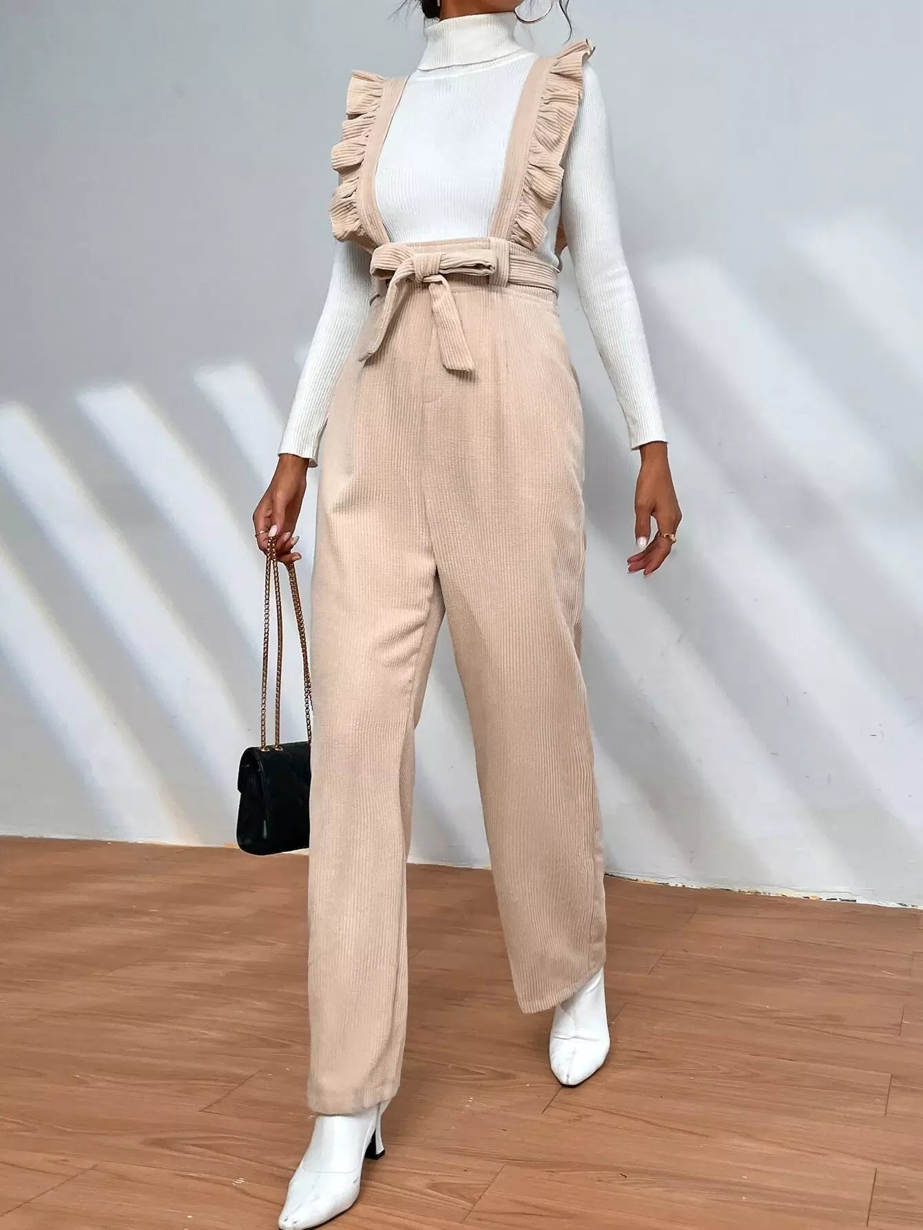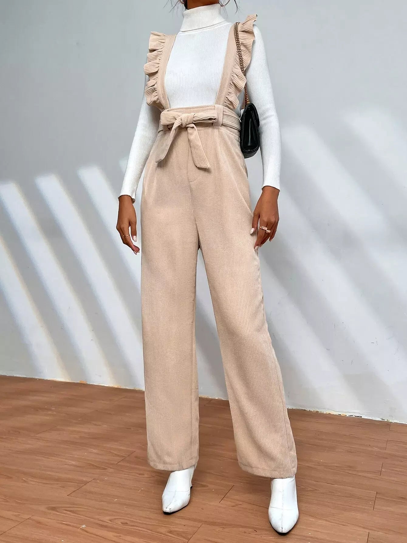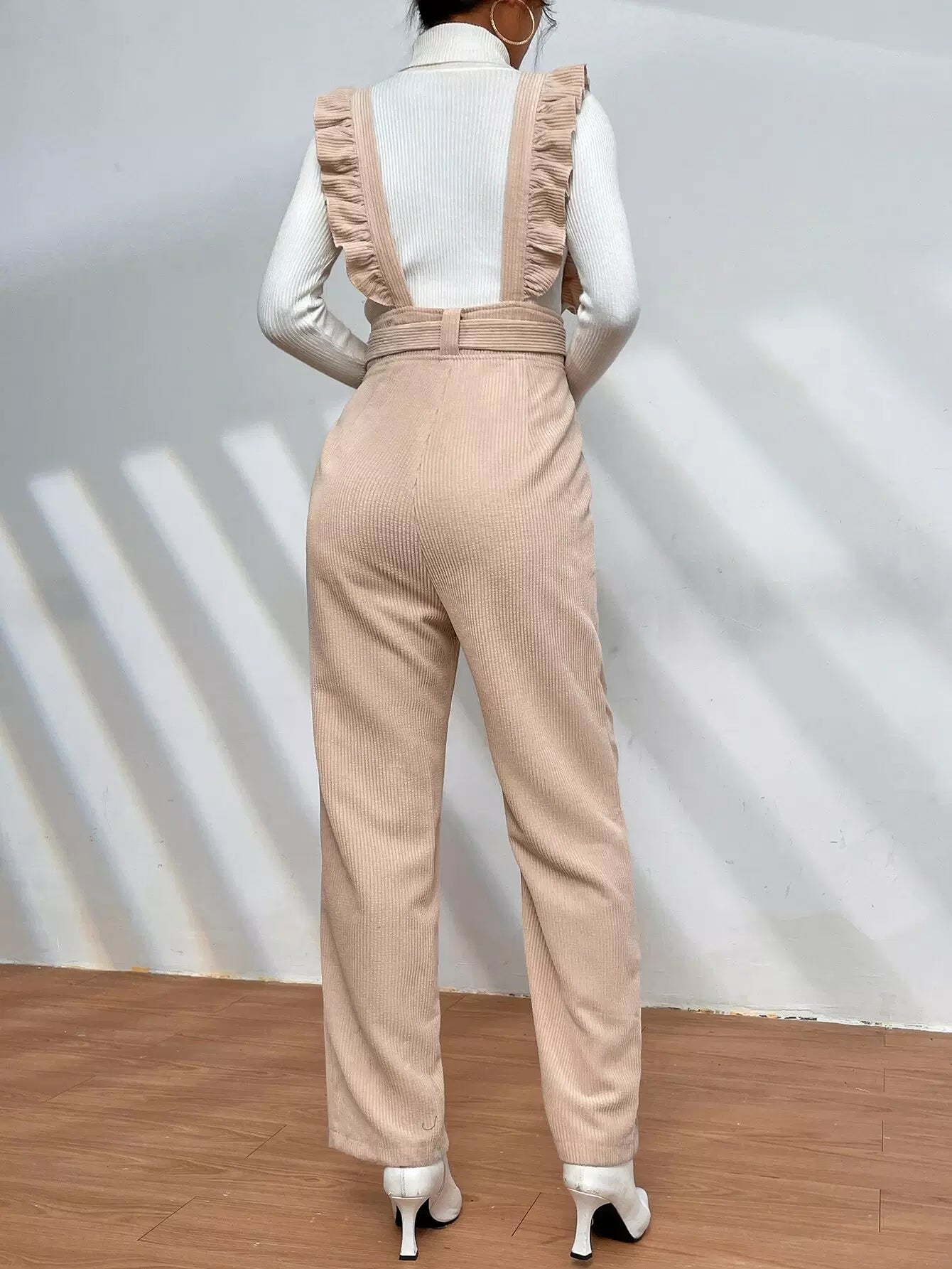 Ruffle Trim Overalls Without Top Without Belt