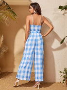 Self Wide Leg Gingham Cami Jumpsuit Without Belt