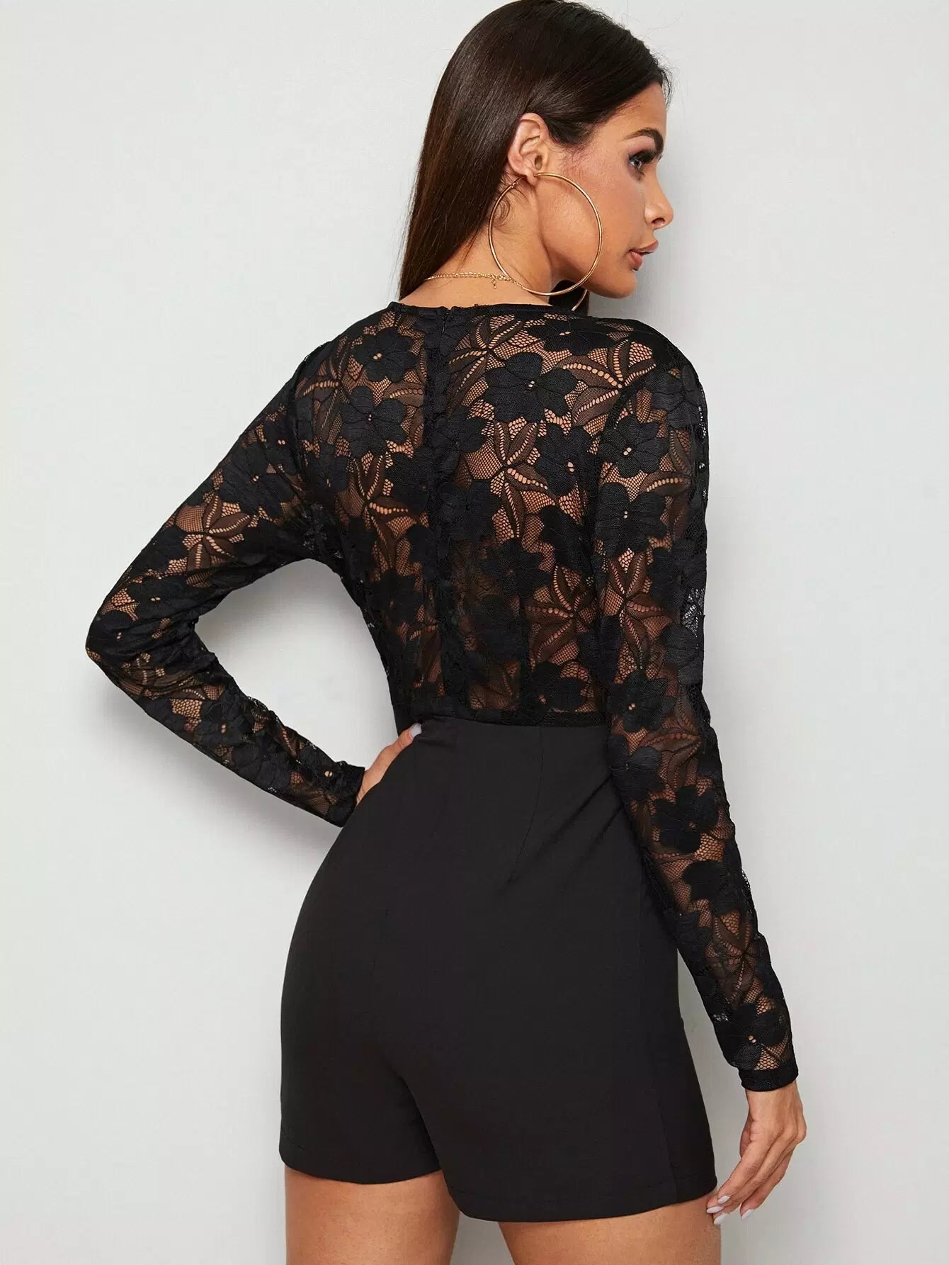 Sheer Guipure Lace Bodice Surplice Front Romper