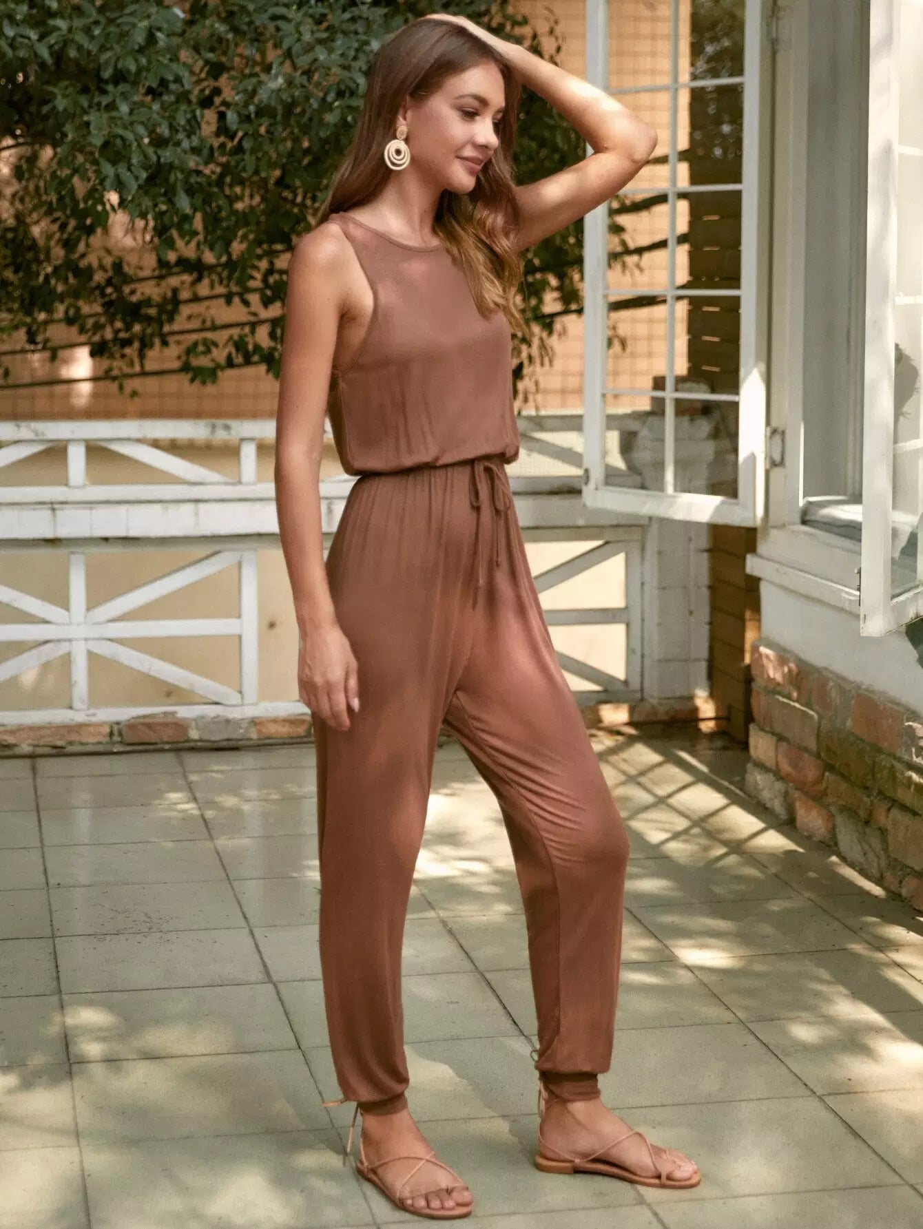 Solid Knot Front Tank Jumpsuit