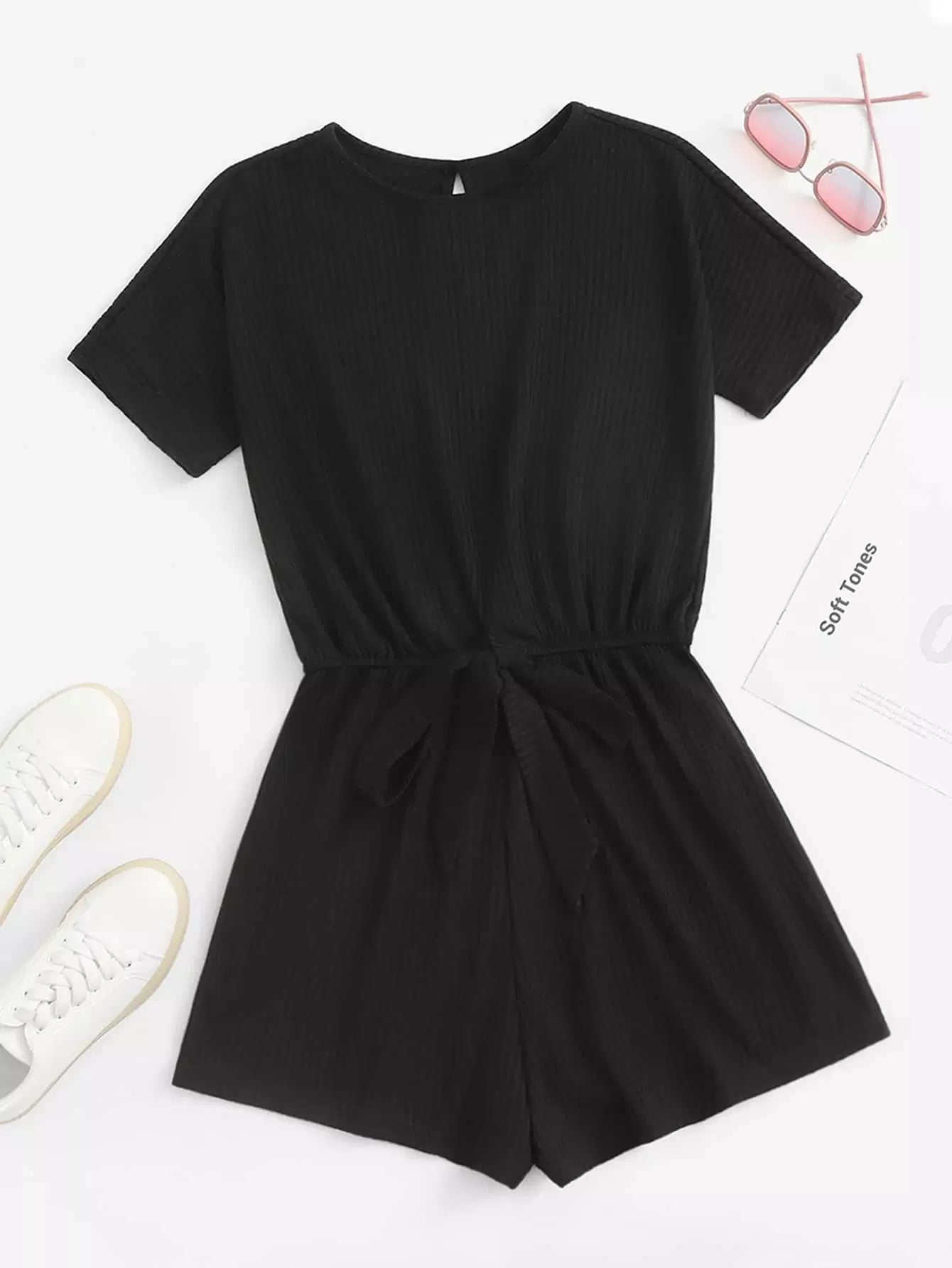 Solid Tie Front Romper