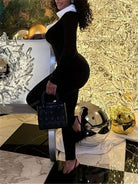 Spring And Summer Sexy Bodycon Jumpsuit Aesthetic Black White Patchwork Long Sleeve Jumpsuit Y2K For