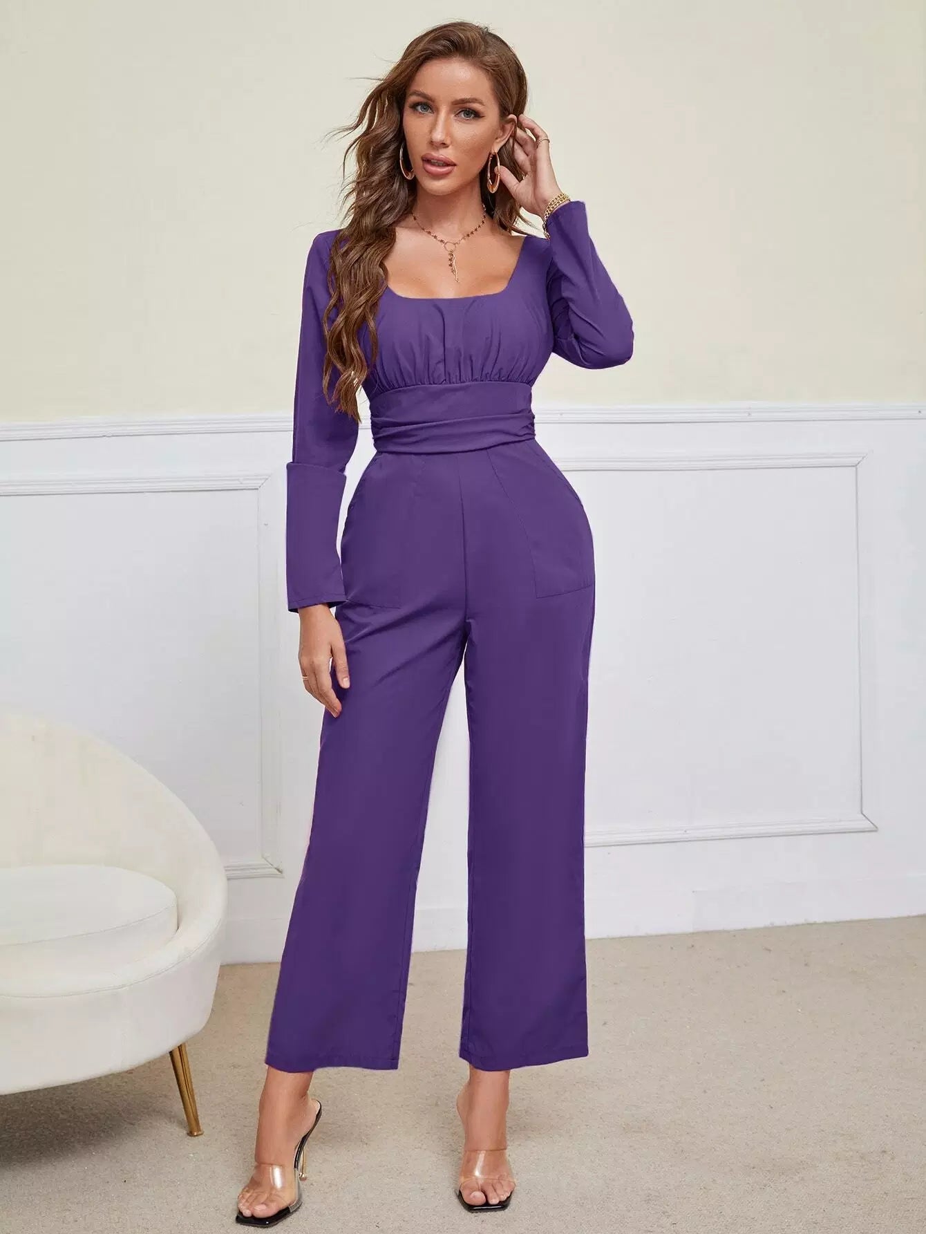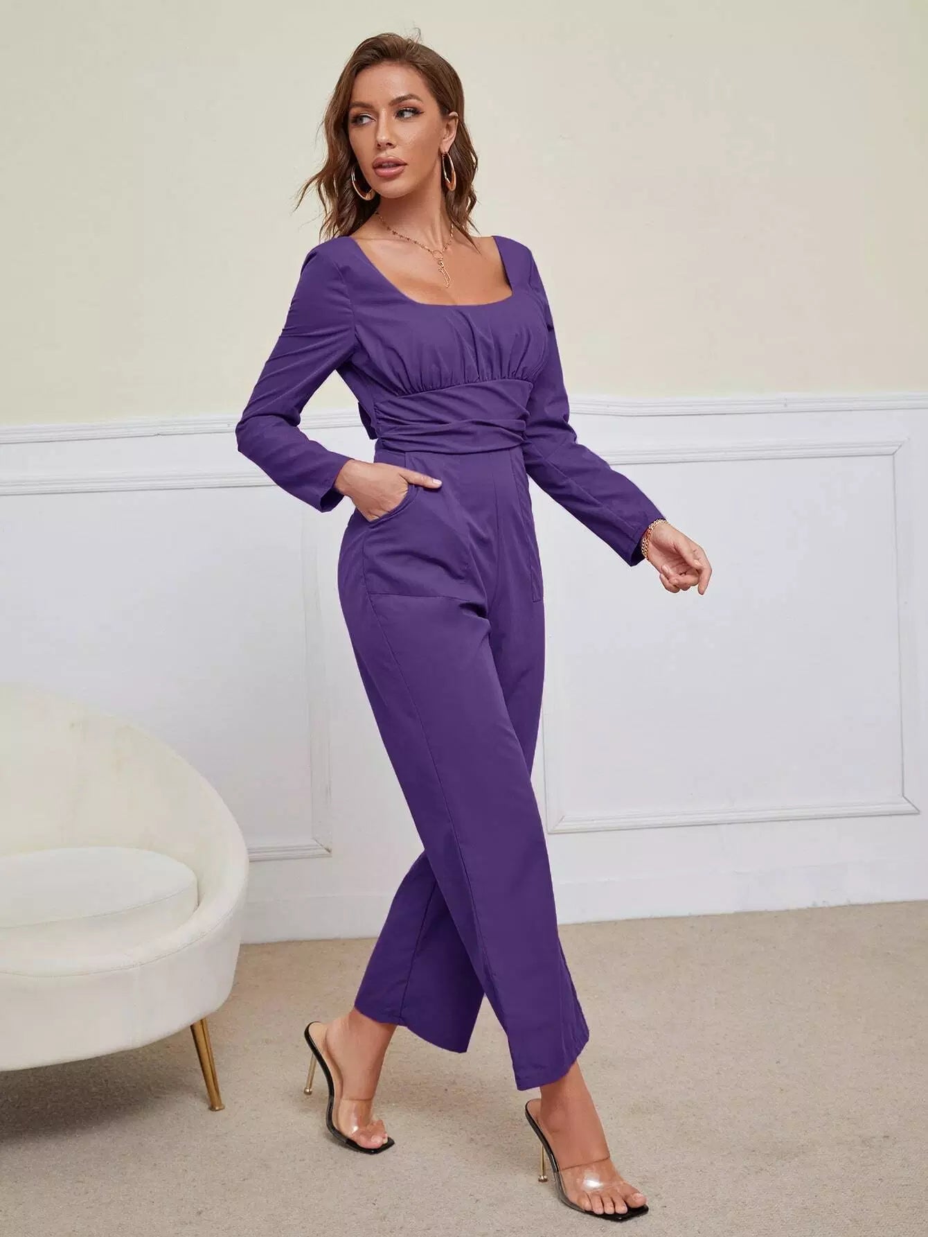 Square Neck Cut Out Tie Back Slant Pocket Jumpsuit