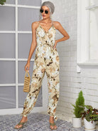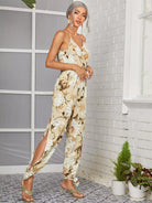 Surplice Front Split Hem Floral Jumpsuit