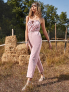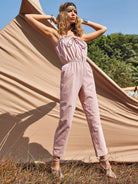 Women - Tie Front Frill Trim Cami Jumpsuit