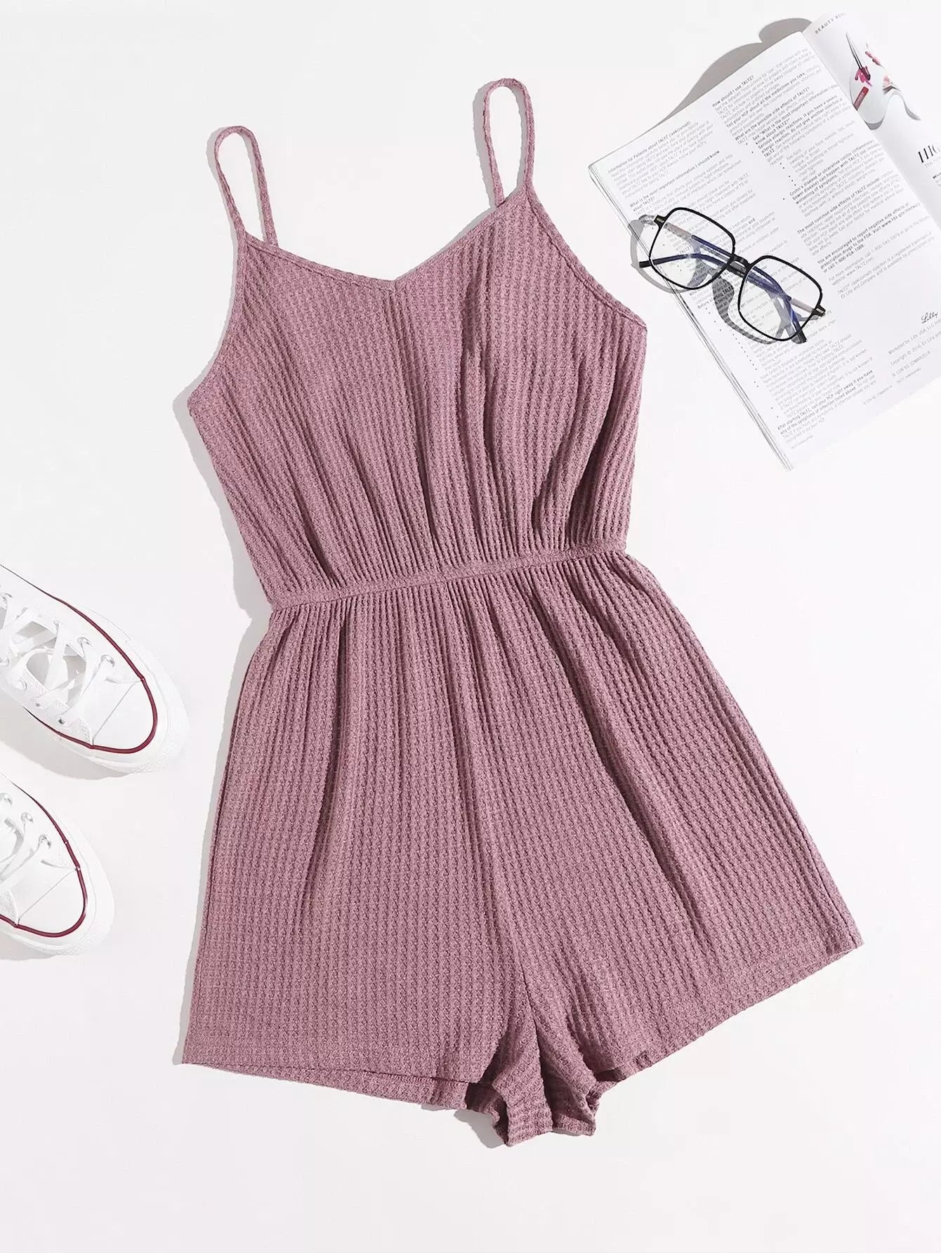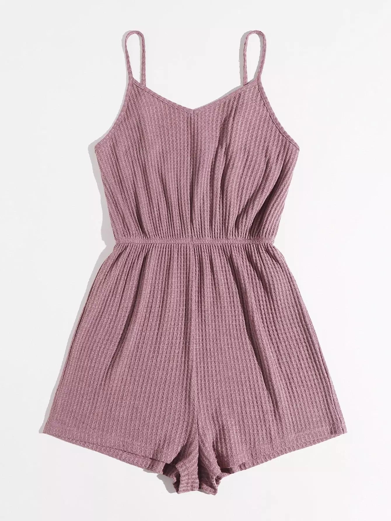 Waffle Knit Solid Slip Romper