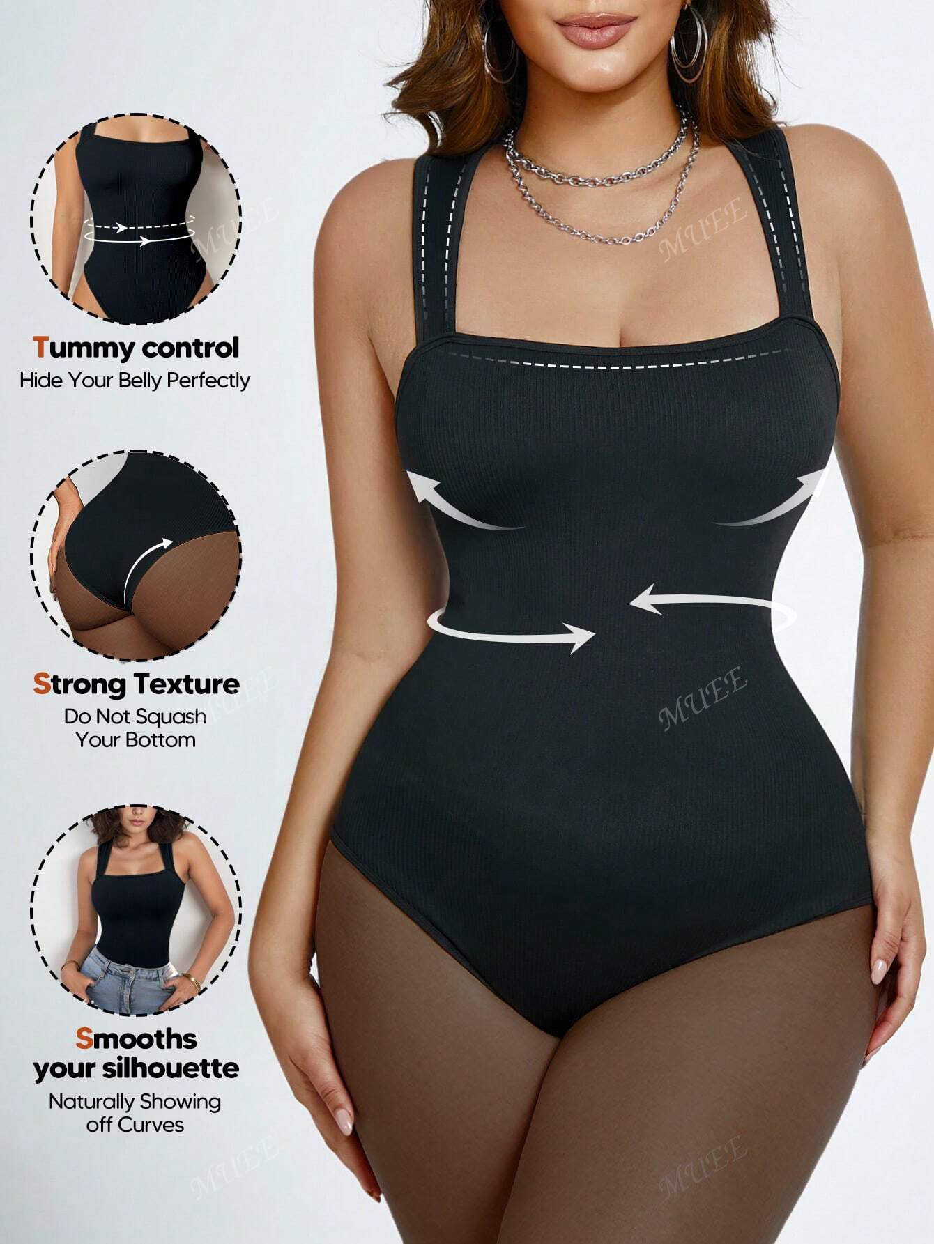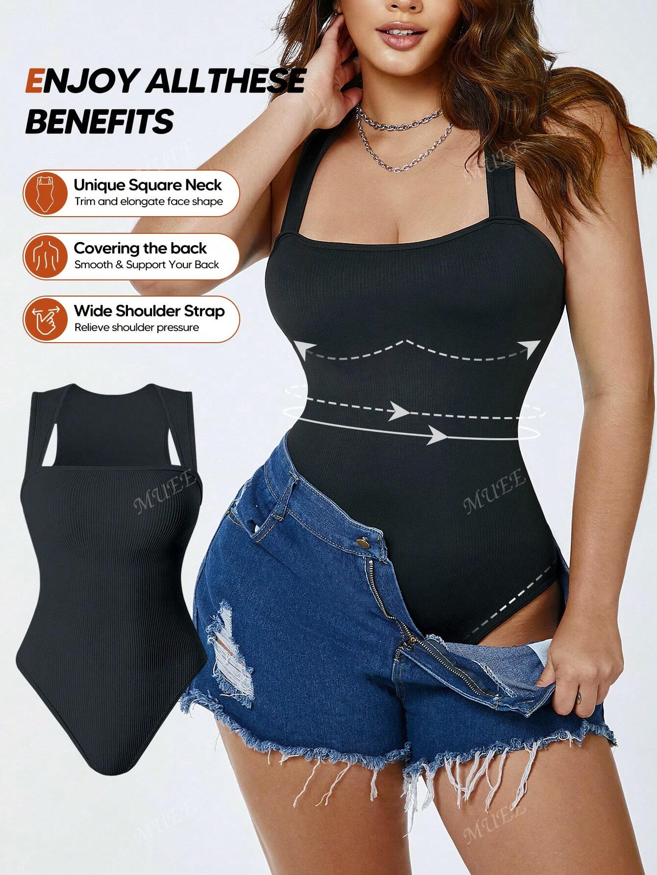 Women's Bodysuits Sexy Ribbed Strappy Square Neck Sleeveless Tummy Control Tank Tops Bodysuits