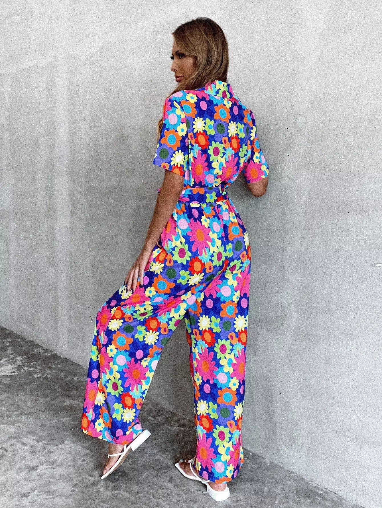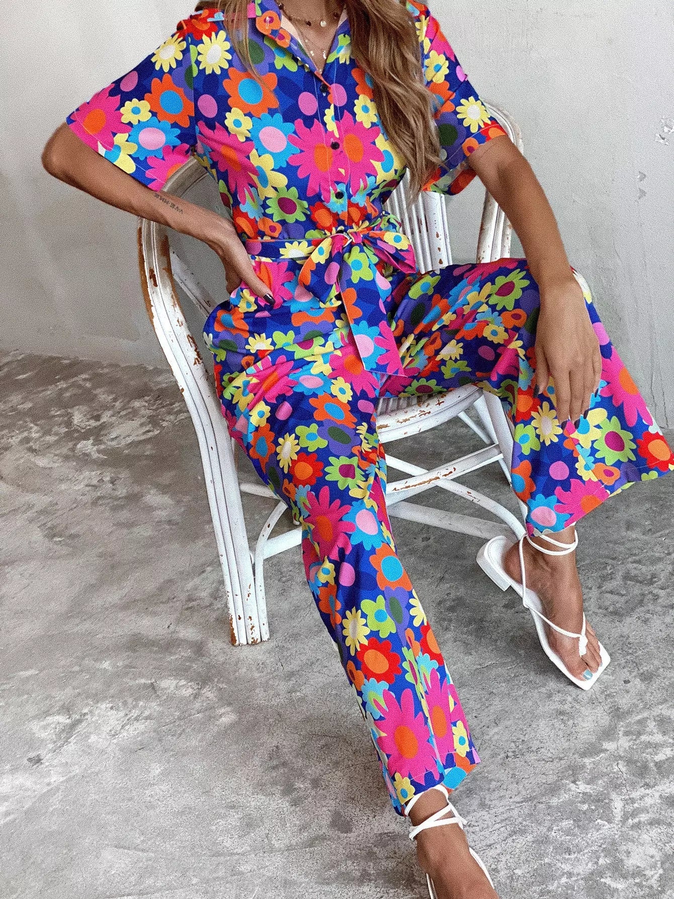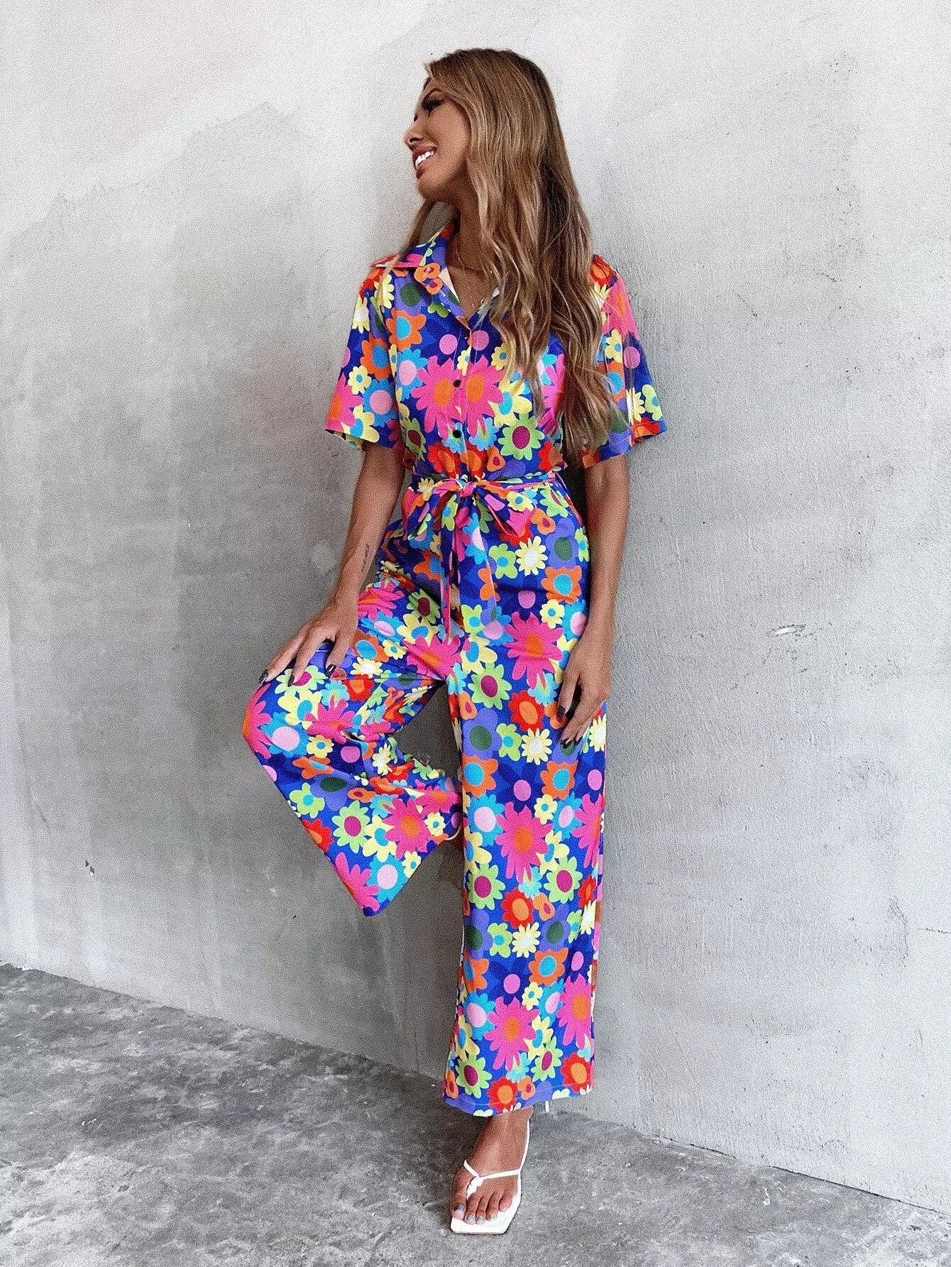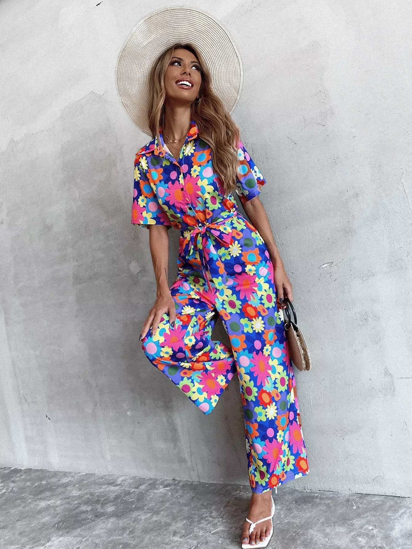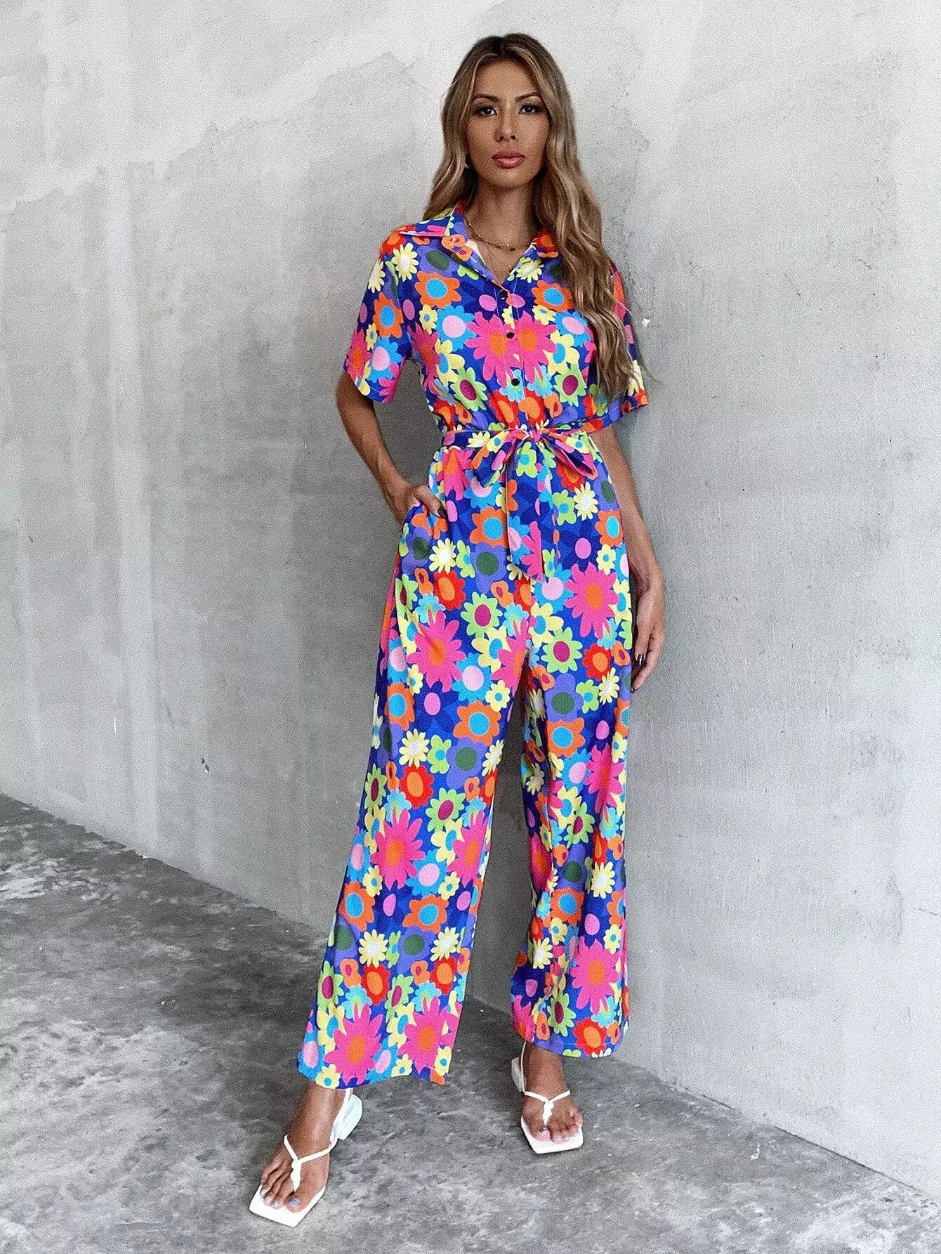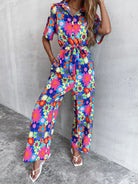 Allover Floral Button Front Jumpsuit Without Belt