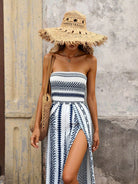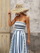 Brillora Women's Bohemian Style Geometric Print Backless High Slit Jumpsuit,Western,BOHO,Western Wear