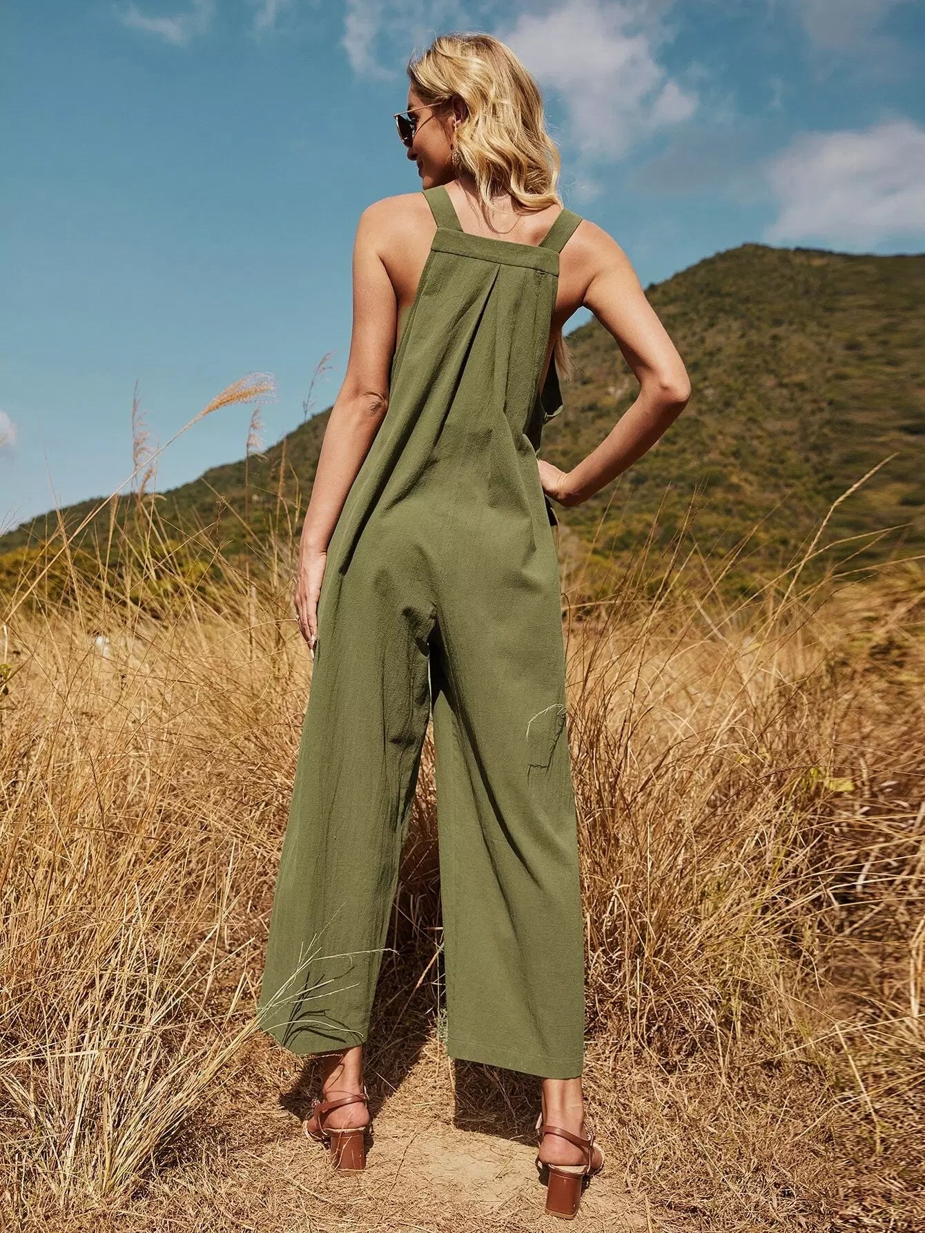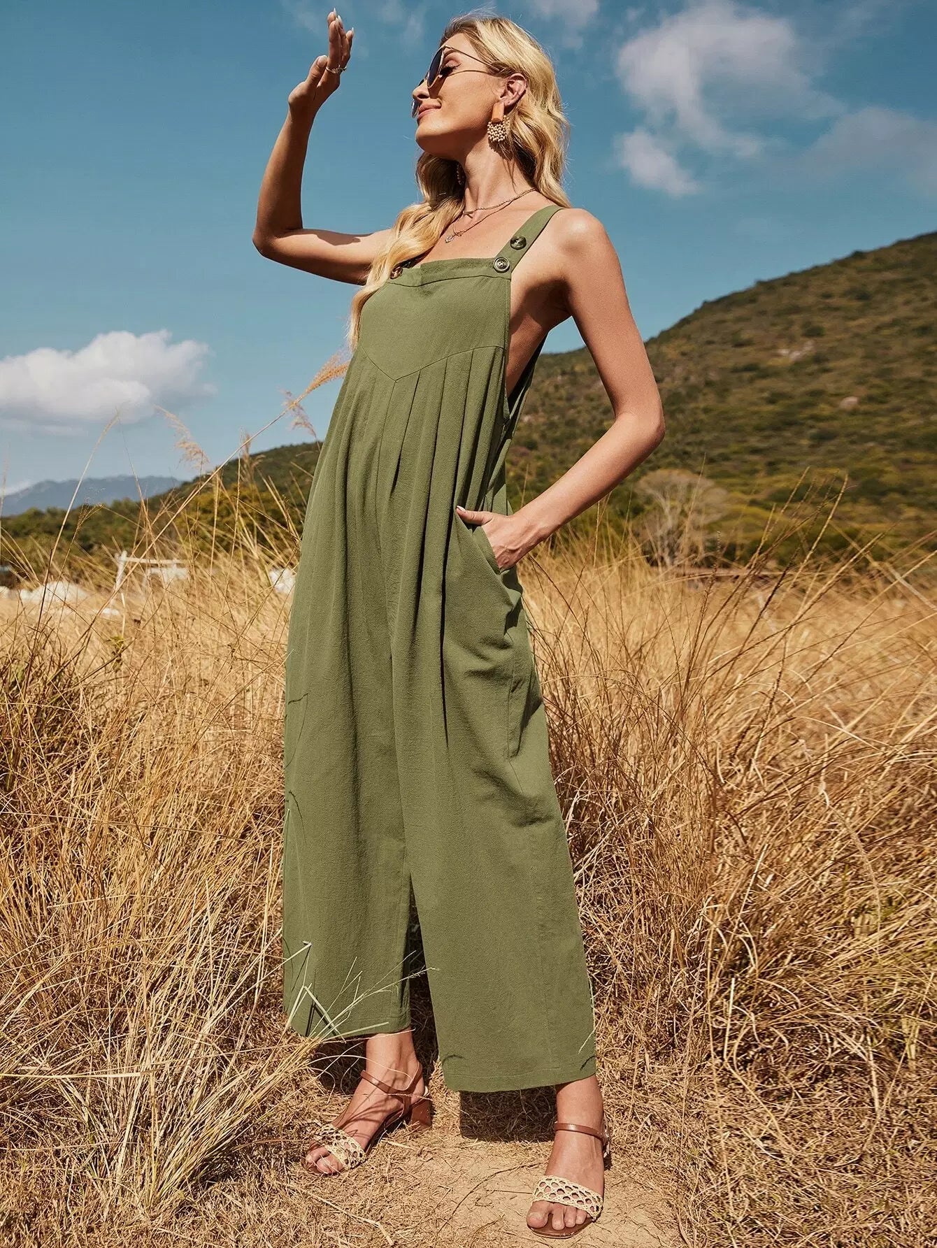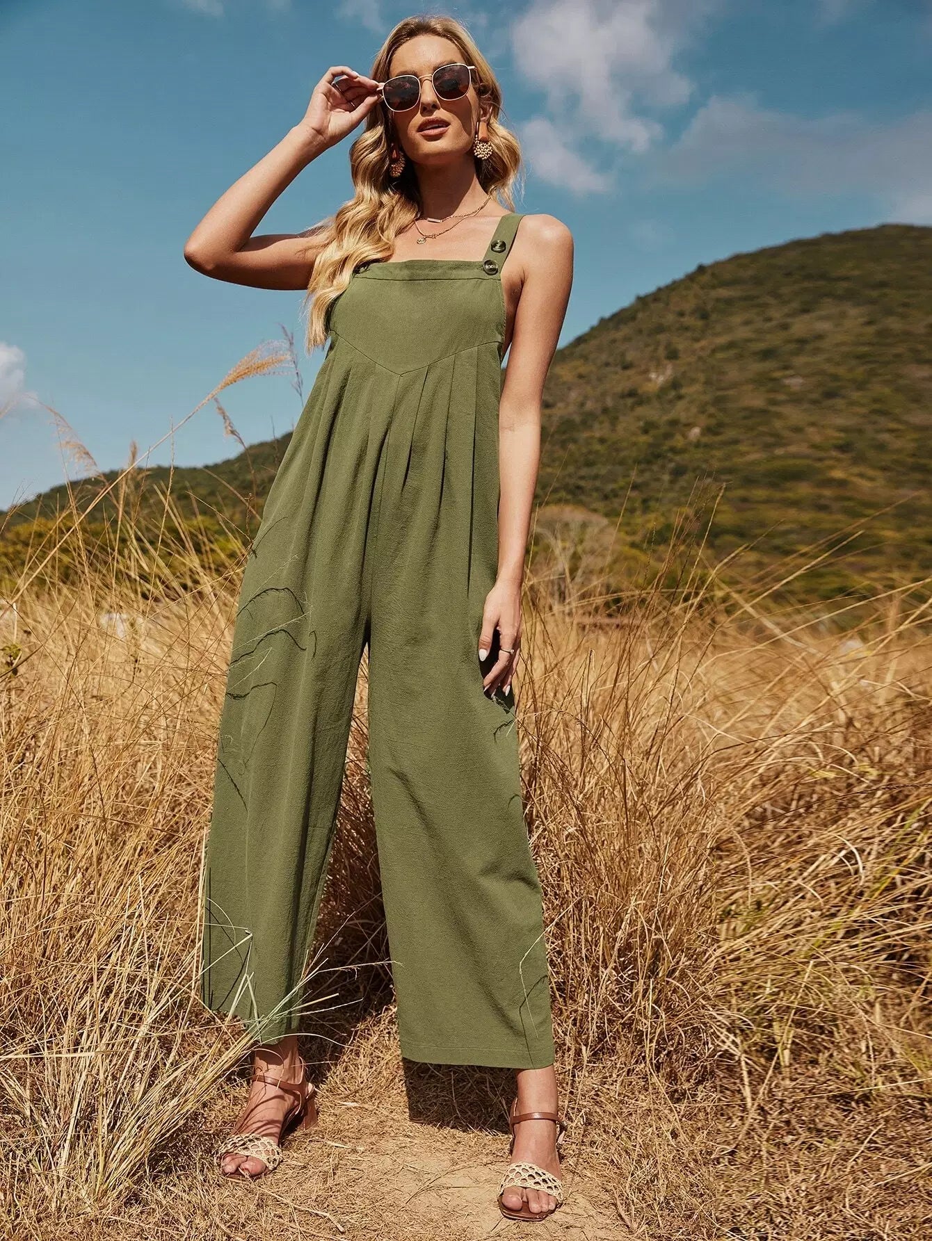Women - Button Detail Slant Pocket Overall Jumpsuit