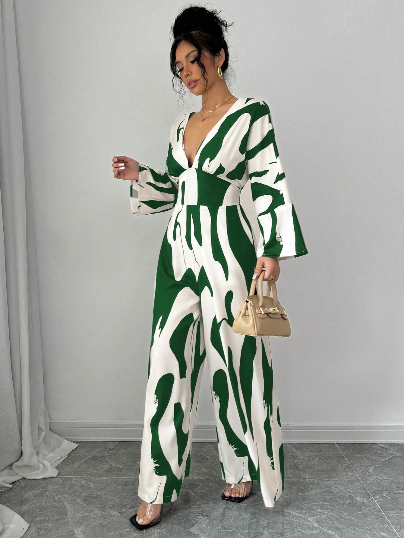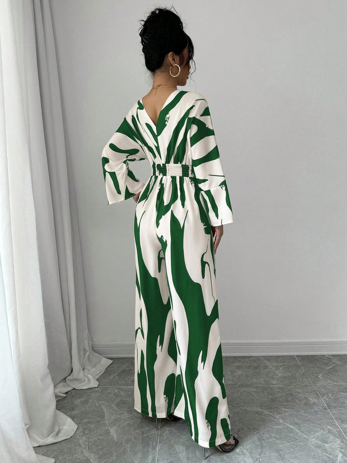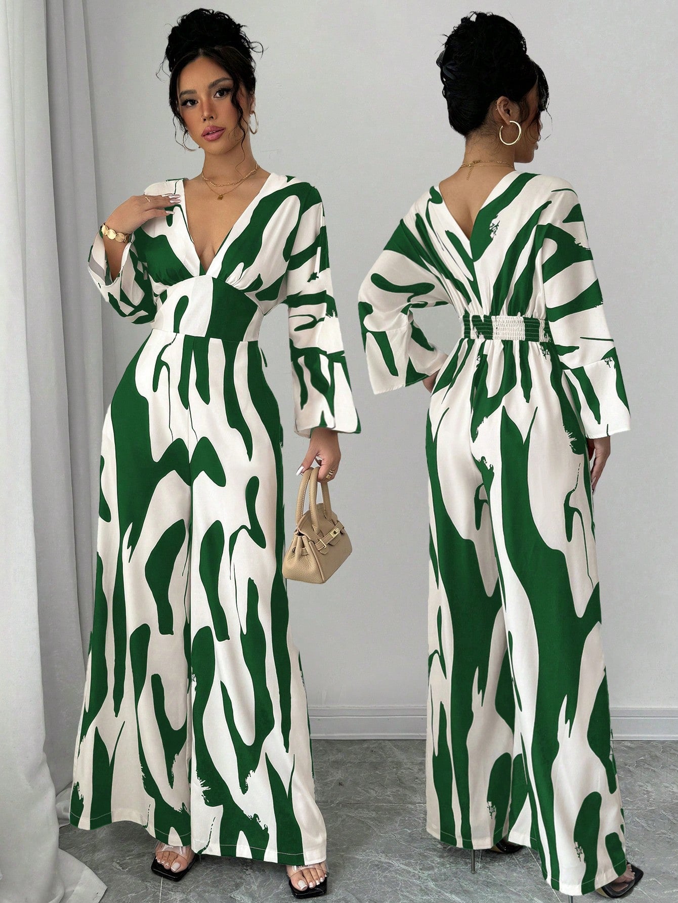 Chiquease Shirred Asymmetrical Black & White Print Women's Jumpsuit, High Waist Wide Leg Women Jumpsuit,