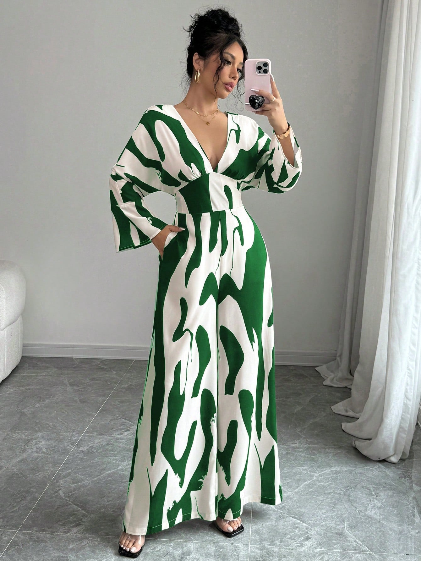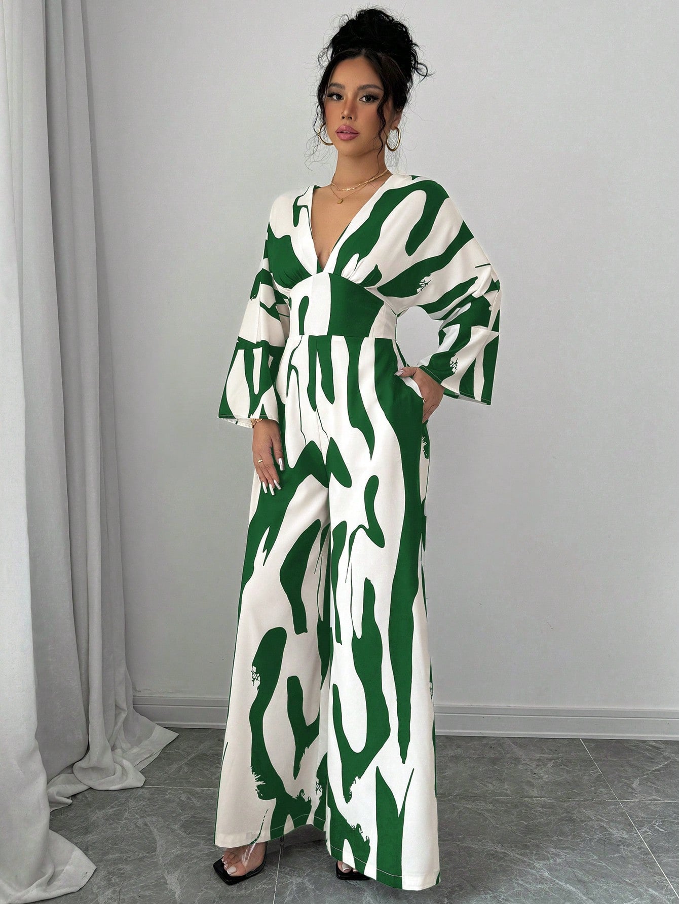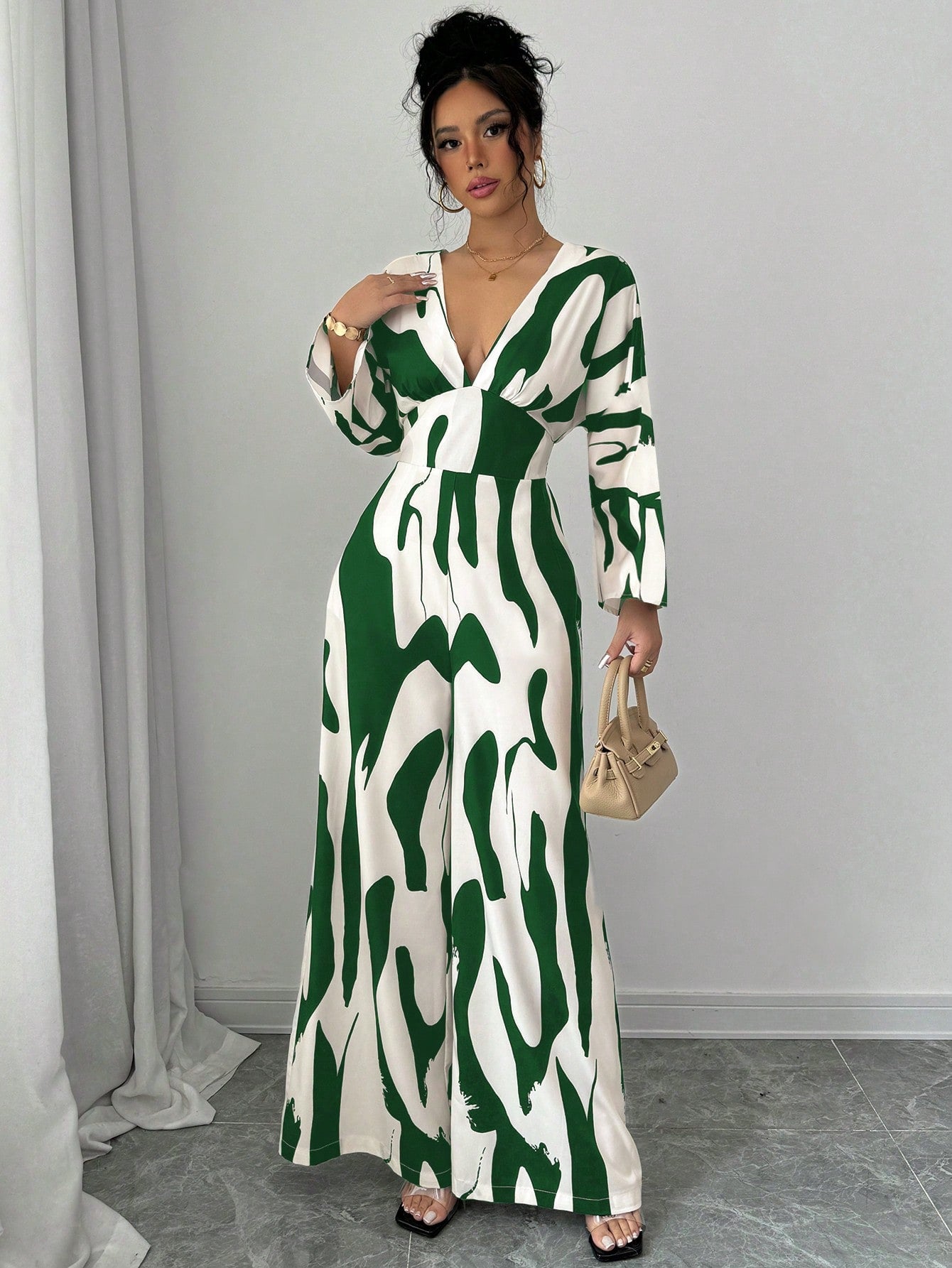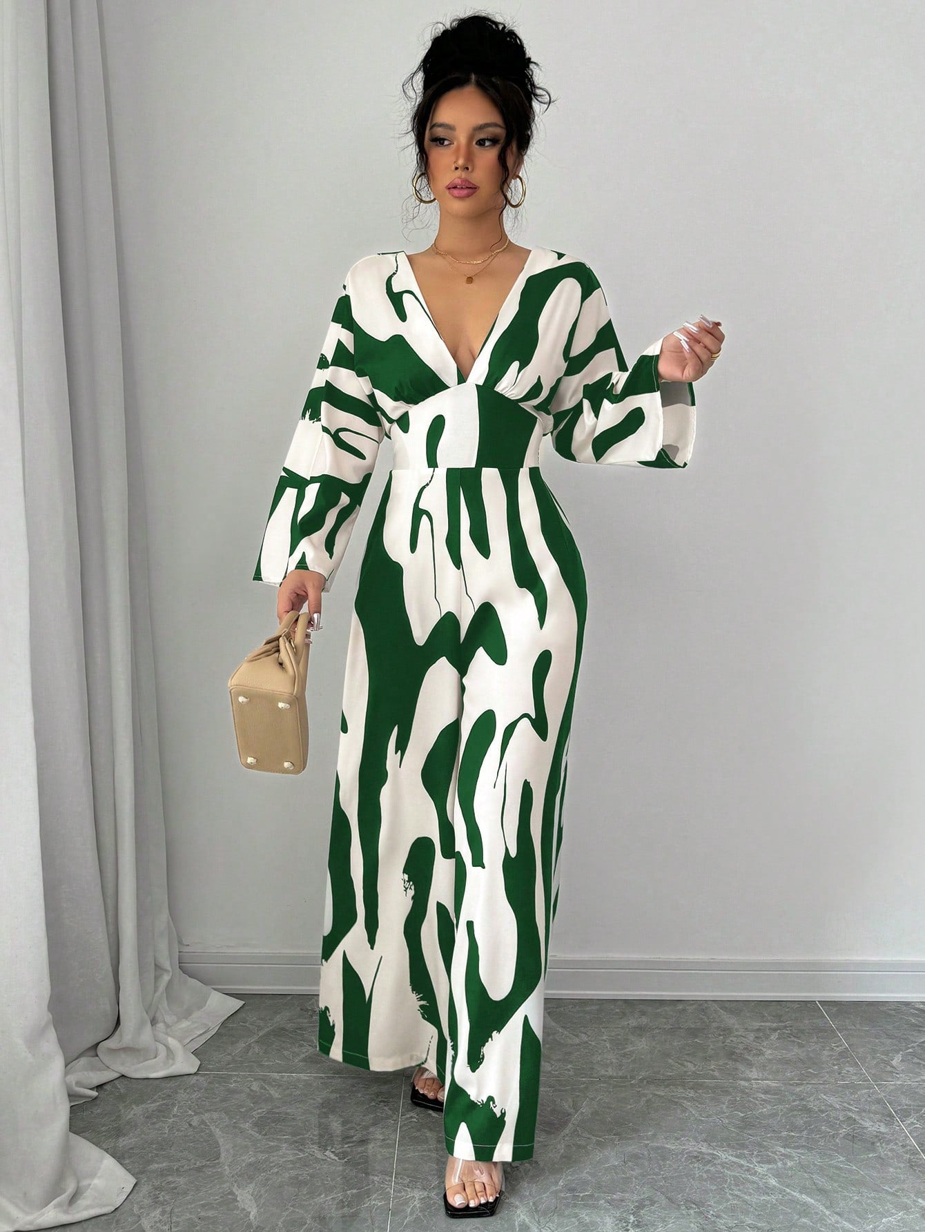 Chiquease Shirred Asymmetrical Black & White Print Women's Jumpsuit, High Waist Wide Leg Women Jumpsuit,