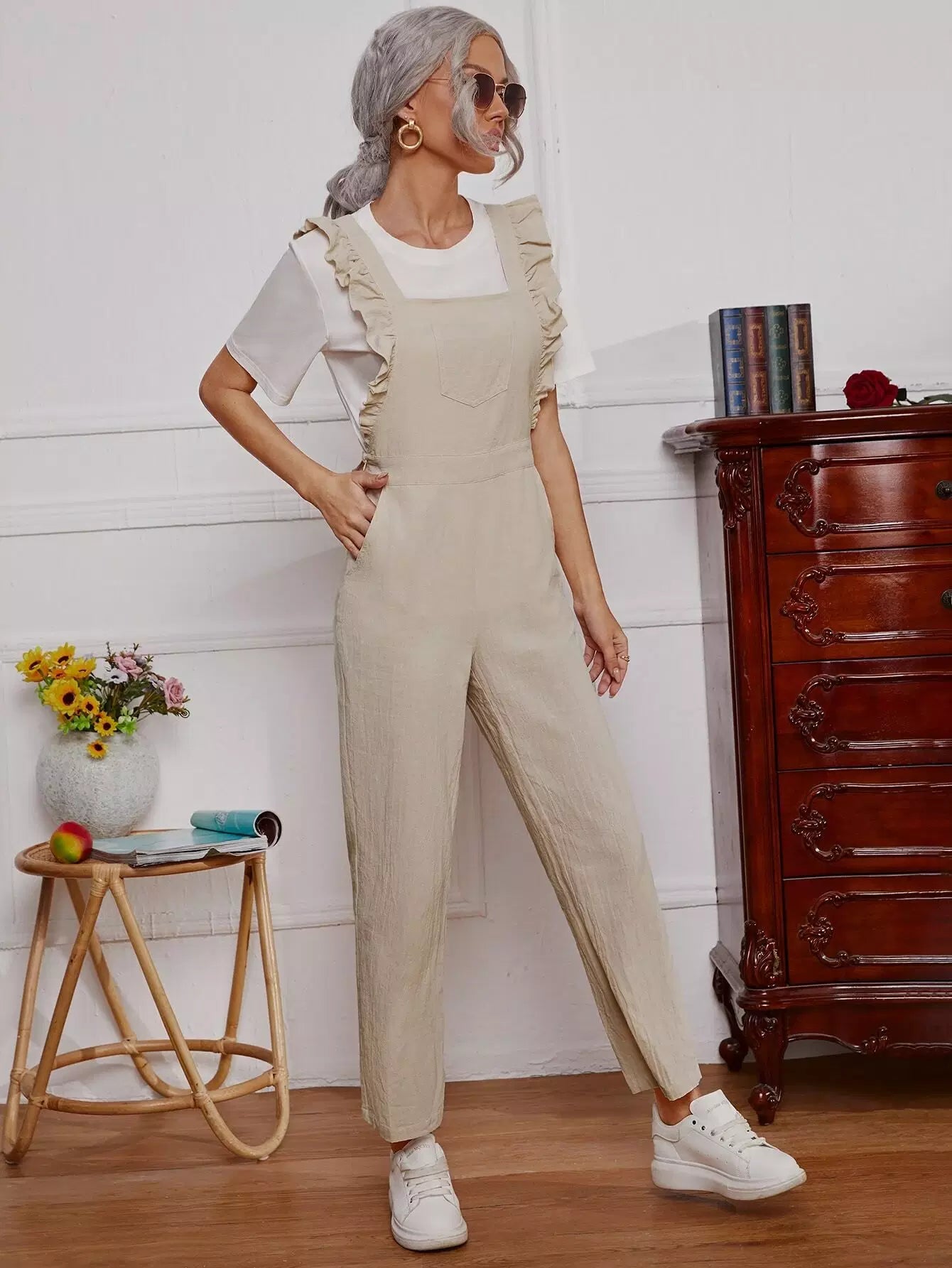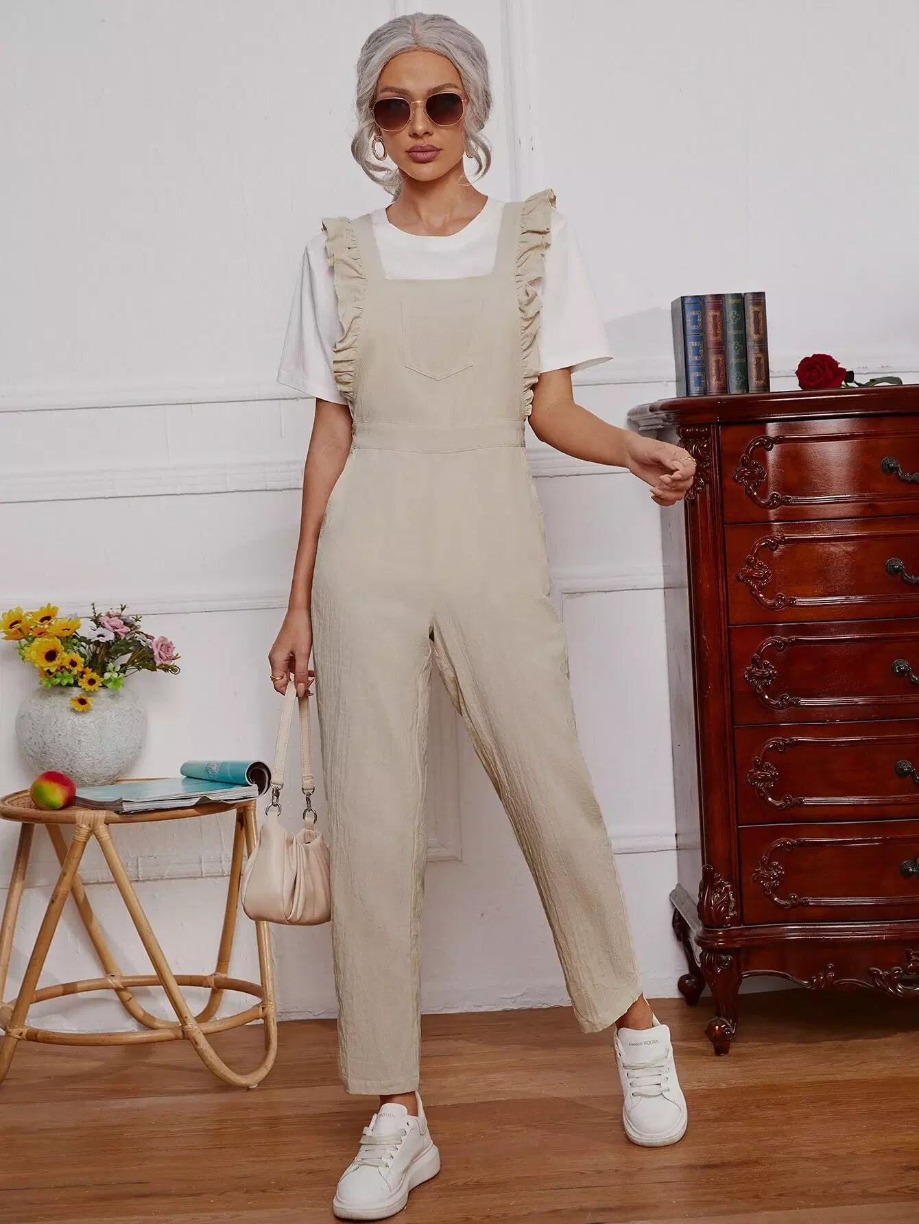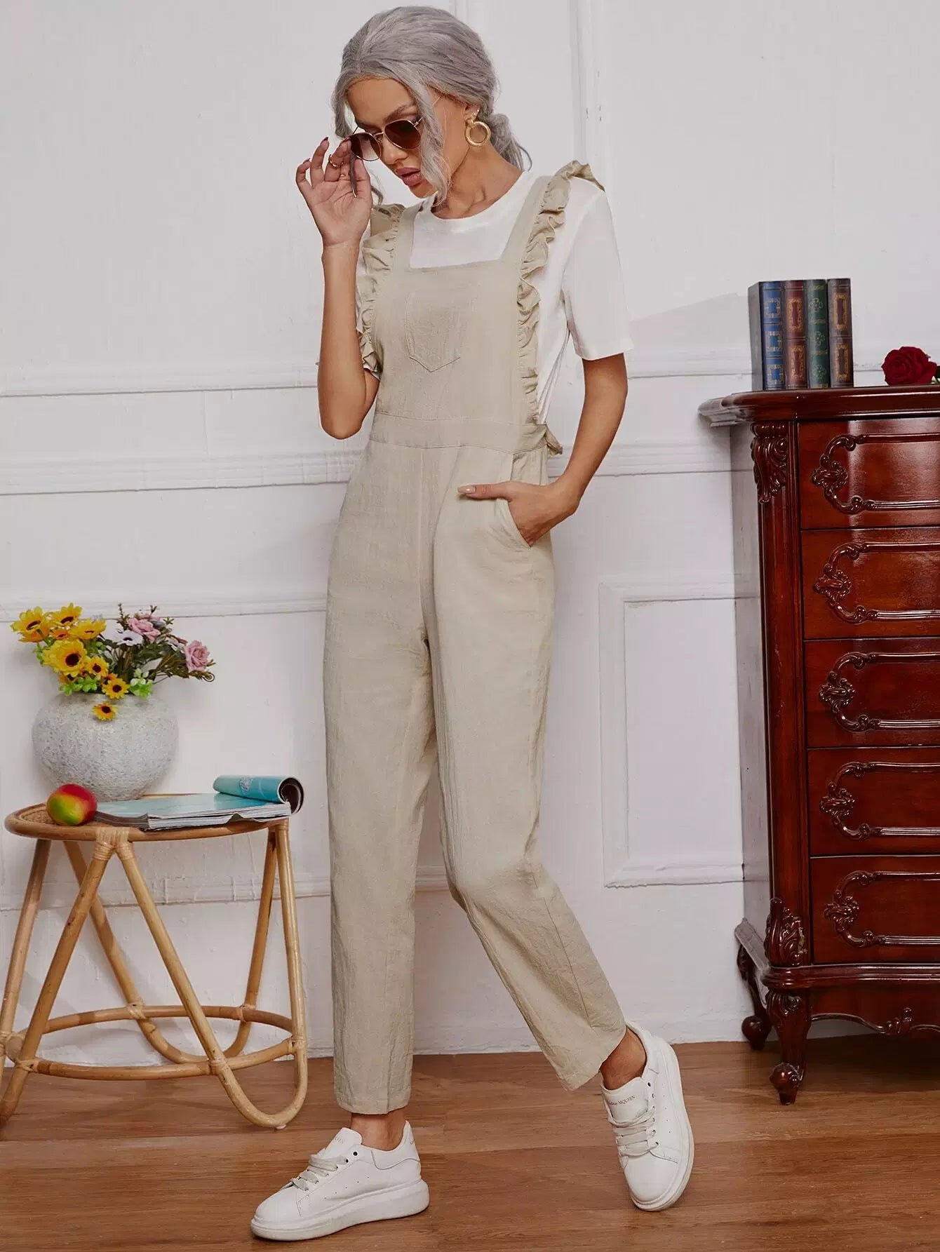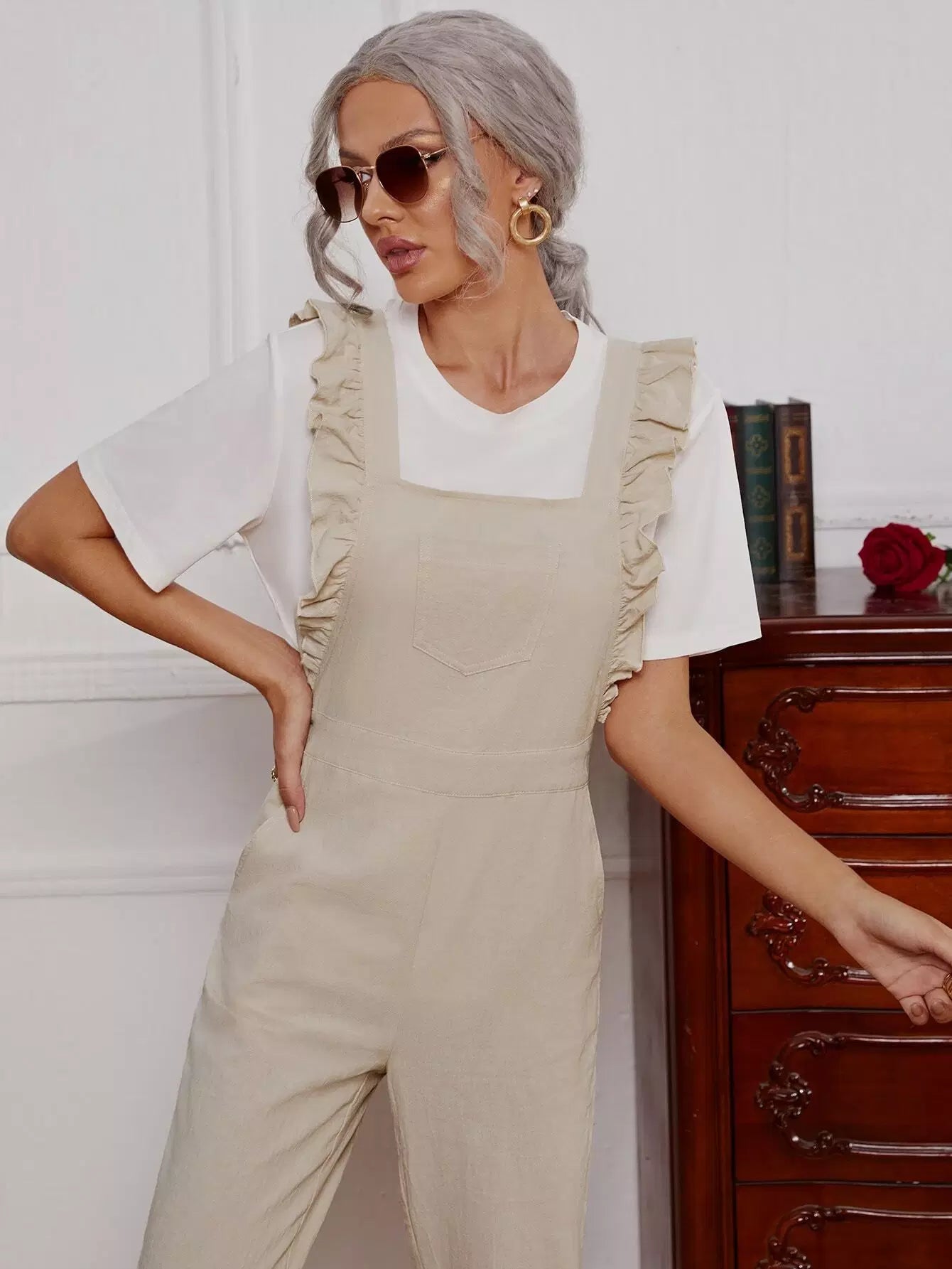 Crisscross Back Ruffle Trim Slant Pocket Jumpsuit