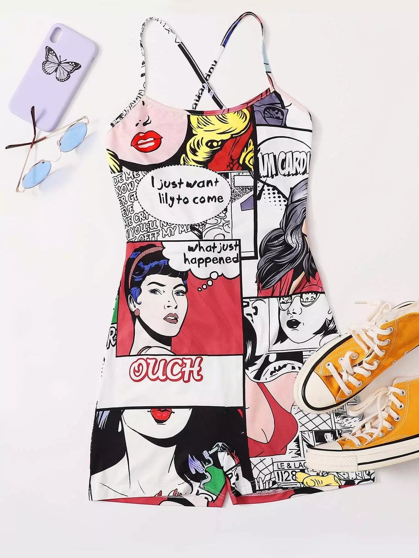 Crisscross Backless Pop Art Print Romper