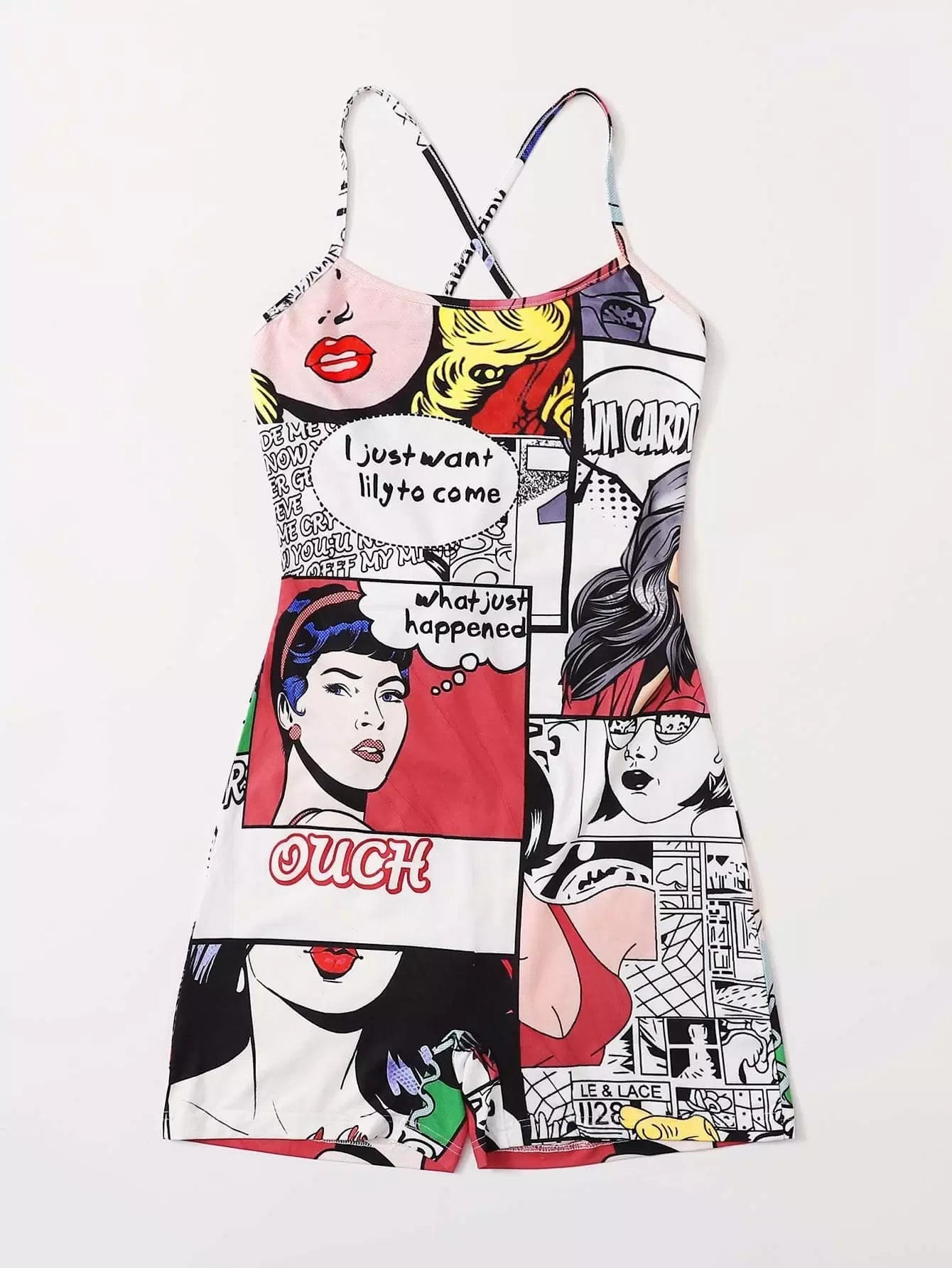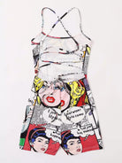 Women - Crisscross Backless Pop Art Print Romper
